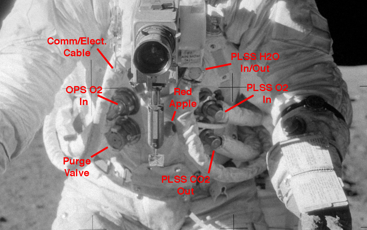 [Neil Armstrong has described wearing the suit as being like wearing a Macy's Thanksgiving Parade balloon. Any change in position requires bending the suit against the internal pressure, a hard enough job at 3.8 psi, let alone 4.3 psi. One of the reasons for waiting for the cooling system to start working is to let the suit pressure decay due to breathe-down.]115:11:40 Conrad: (Reading) "LM suit circuit 3.6 to 4.0." It is: 4.1.