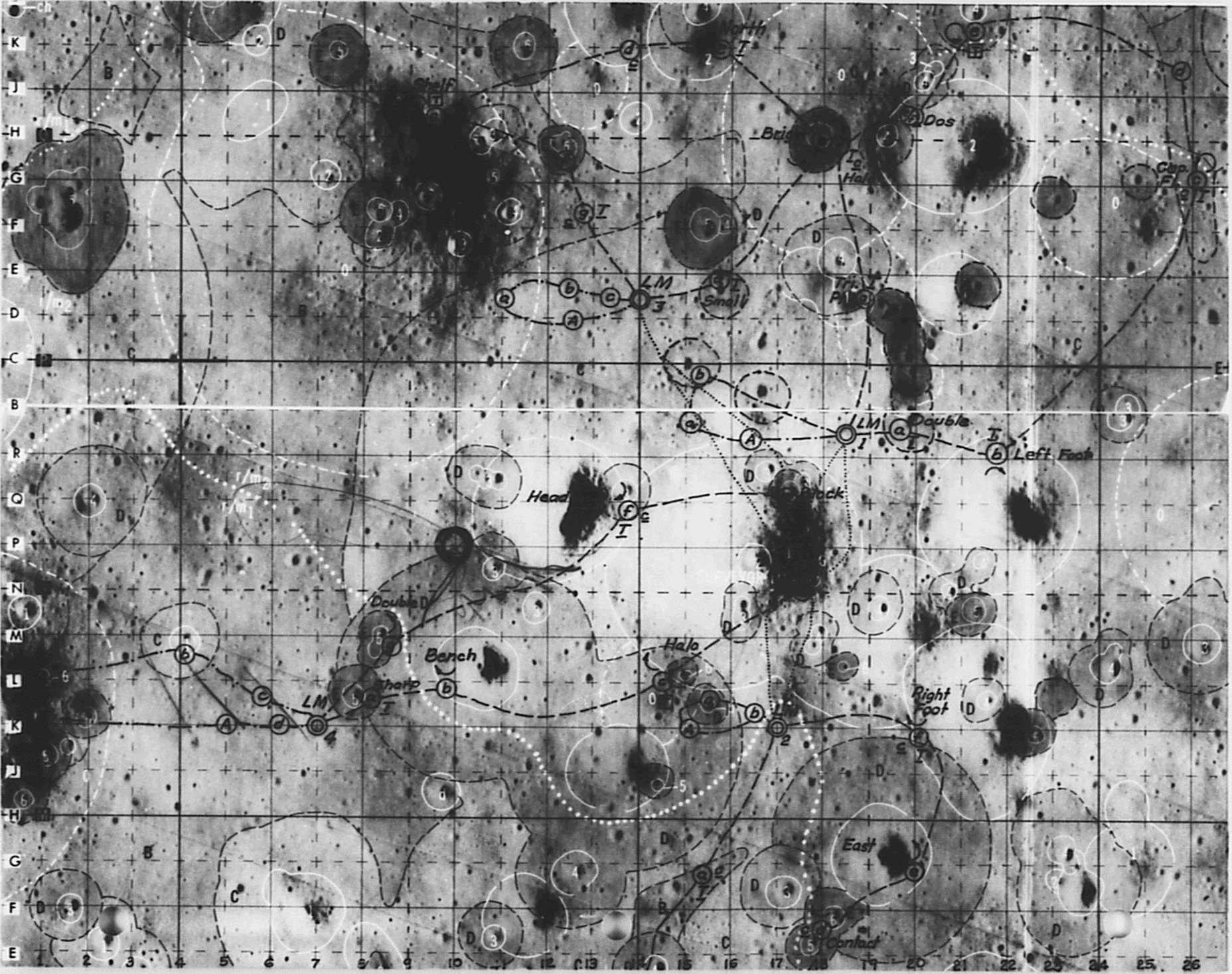 [Although Whitaker had pinpointed Surveyor Crater in 1967, it is easy to understand the crew's version of the story. From their perspective, the late decision and a briefing from Whitaker at about the same time could have been interpreted as an indication that the analysis was recent. Their meeting with Whitaker would have lasted no more than an hour or two - one brief event in a very busy training schedule - and would probably have included many questions of the "that's all very nice, but are you really sure?" variety.]