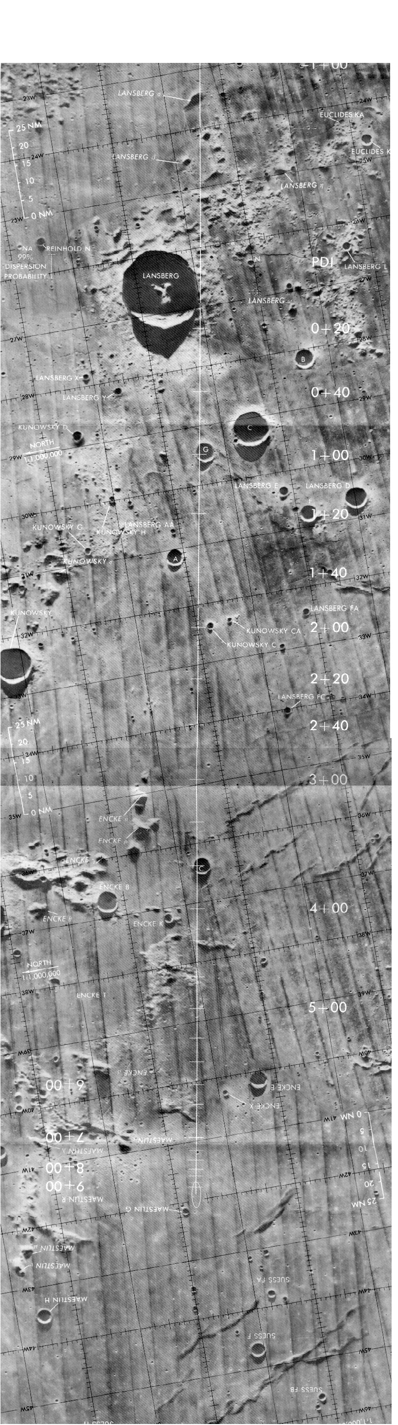 [The updated platform alignment is okay. They are near the bottom of Sur-6 and will update the Reference Landing Site (RLS).]111:20:14 Conrad: Okay. That's done, and we're going to P00. (Long Pause) And if it's okay with you, we'll go ahead and do the second P57 right now. (Pause)