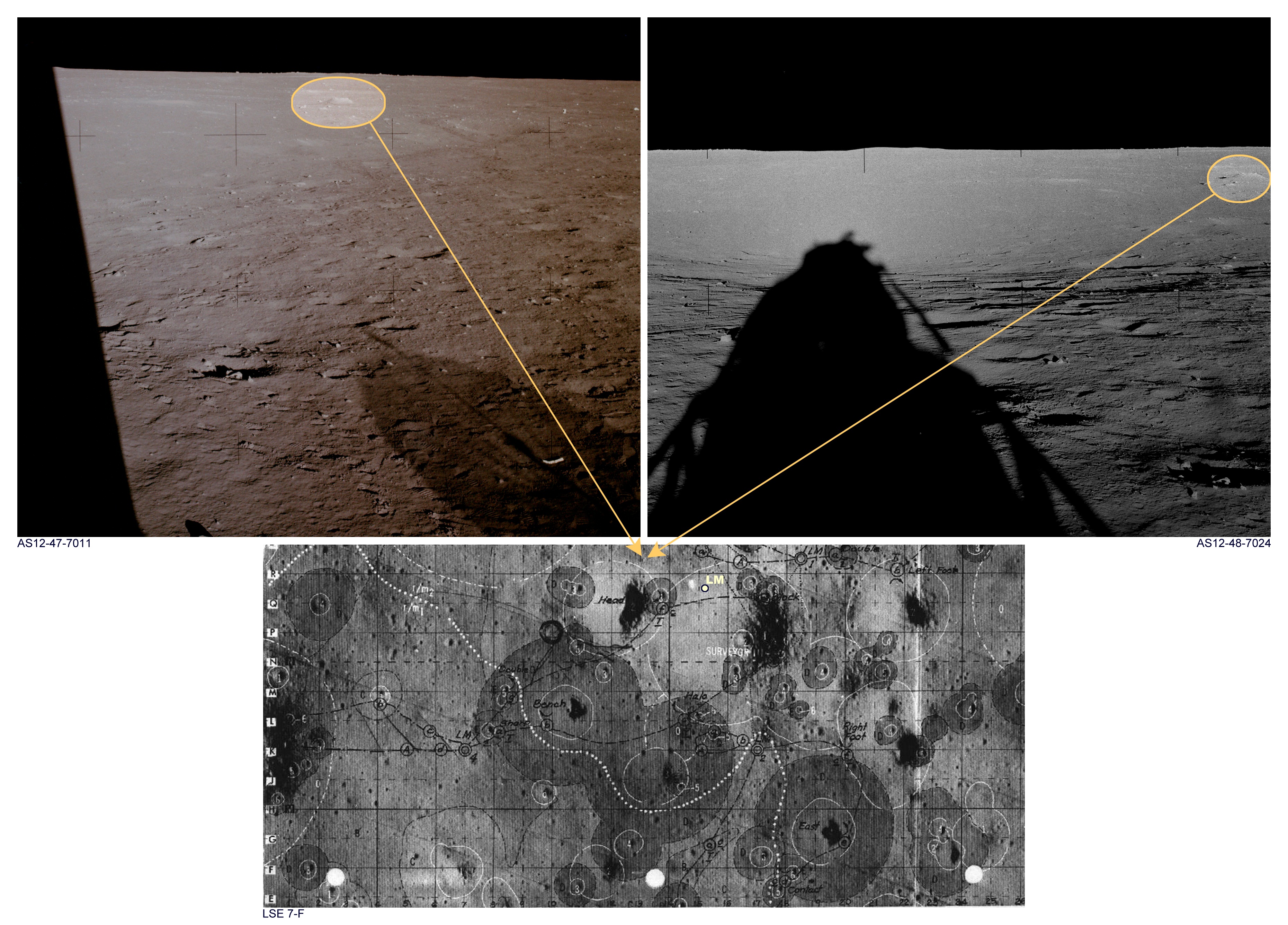 [Bean - "They figured out which crater it was by looking at the photos. Now, they never did get it by (analyzing) tracking (data from the original landing of the Surveyor). But they had a guy look at photos and he figured out that this was the crater it had to be to make all those photos work. But not 100%."]