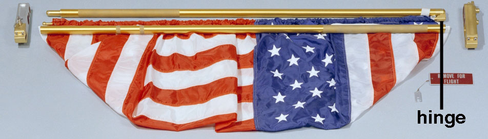 hem sewn at the top of the flag and a latching hinge at the top of