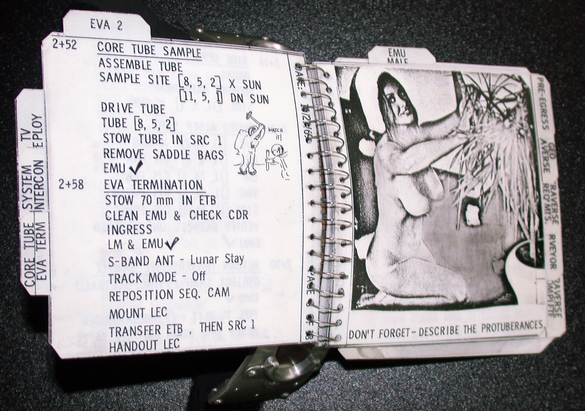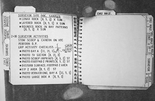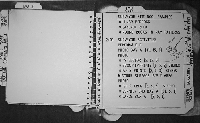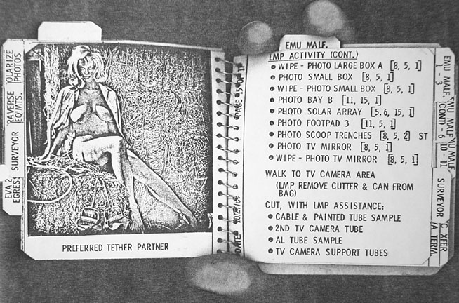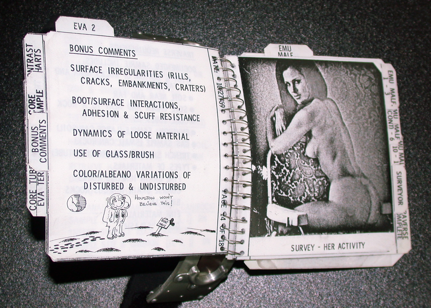 A detail from AS12-49-7281 shows Al's checklist open to these two pages.Bonus Comments and Playmate No. 2 ( 1056k )
