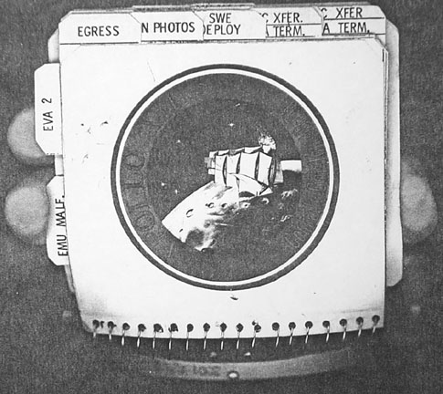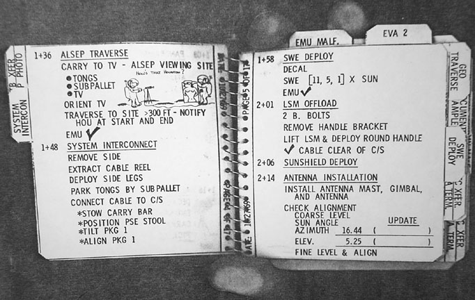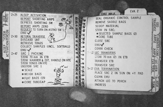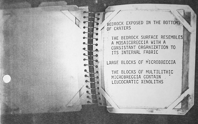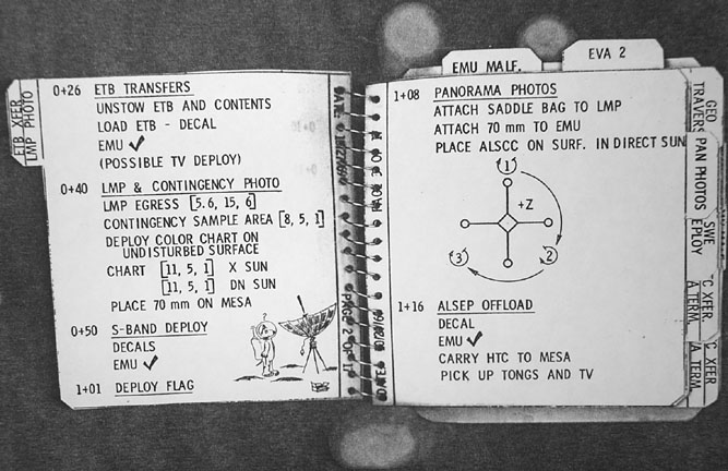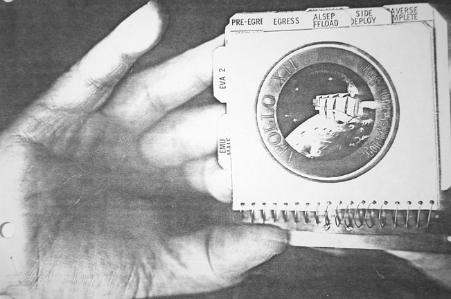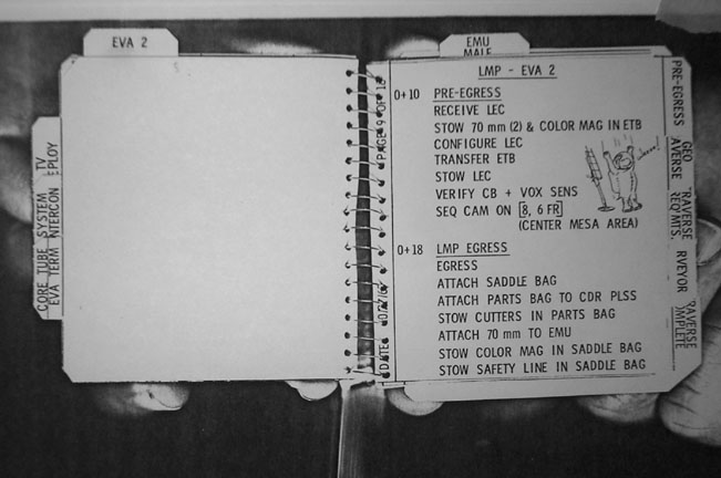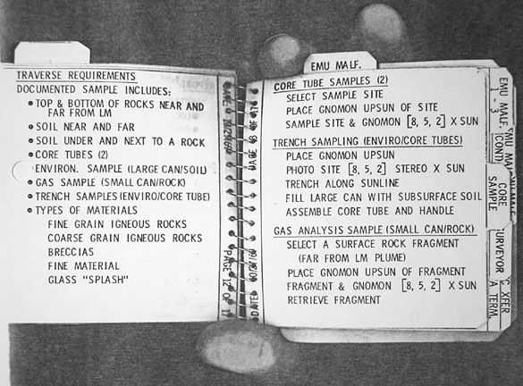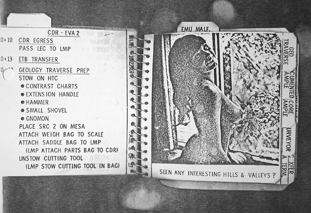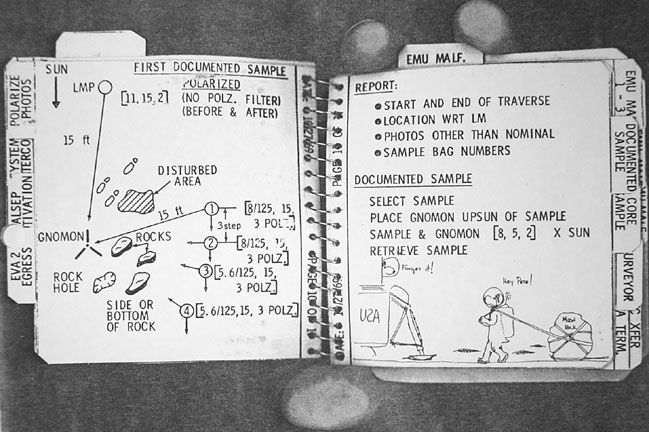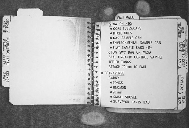 A detail from AS12-49-7281 shows Al's checklist open to these two pages.Bonus Comments and Playmate No. 2 ( 1056k )
