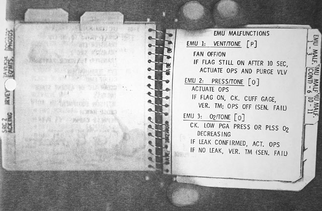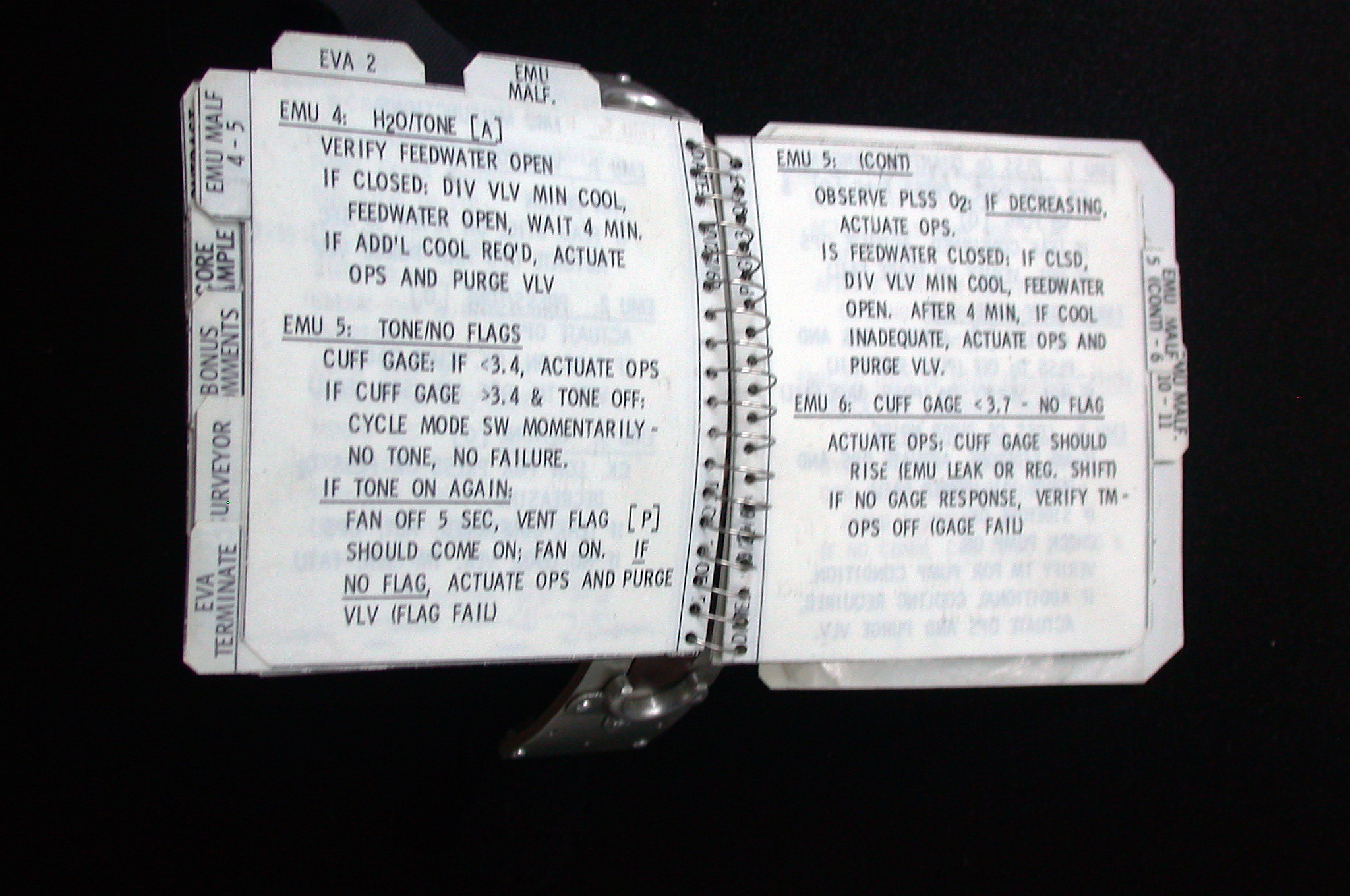 The curvature of the aluminum arc ensured that an open page would stay open unless the astronaut purposefully changed to another page.Cover ( 72k )