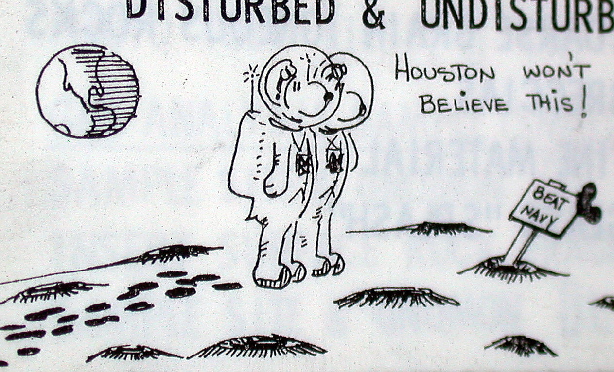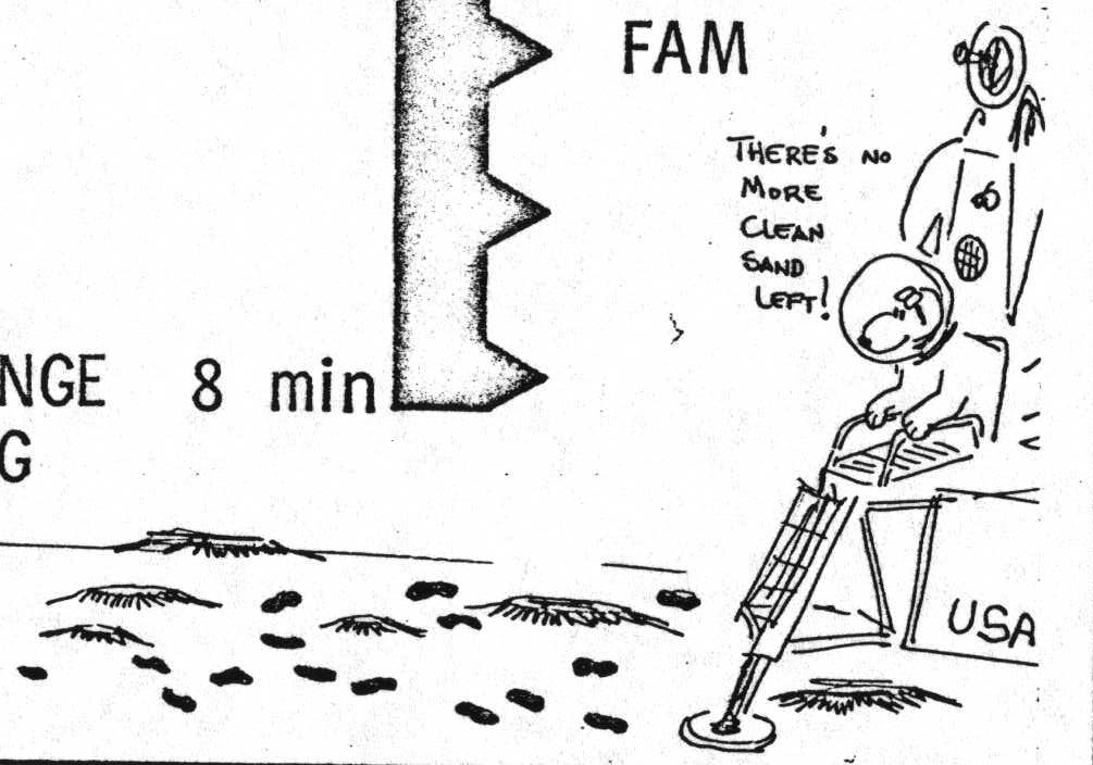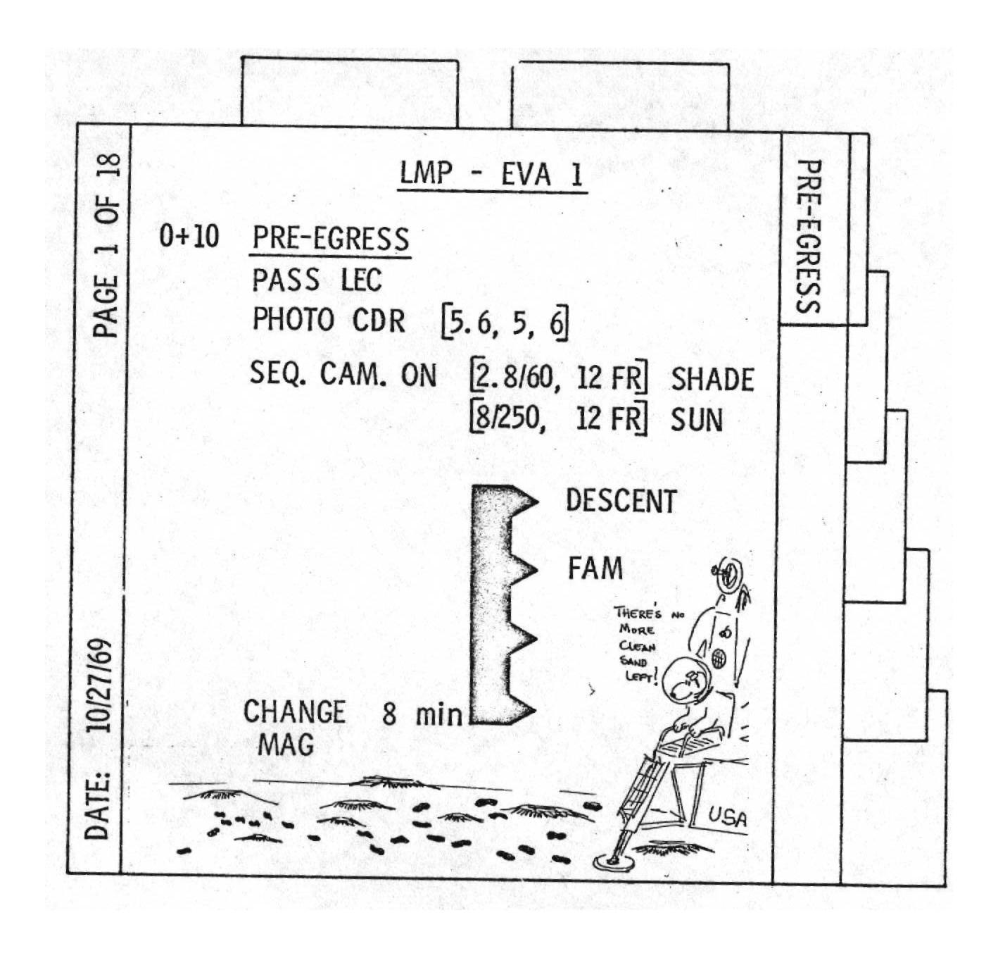 Detail showing the cartoon by Ernie Reyes (683k).EVA-1 1+48 to 2+30 (System Intercon., PSE, LSM, SIDE, ALSEP Photo, Return, Trav.) ( 1124k )