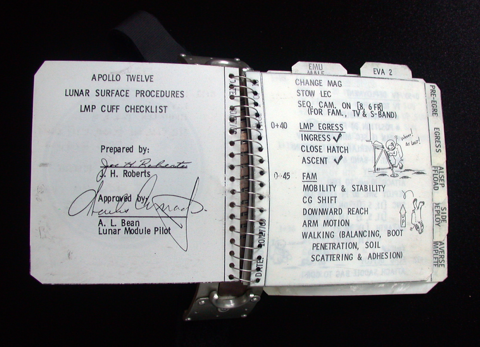 Photographs of Al Bean's flown cuff checklist were taken by Ulli Lotzmann on 15 March 2001.