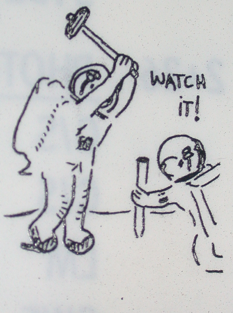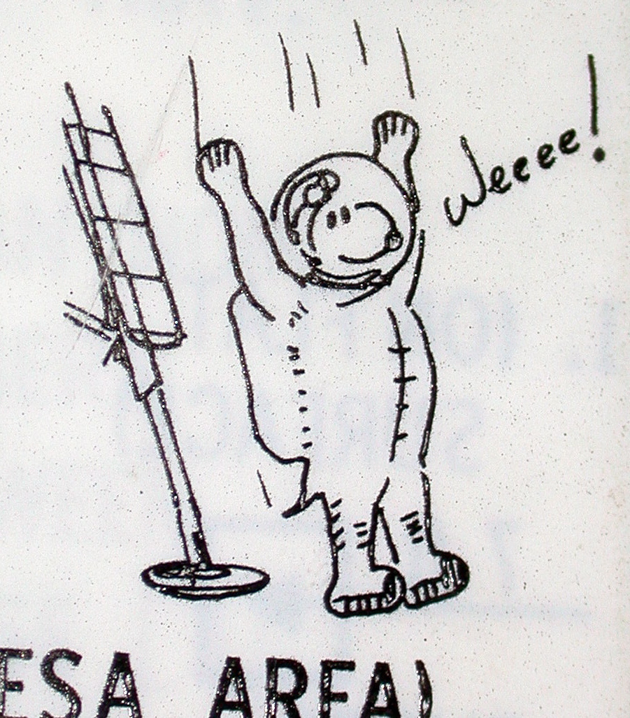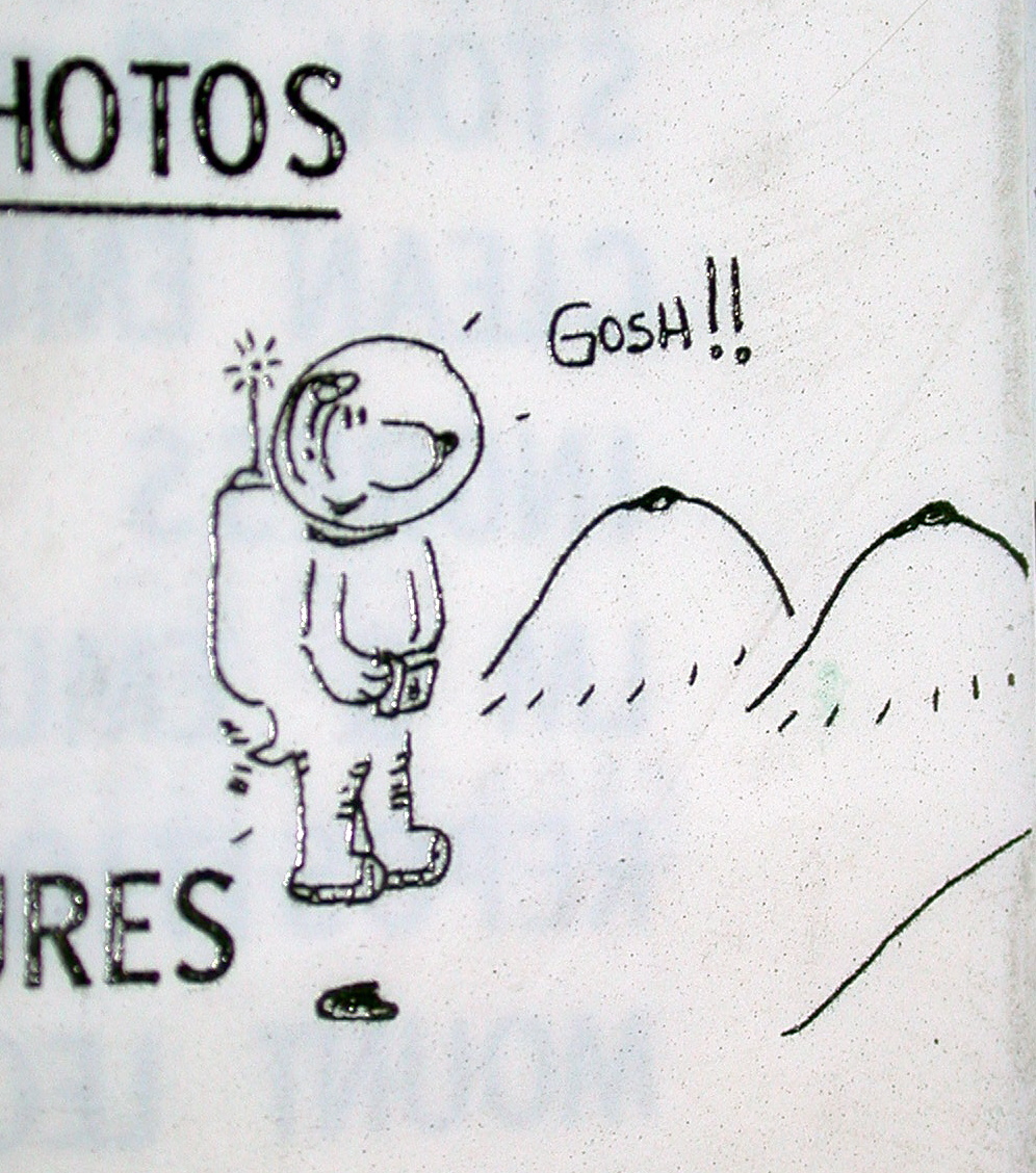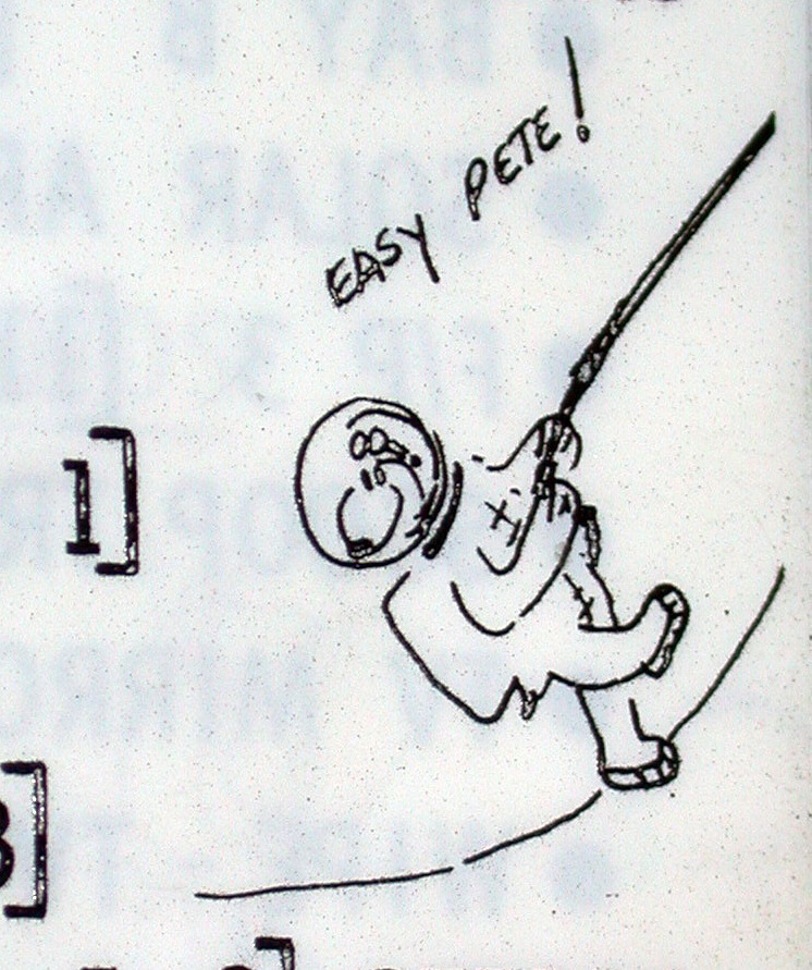 Journal Contributor Ulli Lotzmann has provided a detail showing the two 'snoopy' astronauts carrying the boltcutters. Drawing by Ernie Reyes.