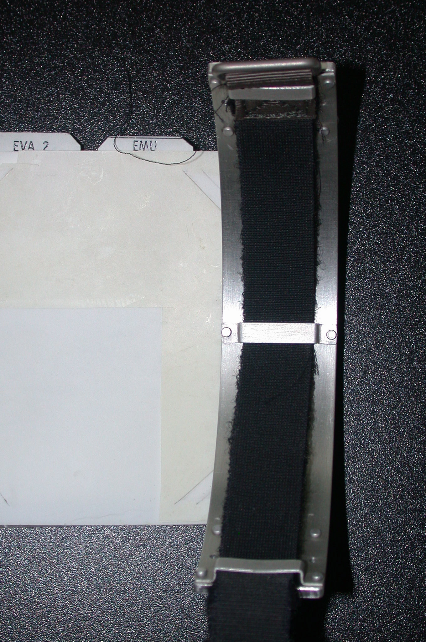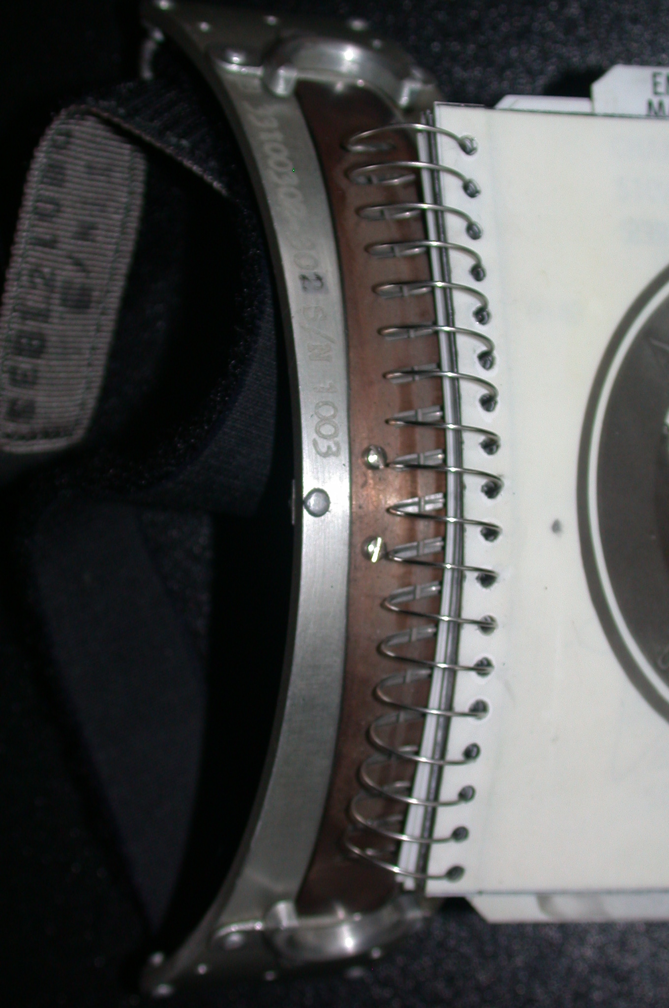 The Aluminum arc was fit over the sleeve and, because the strap was covered in Velcro along its entire length, the checklist could be positioned almost anywhere on either sleeve.Spiral Binding and Top of the Aluminum Arc ( 660k )