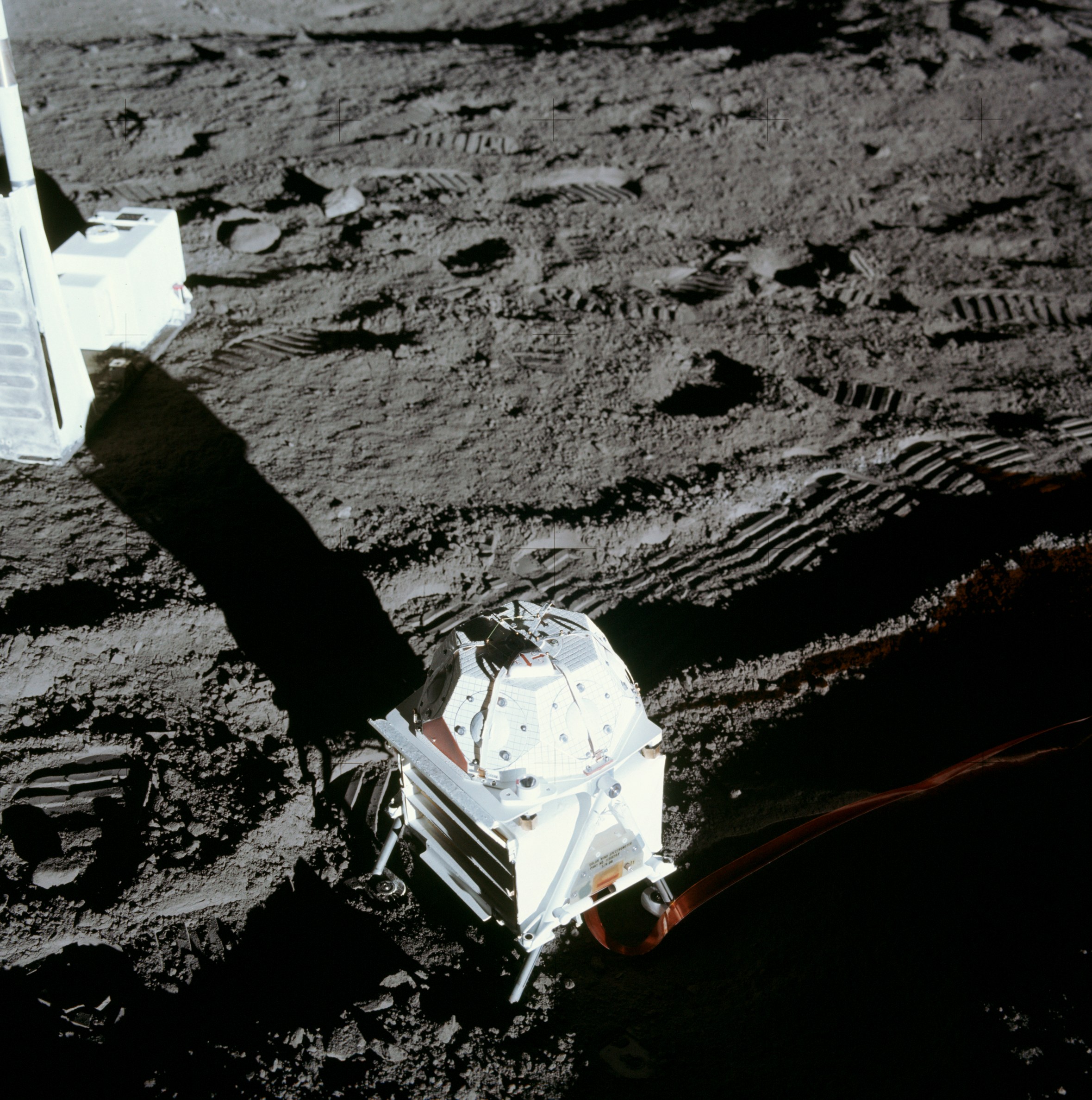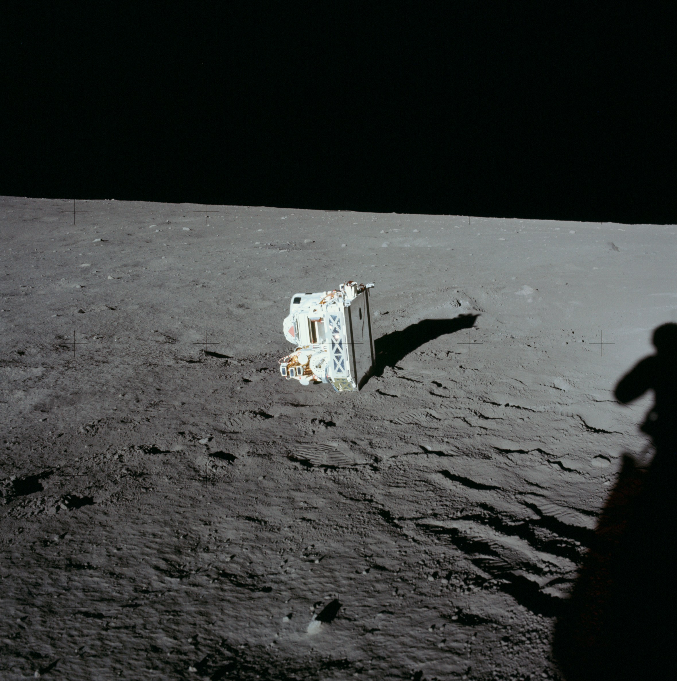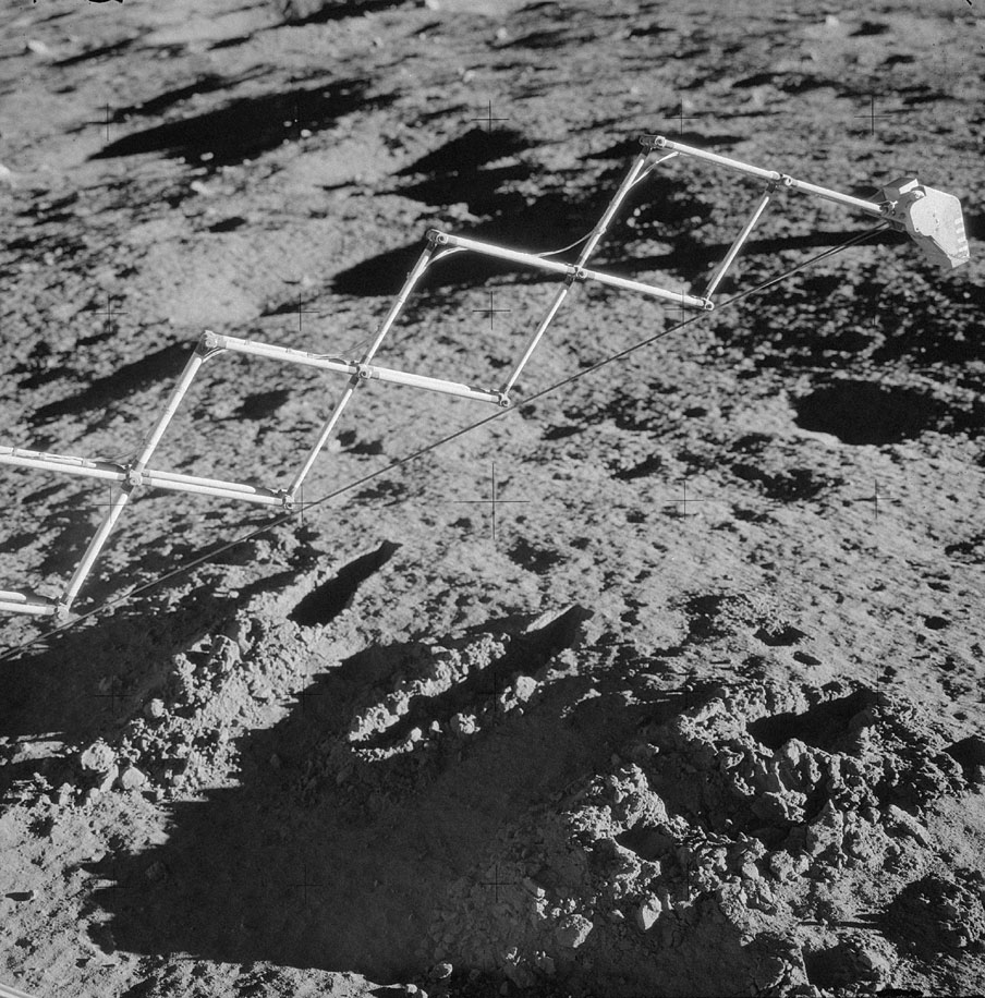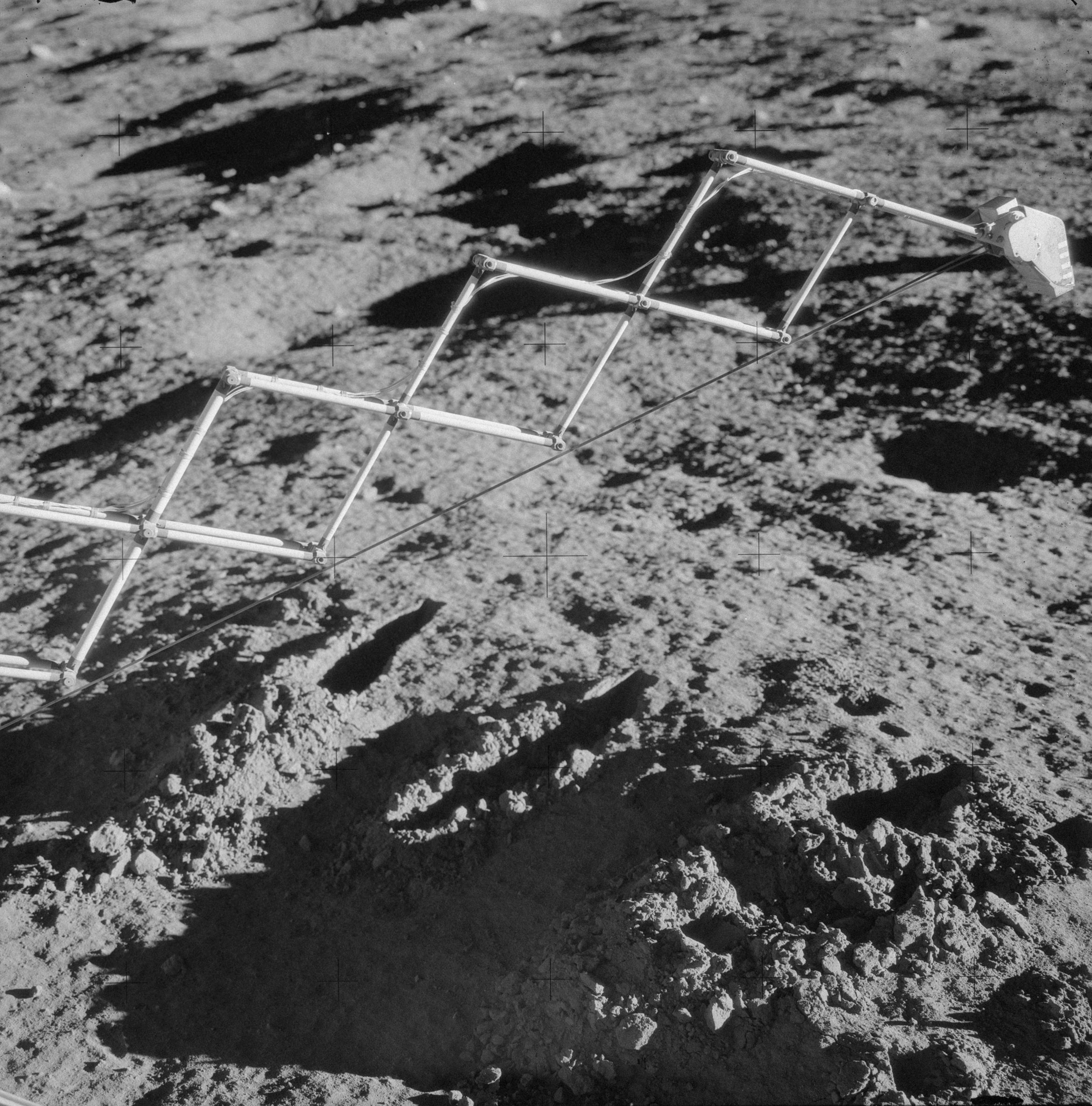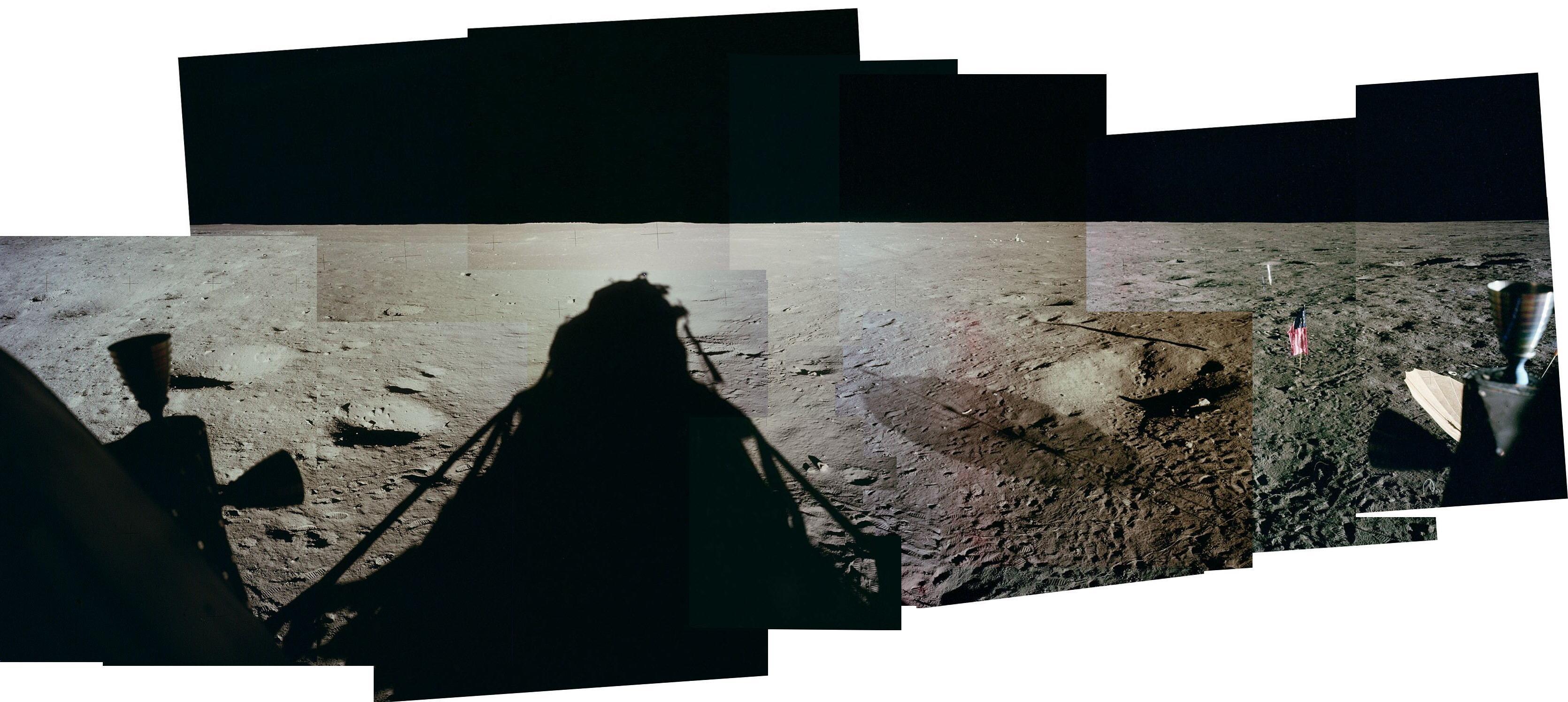 The raw image is M114104917R. See, also, a labeled version ( 0.8 Mb ). A labeled 2x detail shows features at the ALSEP site. Late in EVA-1, Pete and Al ran out to the rim of Middle Crescent Crater, where Pete took a pair of partial pans showing the crater. A variety of craters and boulders in the crater are identified in a comparison ( 5.1 Mb ) between Pete's first pan and the 29 Nov 2009 LROC image.09 January 2010 04:27:29 UTC; Solar El/Az 9.3/270.5; LRO altitude 43.1 km; resolution 0.49m/pixel ( 8.4 Mb )Deconvolved, 0.25 m/pixel (3.1 Mb TIF) and 0.5 m/pixel (3.4 Mb TIF) versions by GoneToPlaid.