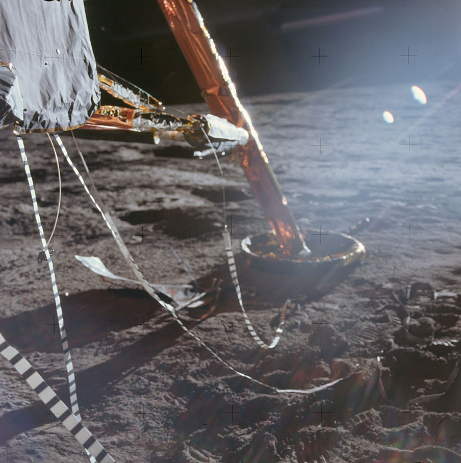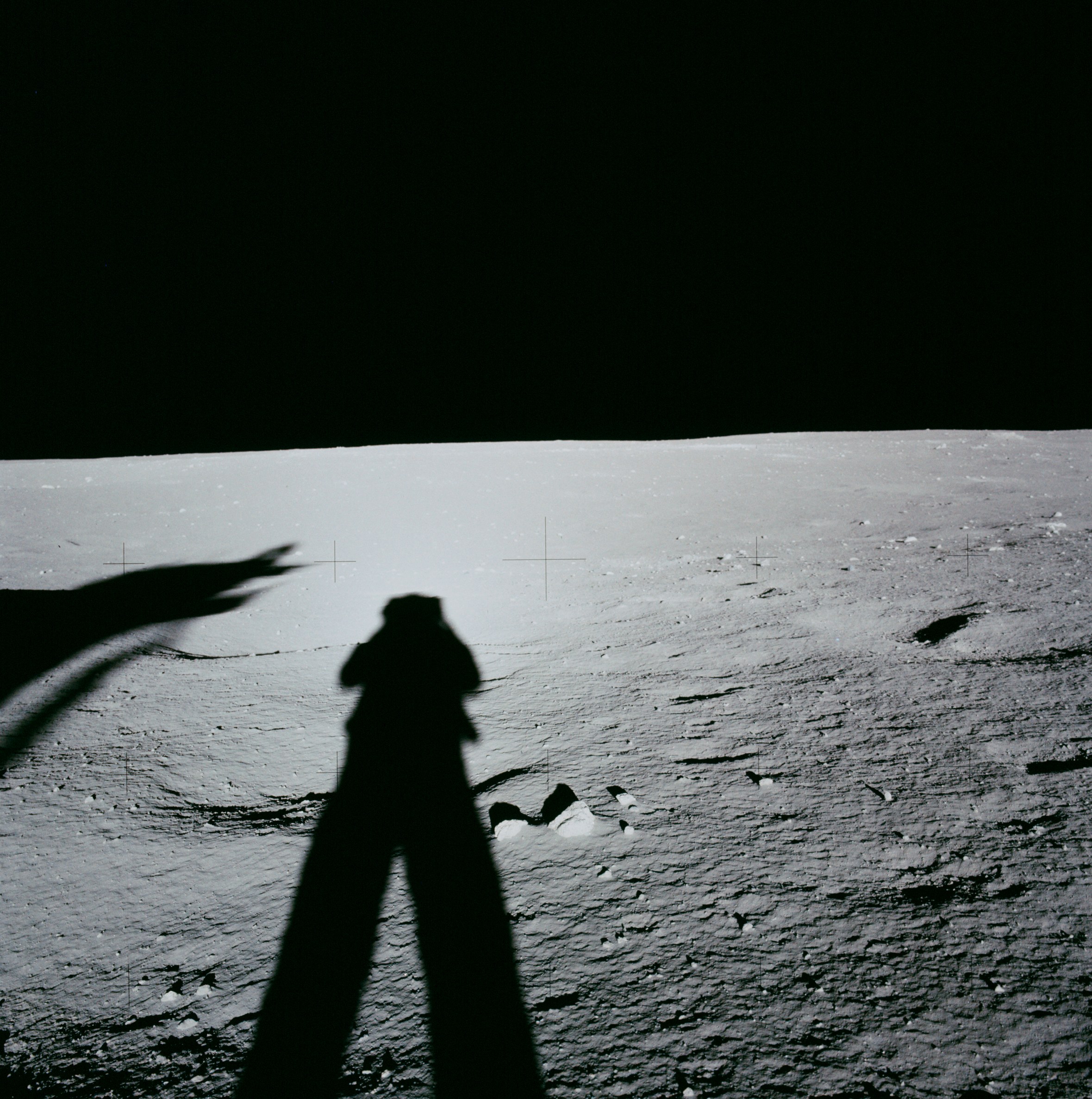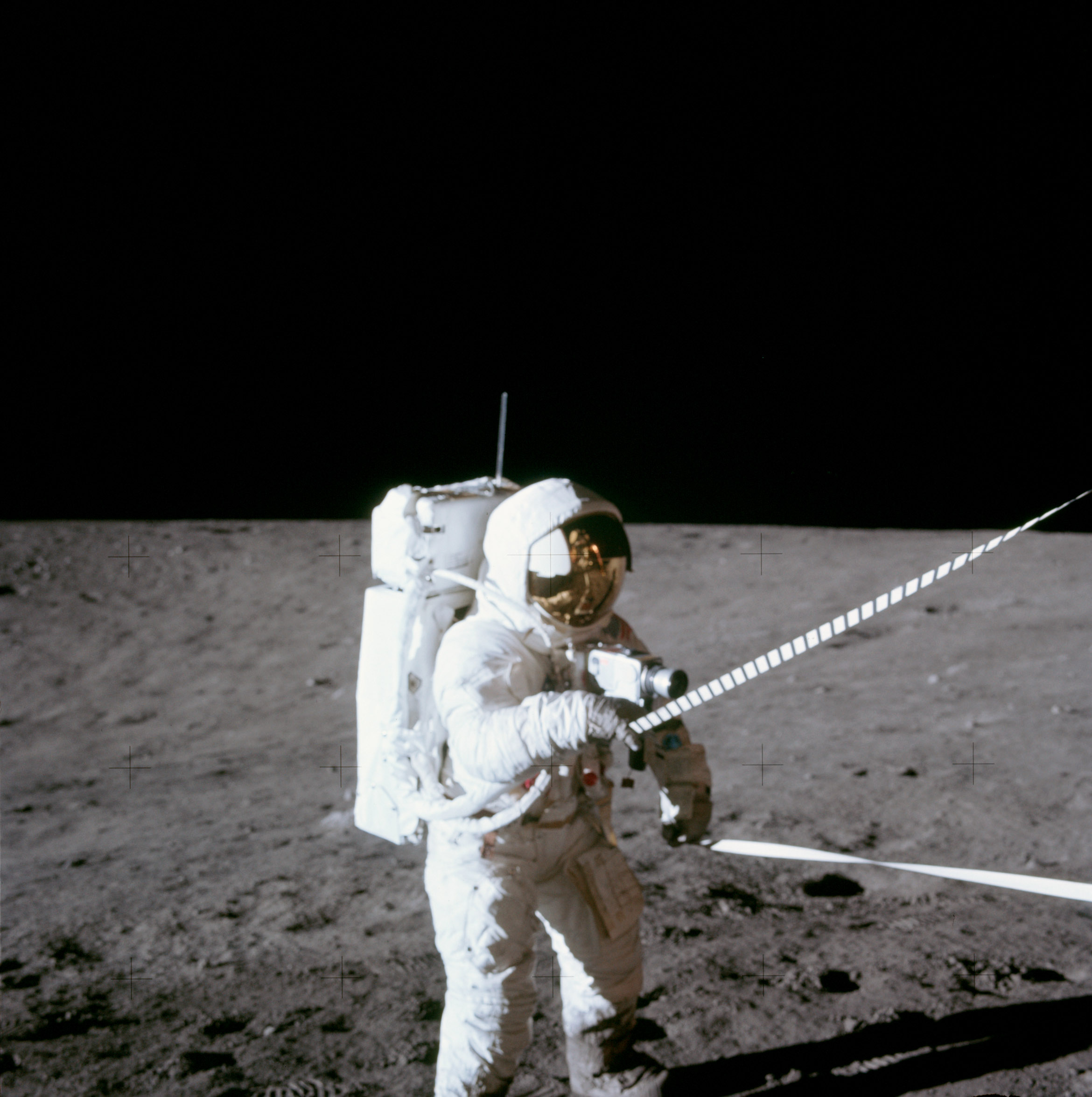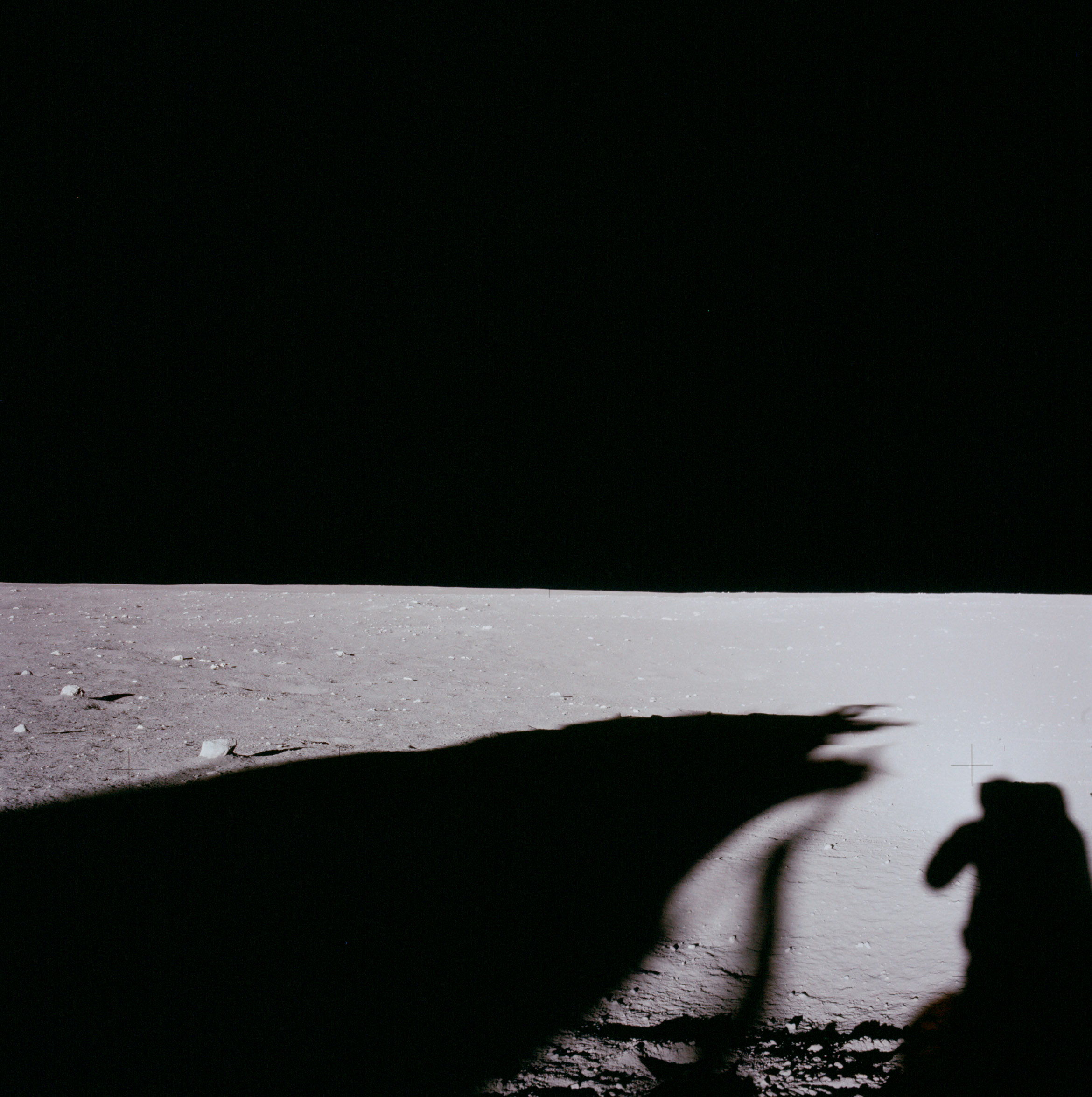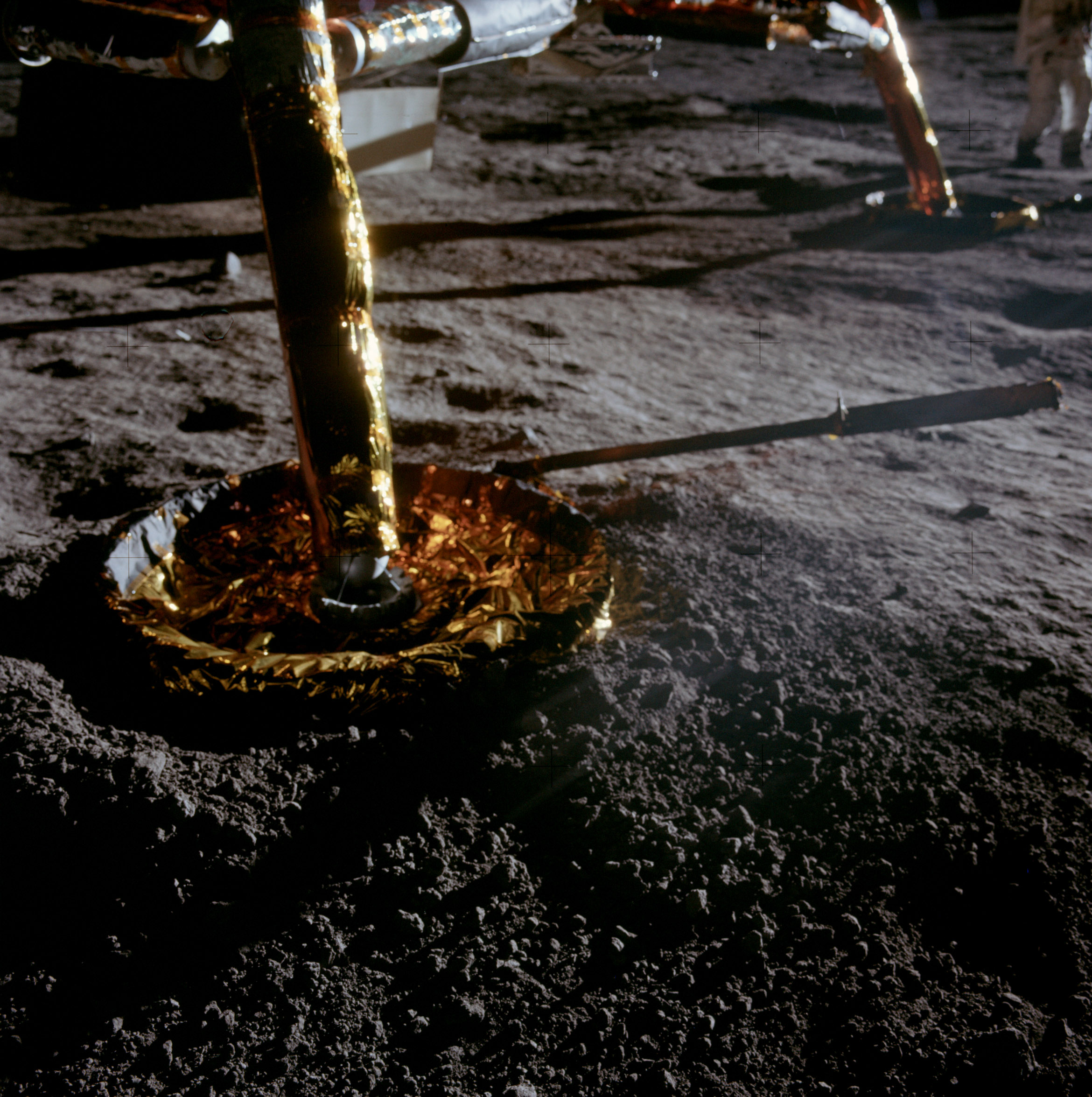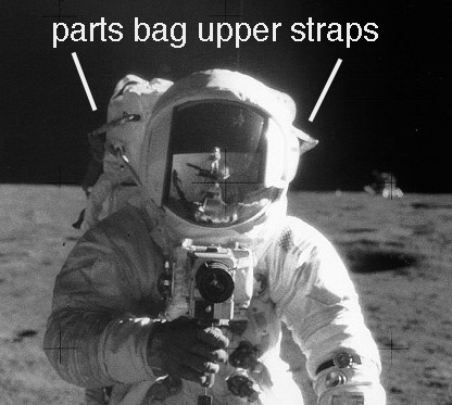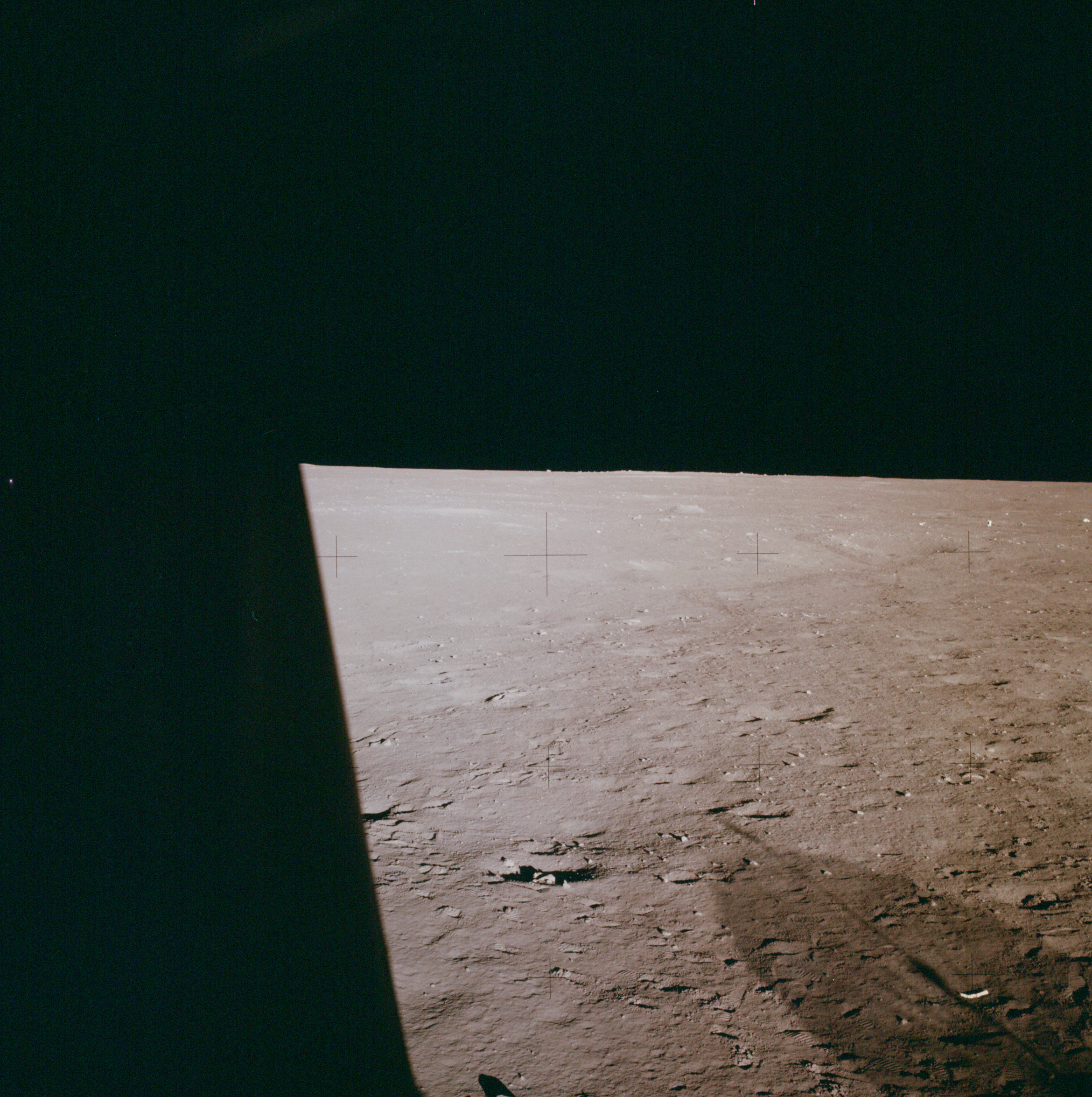 We have begun adding scans of the original film. These scans are being done by NASA Johnson, with some post-processing by Kipp Teague. The film is scanned at 4096 x 4096 pixels per image. (See a discussion from Arizona State University about the scanning process.) Kipp reduces each digital image to approximately 2350 x 2350 pixels (equivalent to 300 dpi) and does minor adjustments of levels to ensure that (1) brightly lit areas of lunar soil are neutral grey, (2) objects with known colors (such as the CDR stripes or the LCRU blankets) look right, and (3) information in bright or dark areas is not lost. These images from original film are indicated by the notation 'OF300' in the image description. In each case, a 900 x 900 pixel version is also provided.