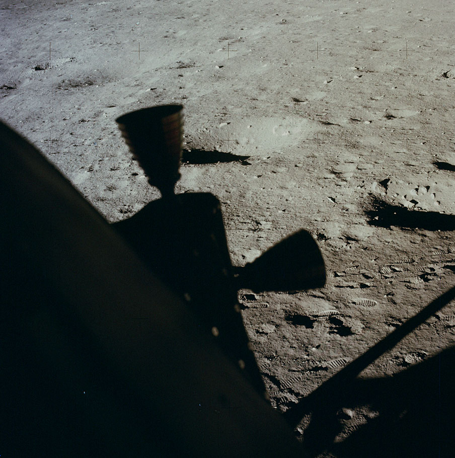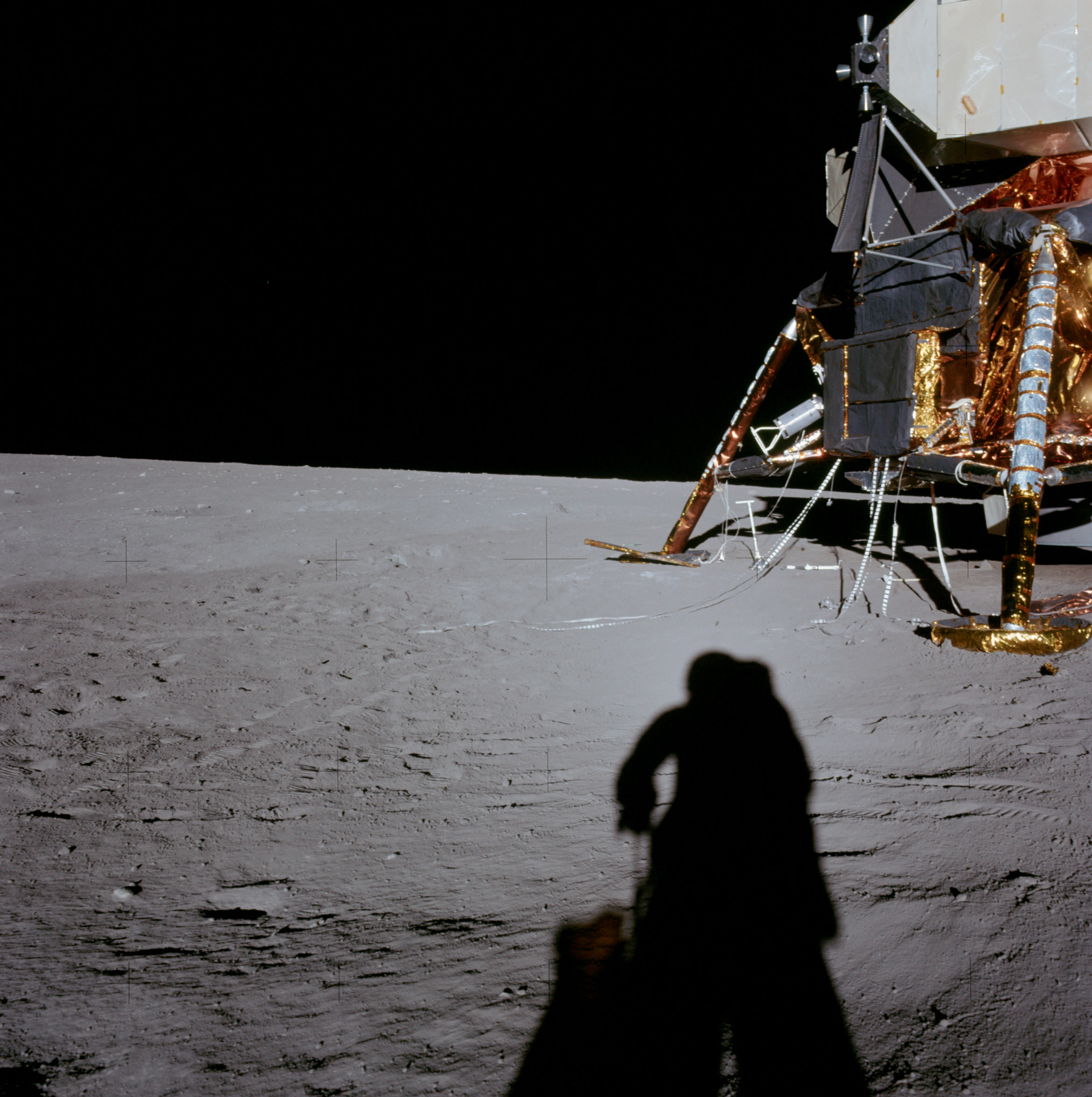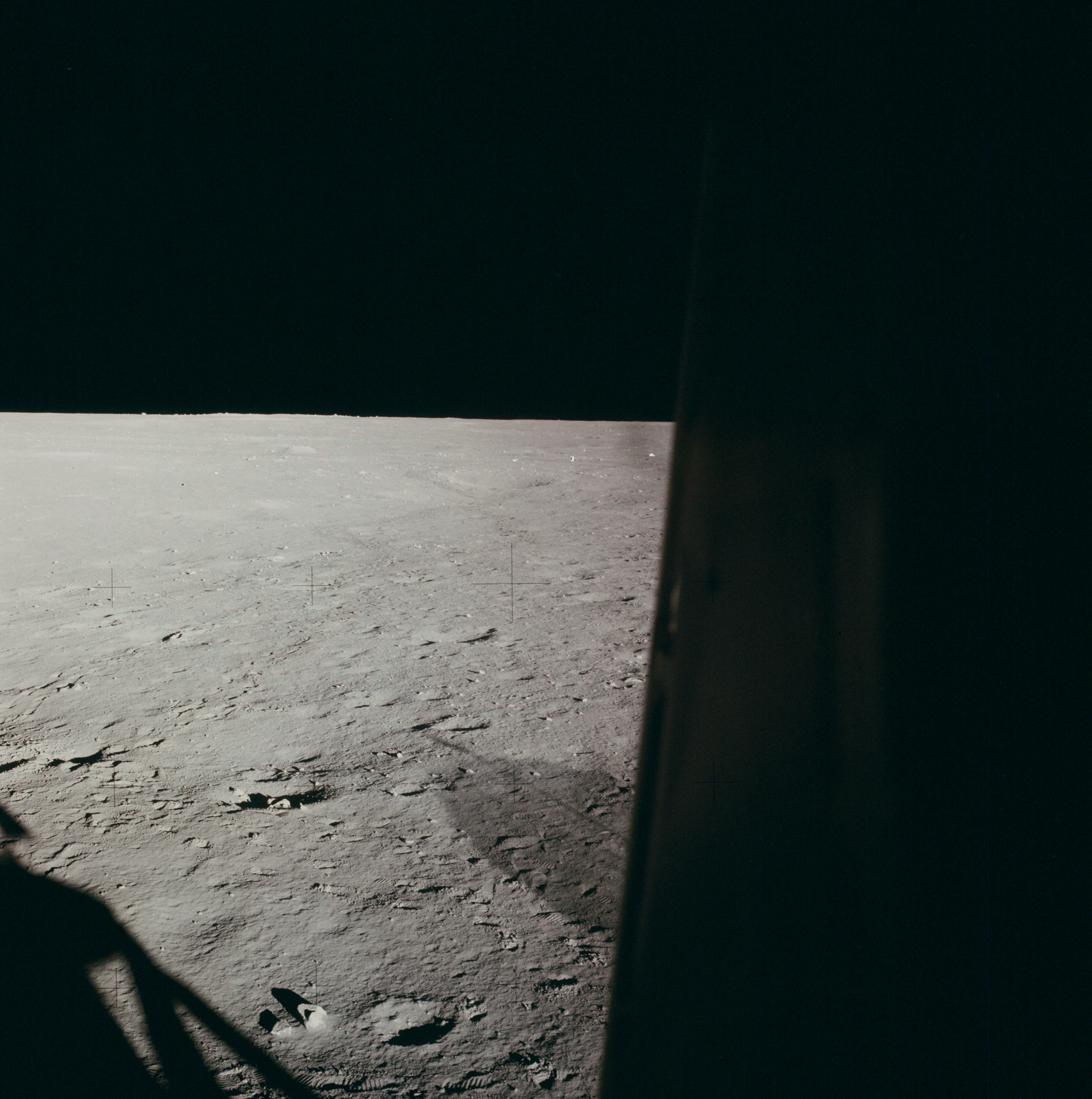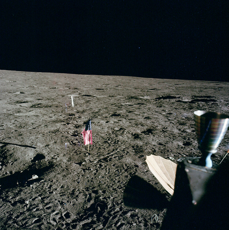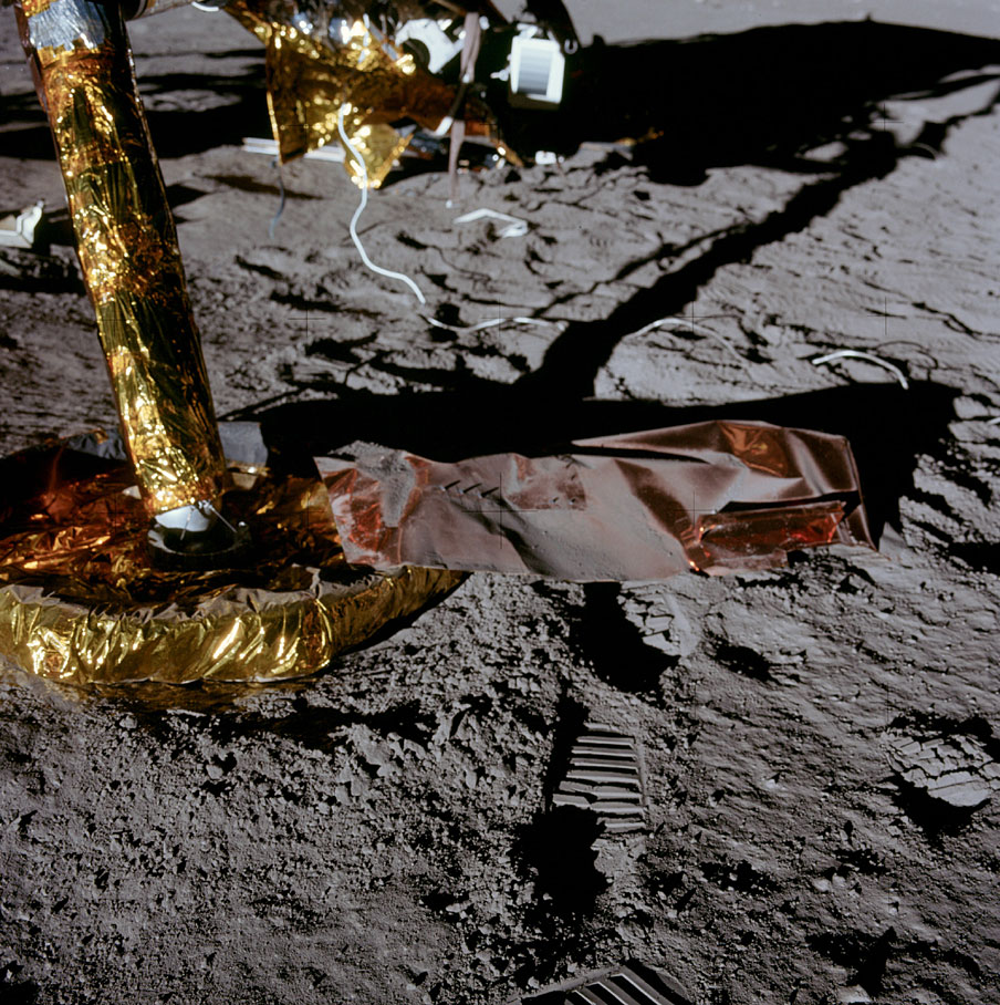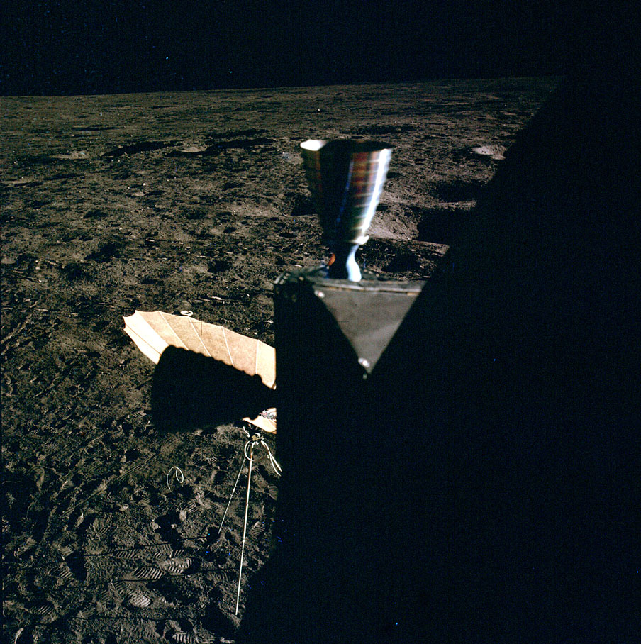 We have begun adding scans of the original film. These scans are being done by NASA Johnson, with some post-processing by Kipp Teague. The film is scanned at 4096 x 4096 pixels per image. (See a discussion from Arizona State University about the scanning process.) Kipp reduces each digital image to approximately 2350 x 2350 pixels (equivalent to 300 dpi) and does minor adjustments of levels to ensure that (1) brightly lit areas of lunar soil are neutral grey, (2) objects with known colors (such as the CDR stripes or the LCRU blankets) look right, and (3) information in bright or dark areas is not lost. These images from original film are indicated by the notation 'OF300' in the image description. In each case, a 900 x 900 pixel version is also provided.