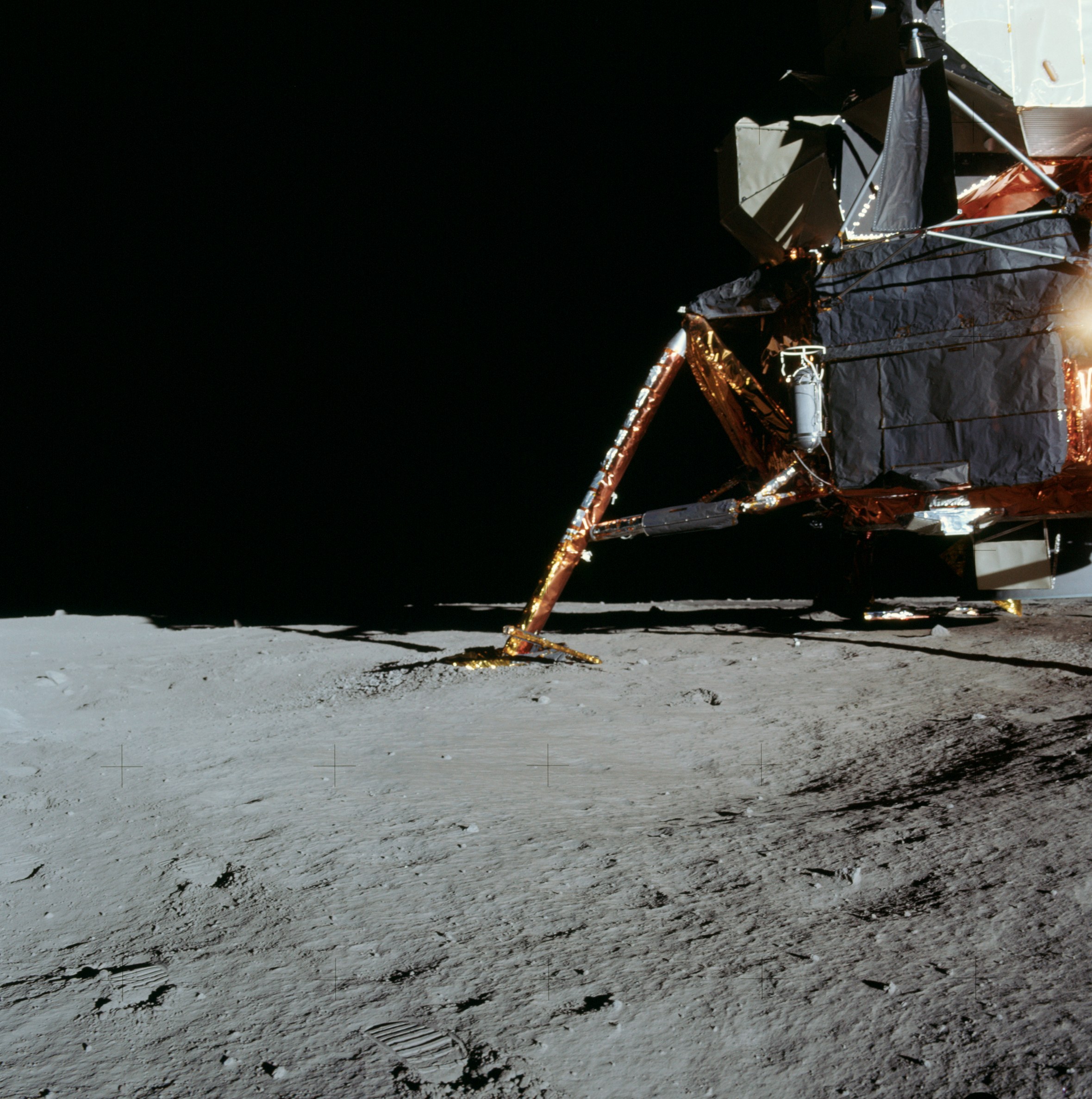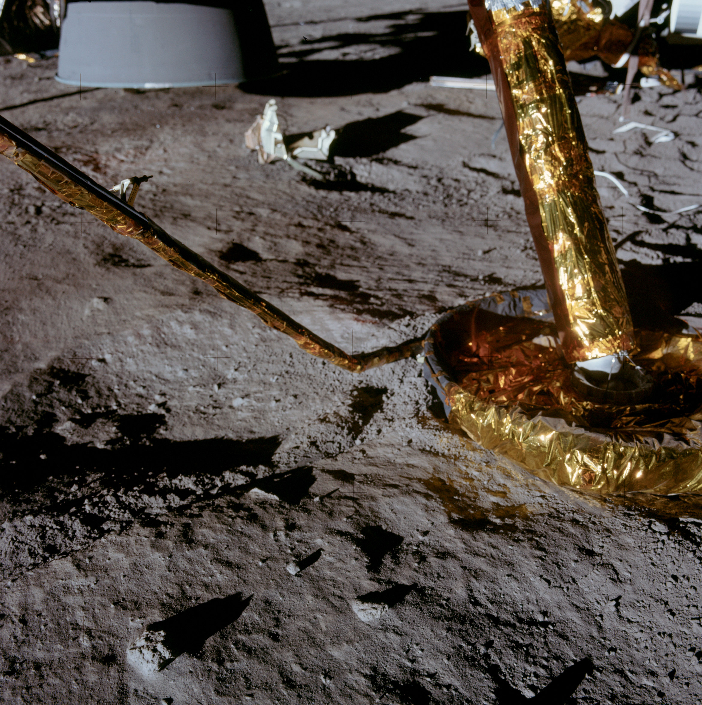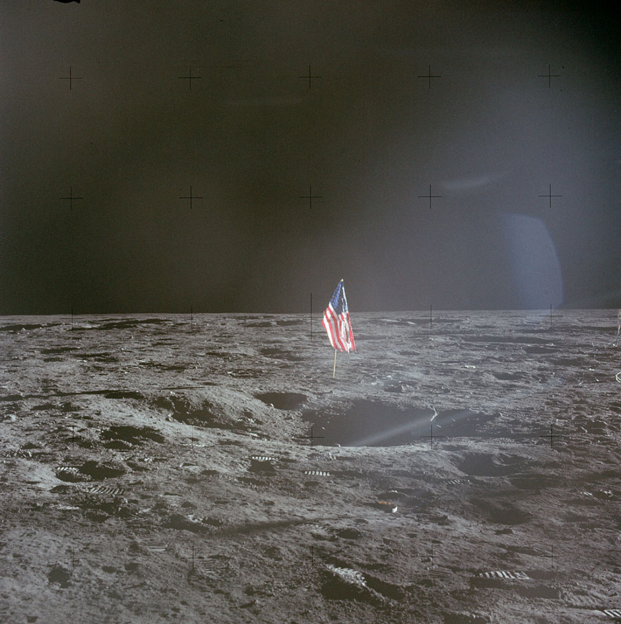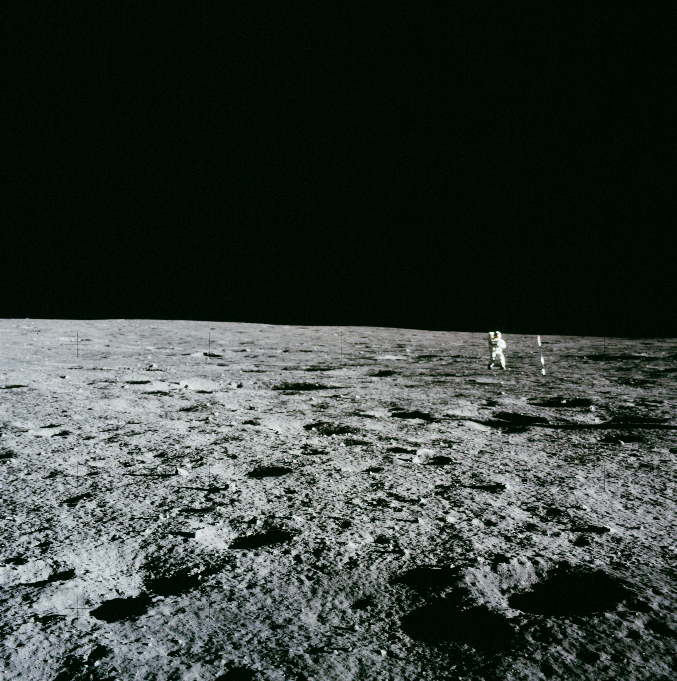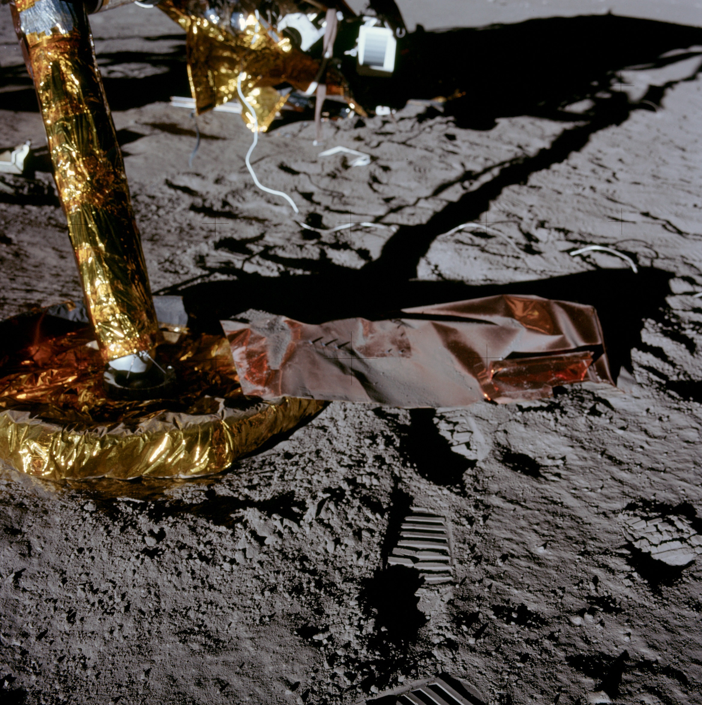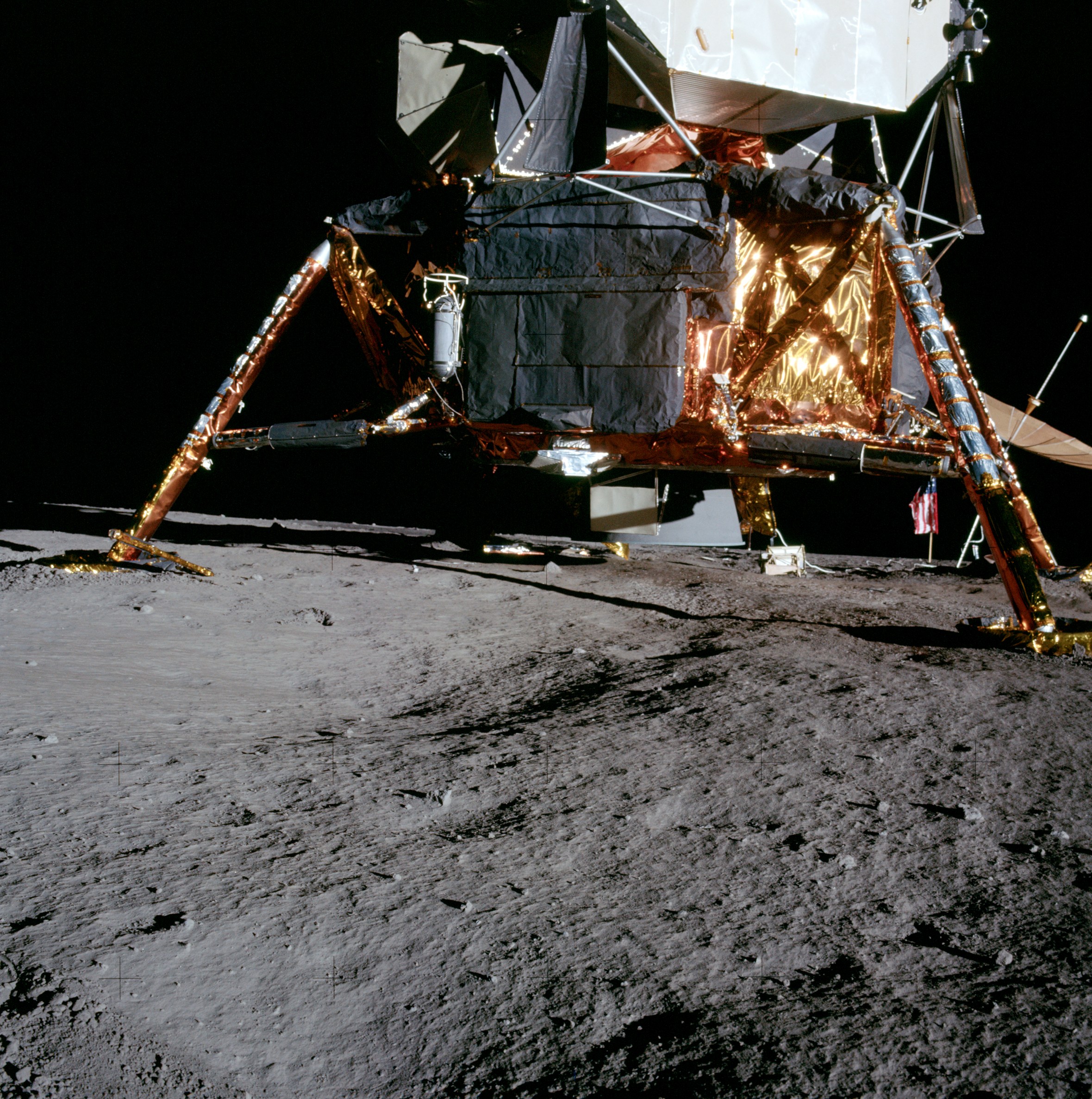 We have begun adding scans of the original film. These scans are being done by NASA Johnson, with some post-processing by Kipp Teague. The film is scanned at 4096 x 4096 pixels per image. (See a discussion from Arizona State University about the scanning process.) Kipp reduces each digital image to approximately 2350 x 2350 pixels (equivalent to 300 dpi) and does minor adjustments of levels to ensure that (1) brightly lit areas of lunar soil are neutral grey, (2) objects with known colors (such as the CDR stripes or the LCRU blankets) look right, and (3) information in bright or dark areas is not lost. These images from original film are indicated by the notation 'OF300' in the image description. In each case, a 900 x 900 pixel version is also provided.