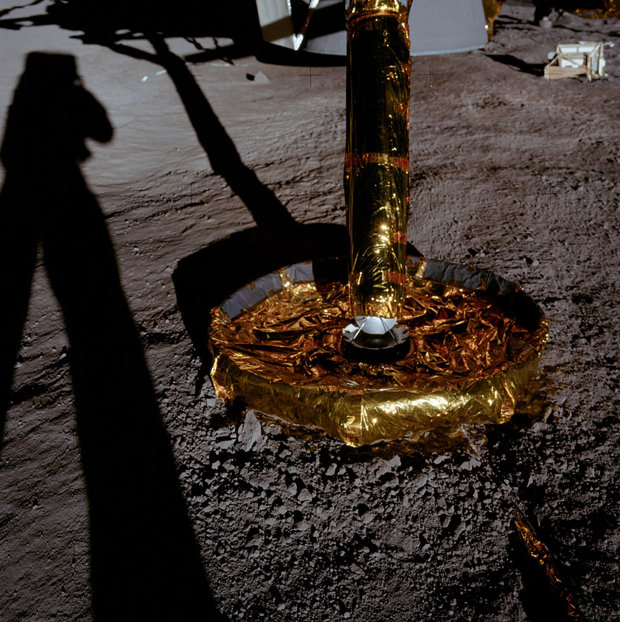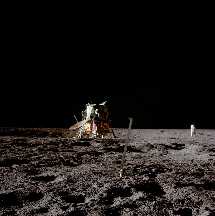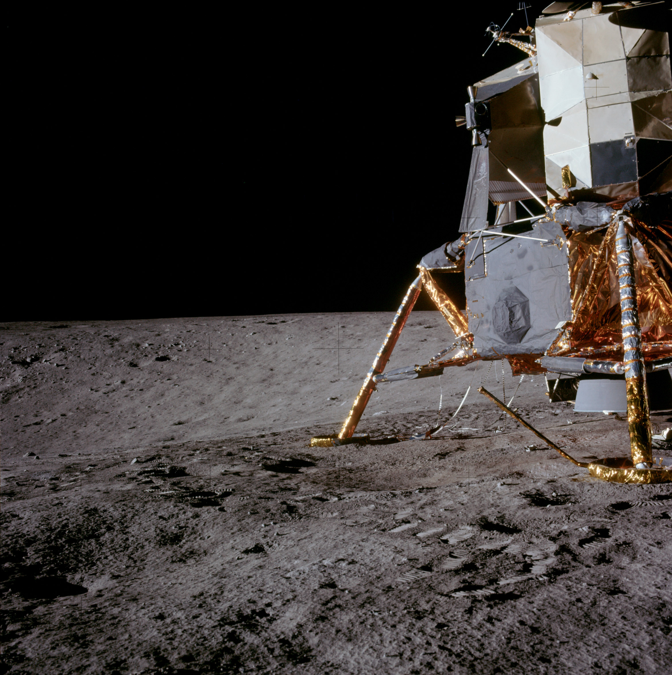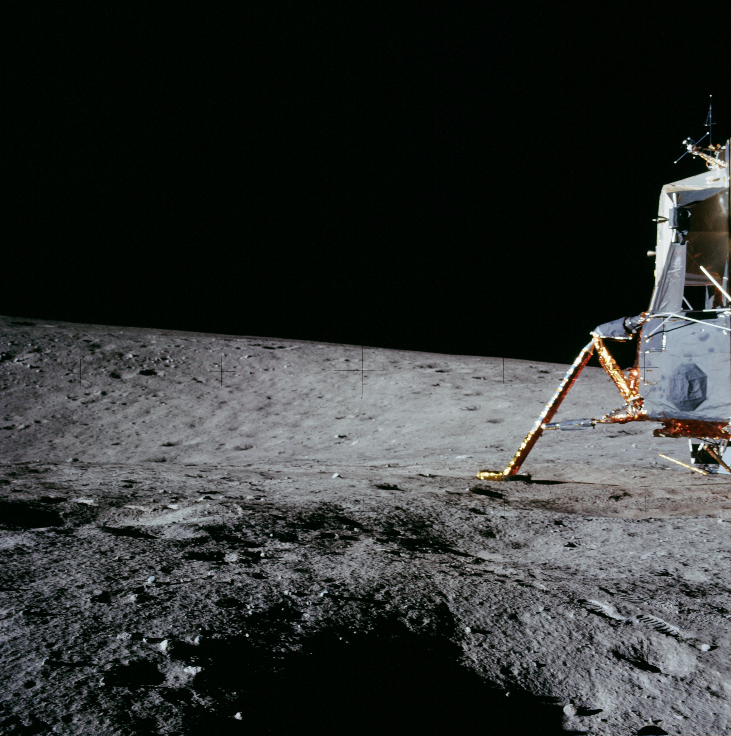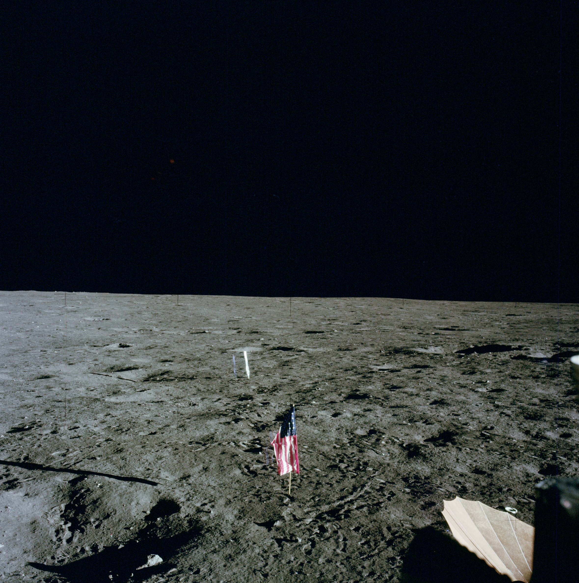 We have begun adding scans of the original film. These scans are being done by NASA Johnson, with some post-processing by Kipp Teague. The film is scanned at 4096 x 4096 pixels per image. (See a discussion from Arizona State University about the scanning process.) Kipp reduces each digital image to approximately 2350 x 2350 pixels (equivalent to 300 dpi) and does minor adjustments of levels to ensure that (1) brightly lit areas of lunar soil are neutral grey, (2) objects with known colors (such as the CDR stripes or the LCRU blankets) look right, and (3) information in bright or dark areas is not lost. These images from original film are indicated by the notation 'OF300' in the image description. In each case, a 900 x 900 pixel version is also provided.