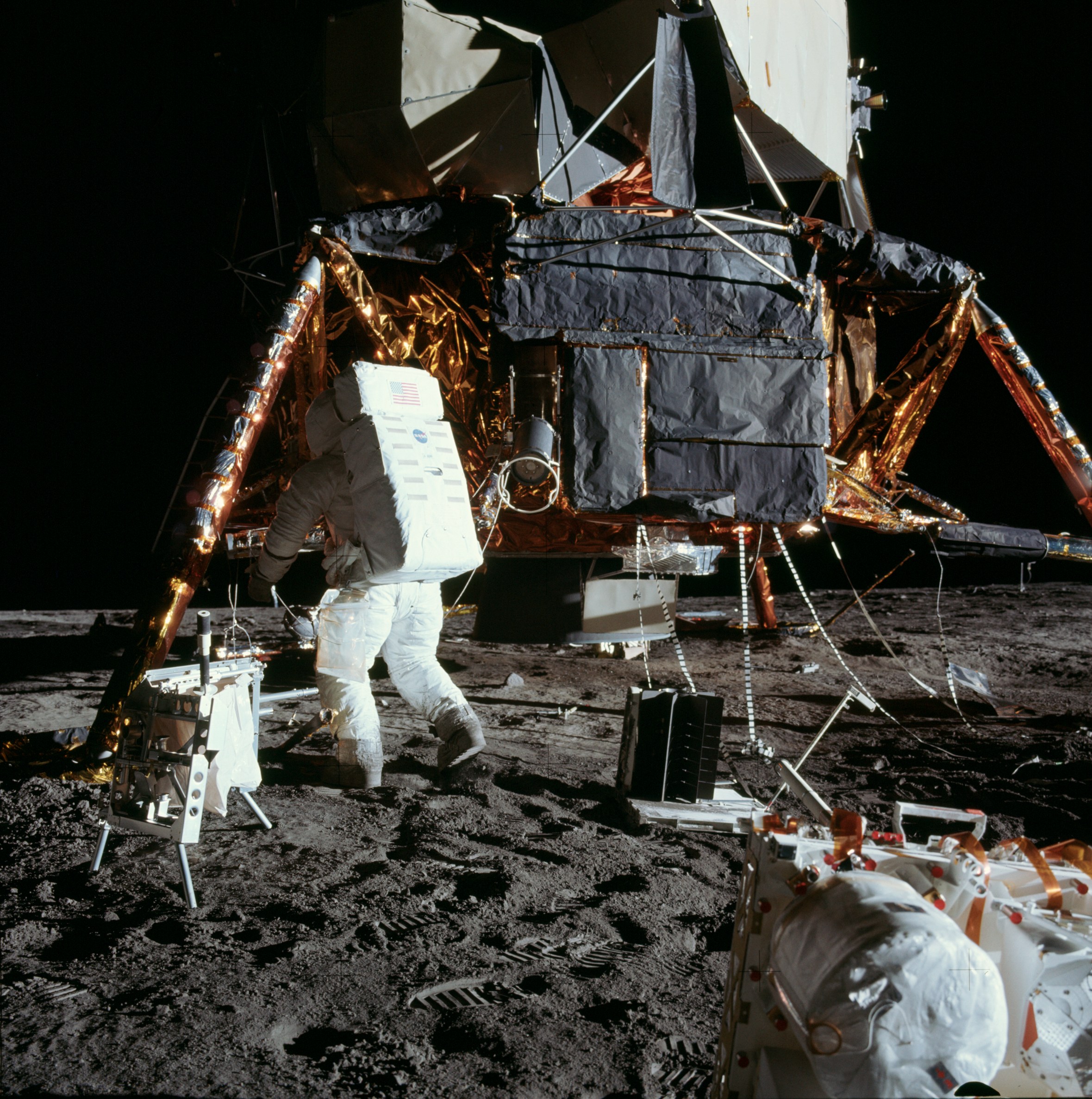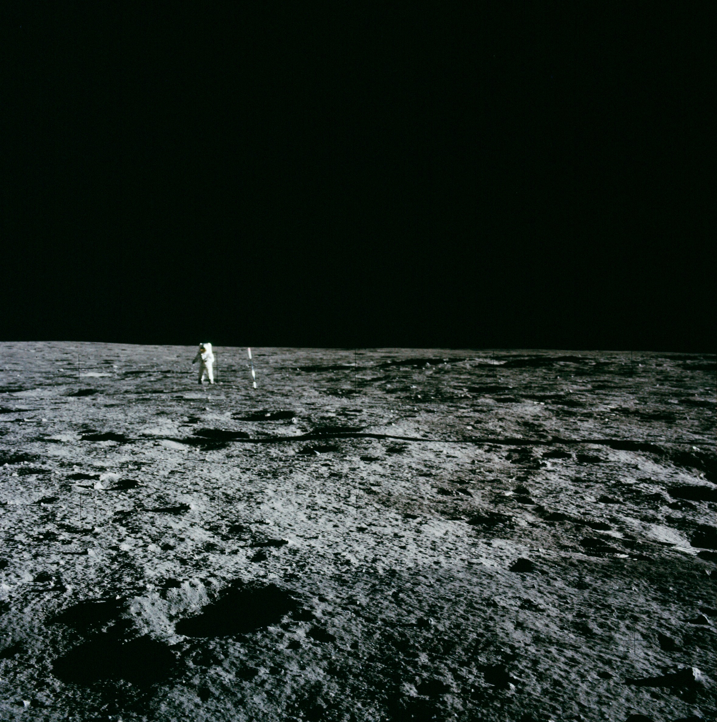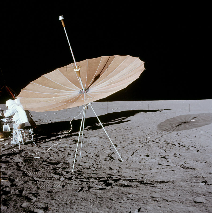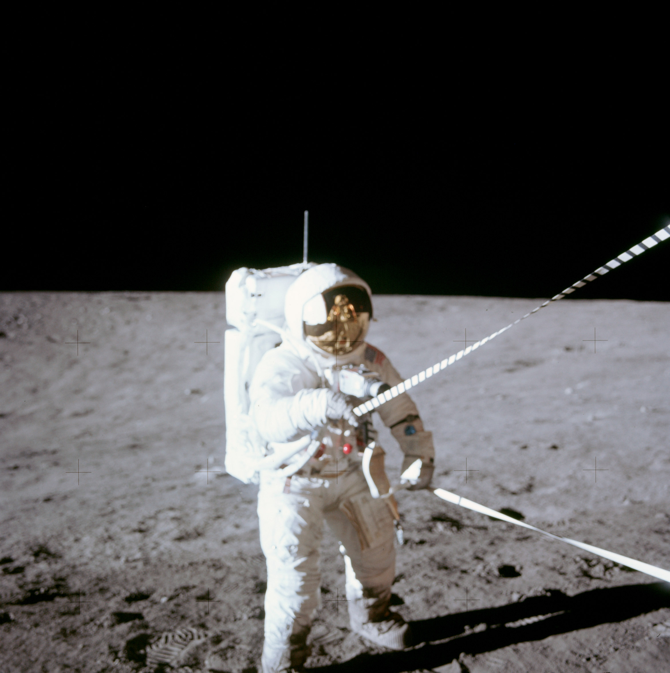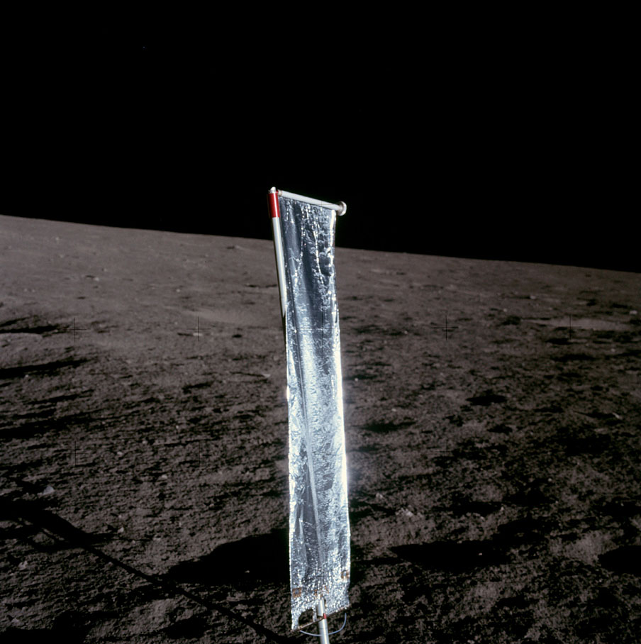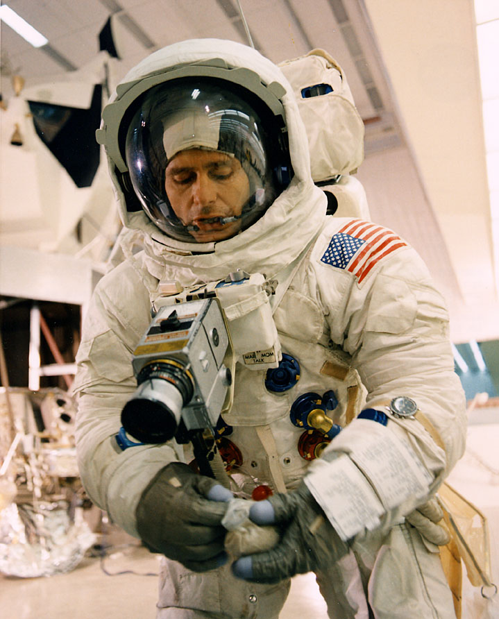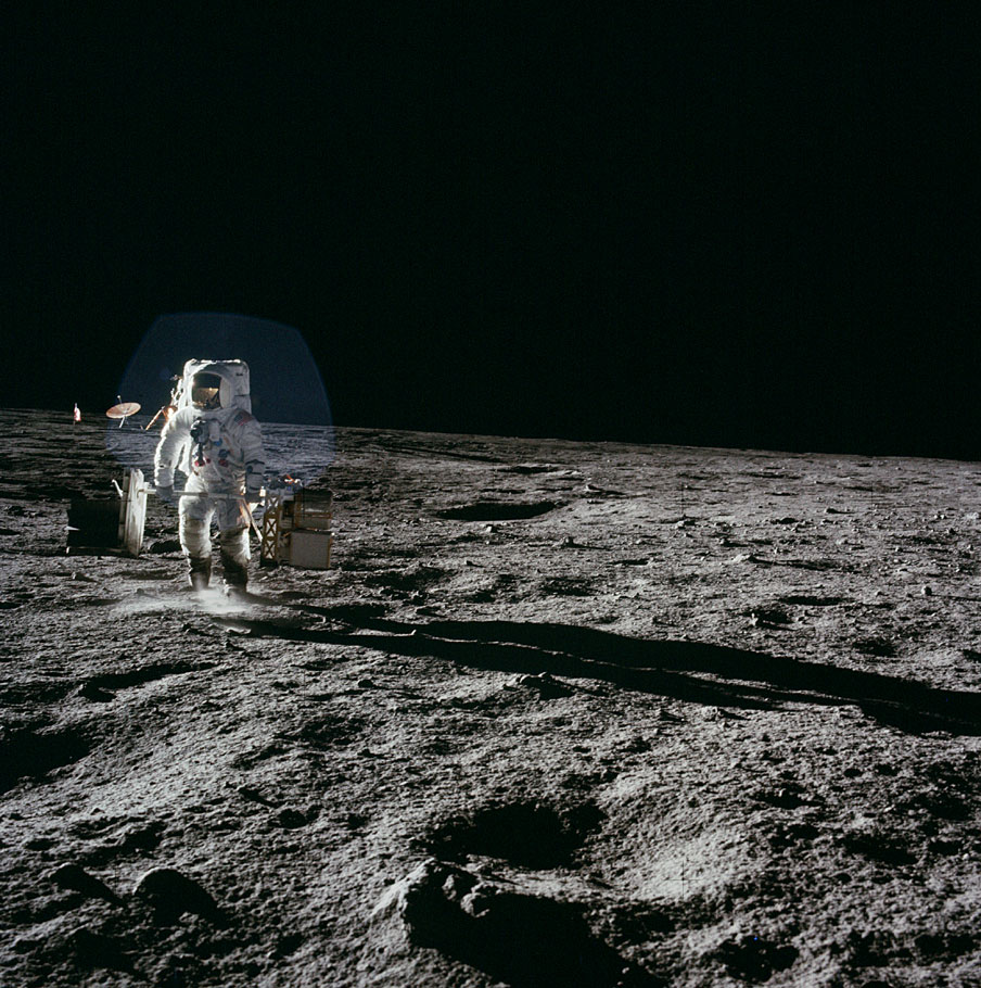 We have begun adding scans of the original film. These scans are being done by NASA Johnson, with some post-processing by Kipp Teague. The film is scanned at 4096 x 4096 pixels per image. (See a discussion from Arizona State University about the scanning process.) Kipp reduces each digital image to approximately 2350 x 2350 pixels (equivalent to 300 dpi) and does minor adjustments of levels to ensure that (1) brightly lit areas of lunar soil are neutral grey, (2) objects with known colors (such as the CDR stripes or the LCRU blankets) look right, and (3) information in bright or dark areas is not lost. These images from original film are indicated by the notation 'OF300' in the image description. In each case, a 900 x 900 pixel version is also provided.
