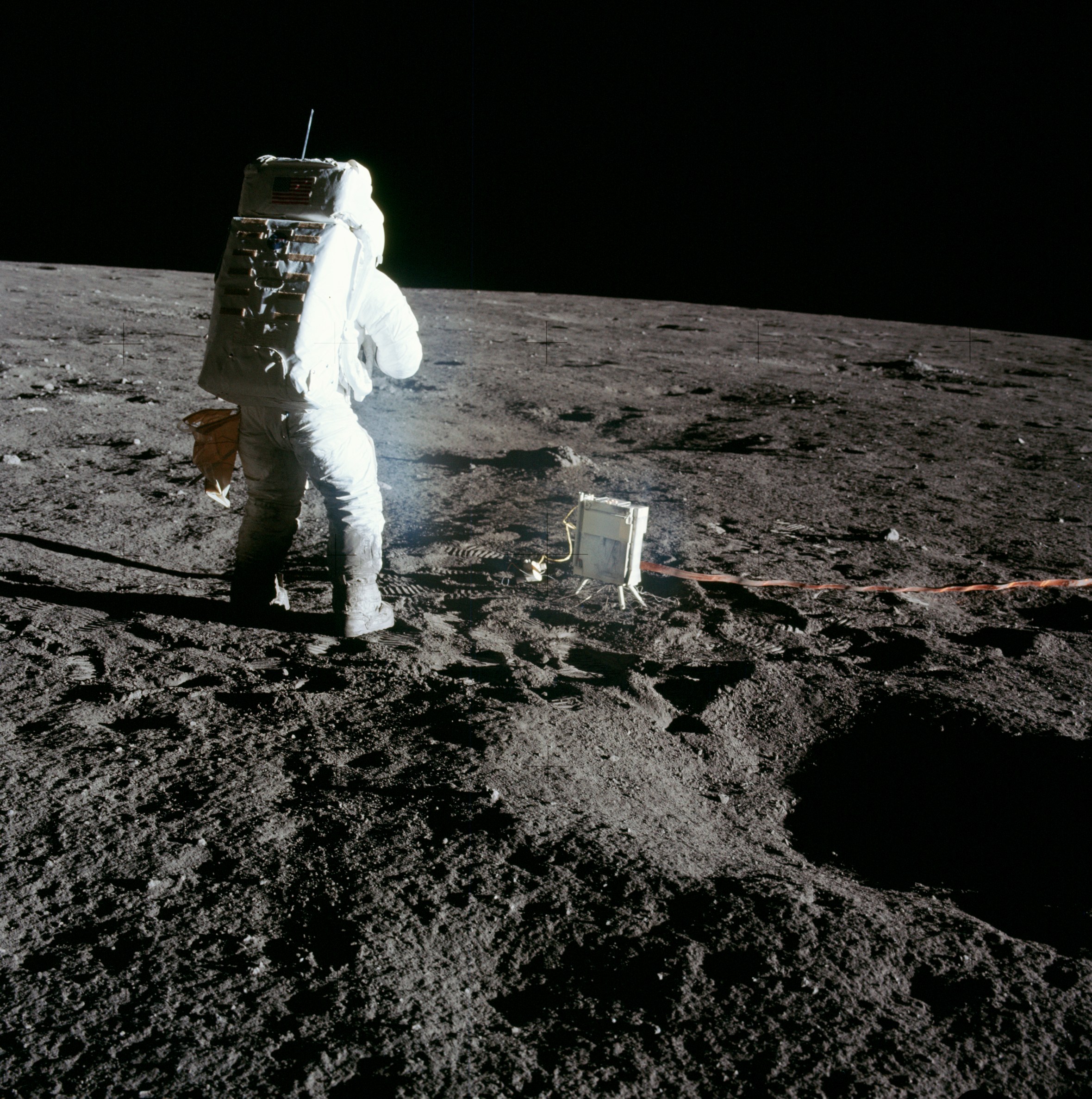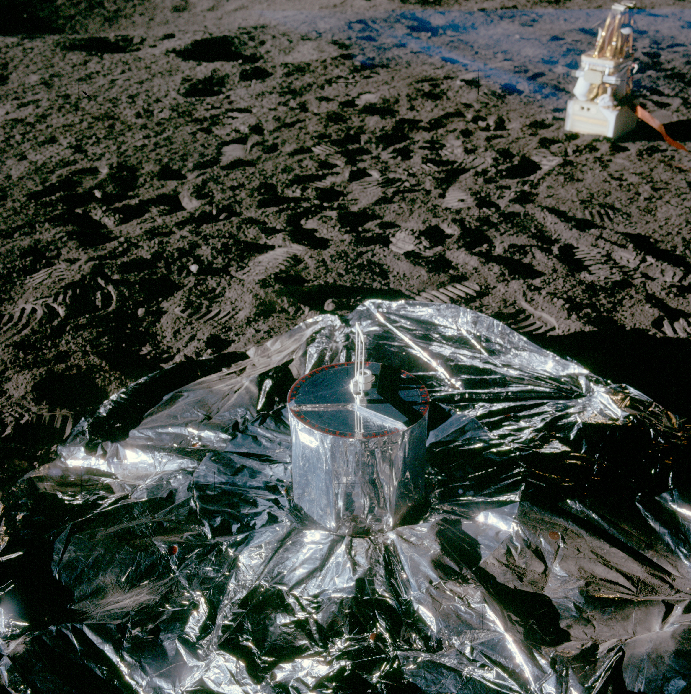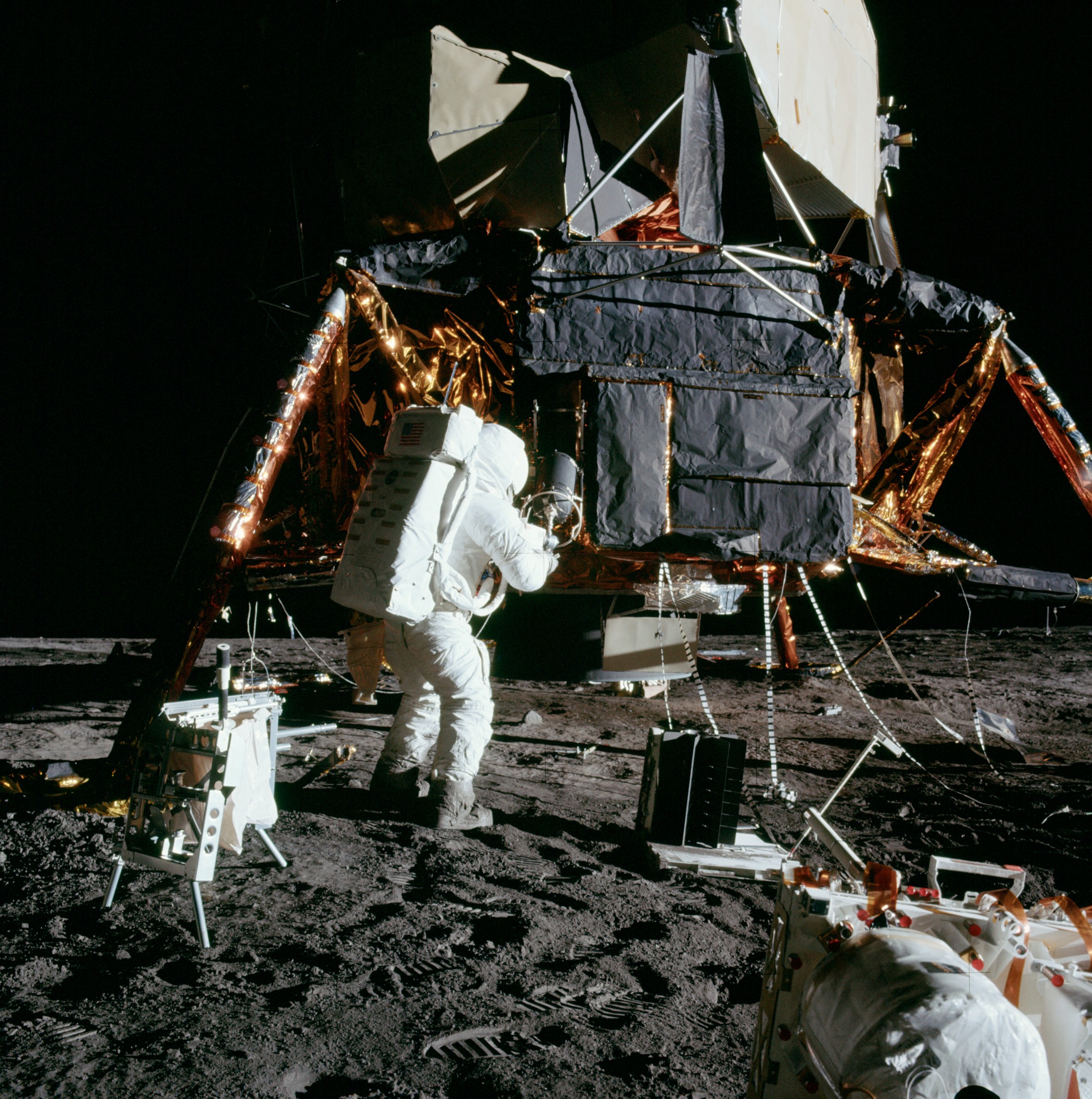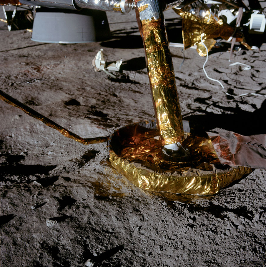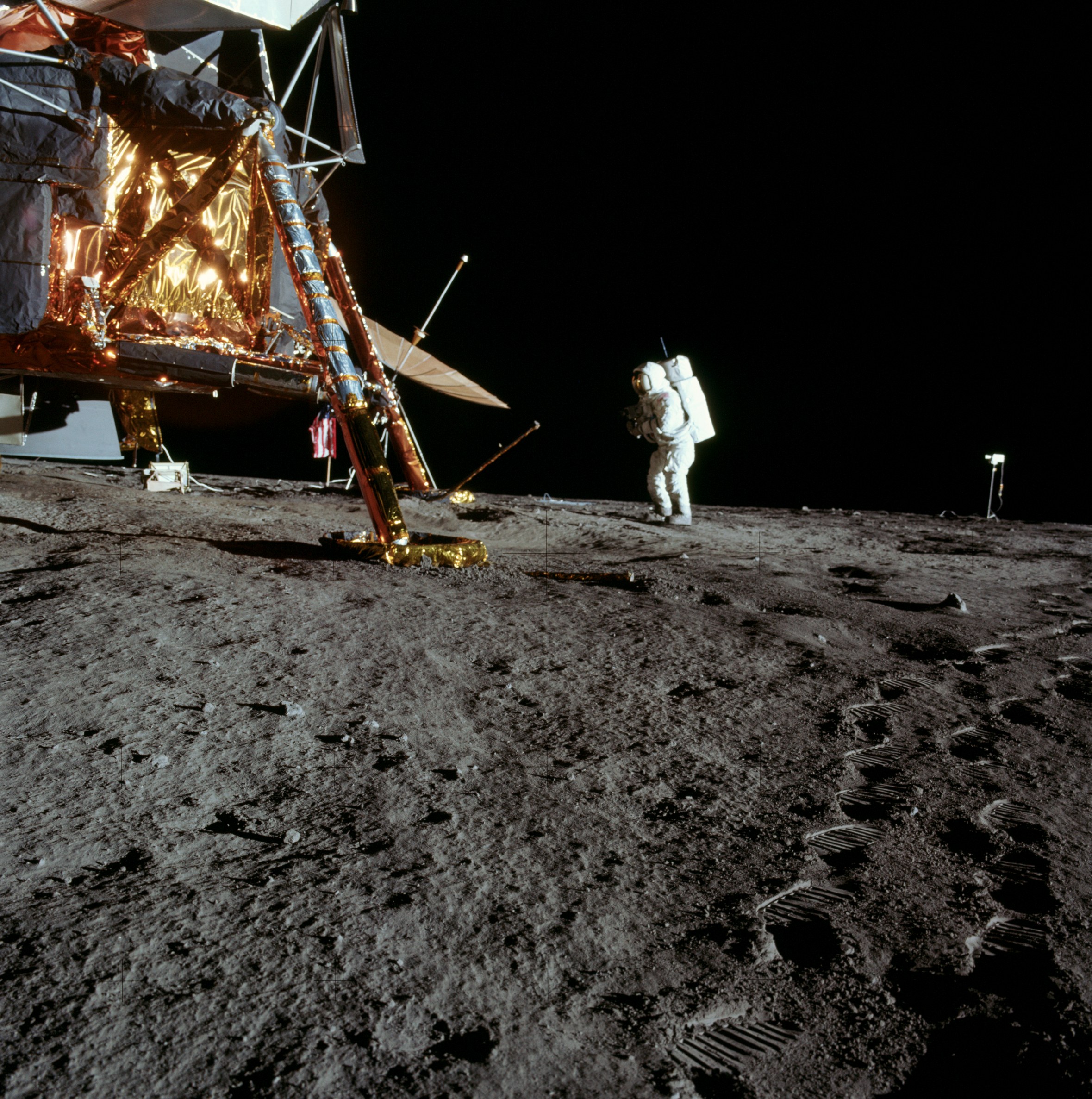 We have begun adding scans of the original film. These scans are being done by NASA Johnson, with some post-processing by Kipp Teague. The film is scanned at 4096 x 4096 pixels per image. (See a discussion from Arizona State University about the scanning process.) Kipp reduces each digital image to approximately 2350 x 2350 pixels (equivalent to 300 dpi) and does minor adjustments of levels to ensure that (1) brightly lit areas of lunar soil are neutral grey, (2) objects with known colors (such as the CDR stripes or the LCRU blankets) look right, and (3) information in bright or dark areas is not lost. These images from original film are indicated by the notation 'OF300' in the image description. In each case, a 900 x 900 pixel version is also provided.