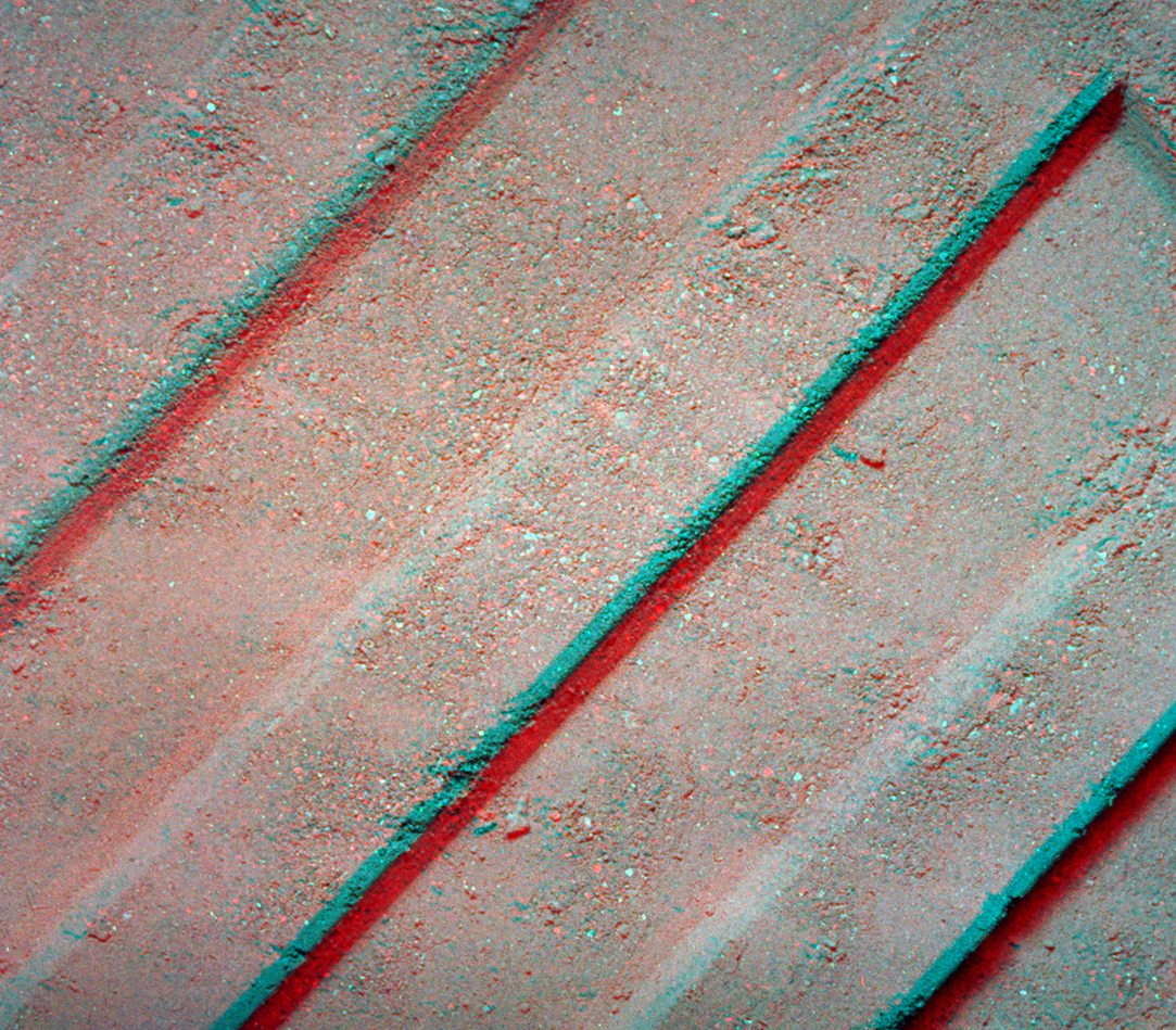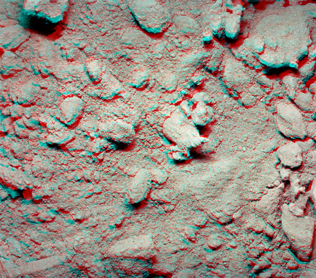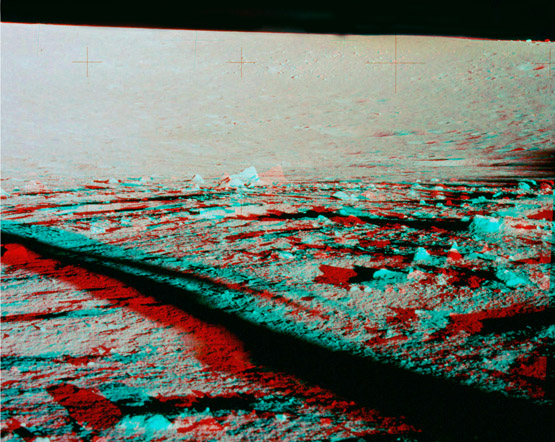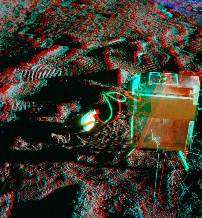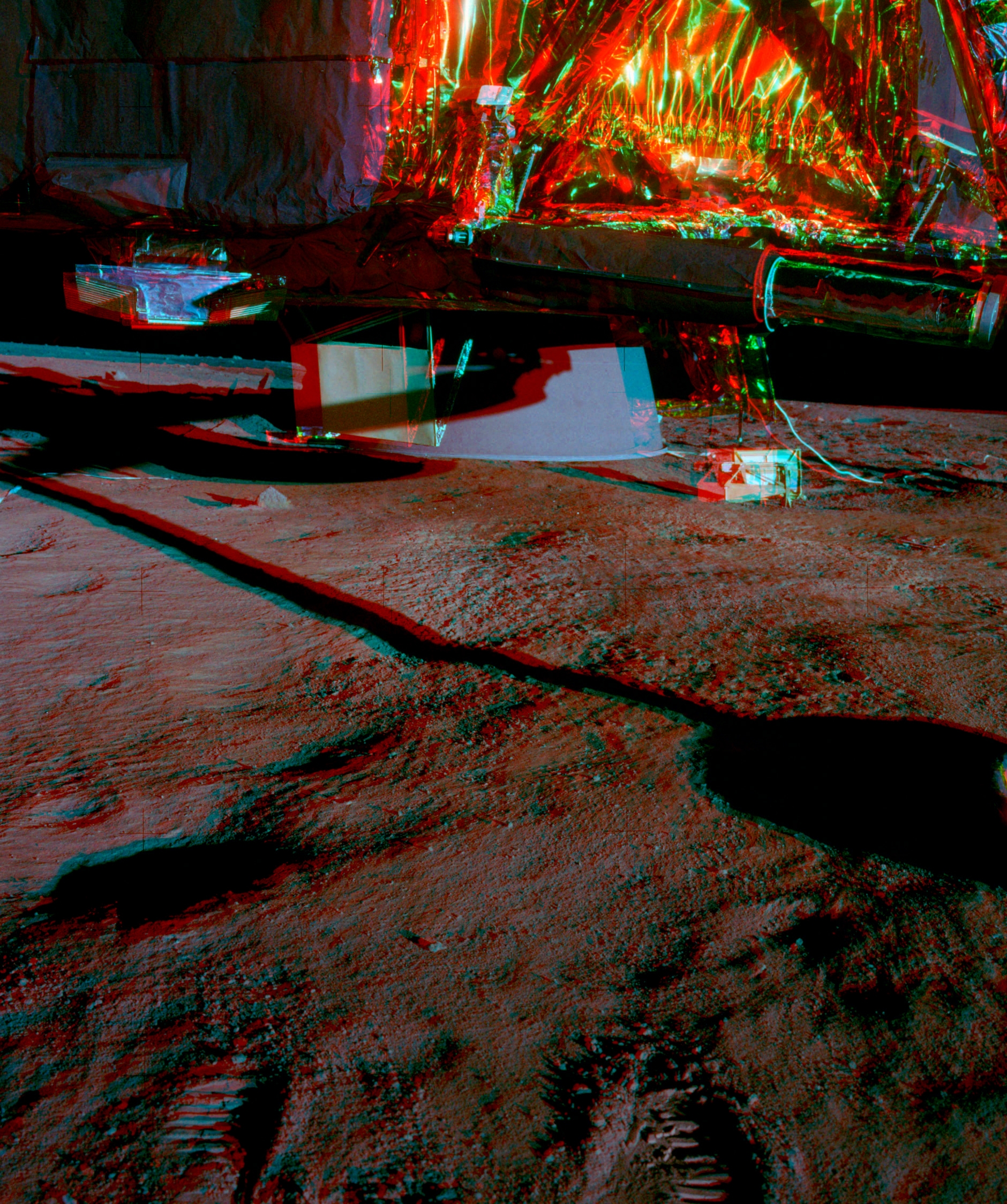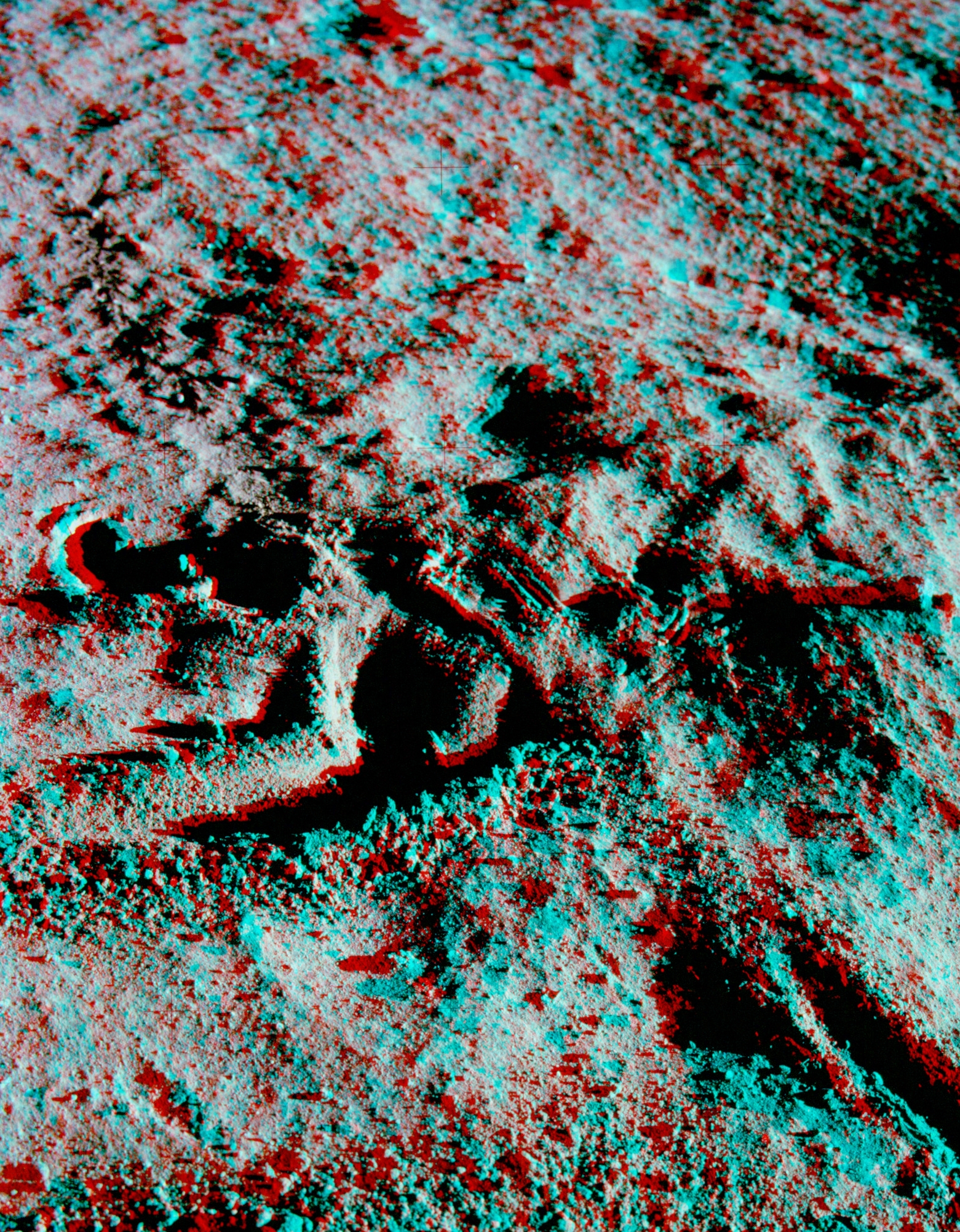 Impression left in the soil by a lunar boot. Red-blue anaglyph created by Erwin D'Hoore.AS12-57-8448 ( 1.9Mb )