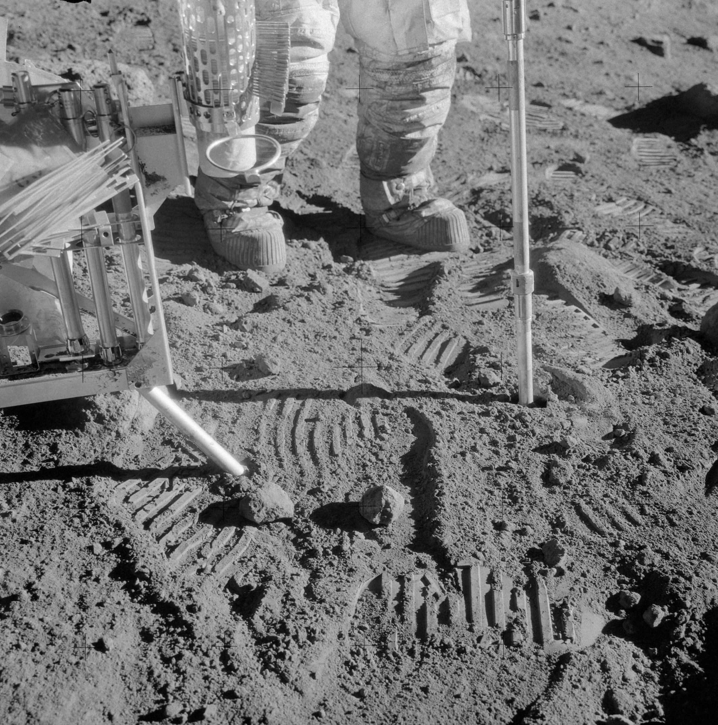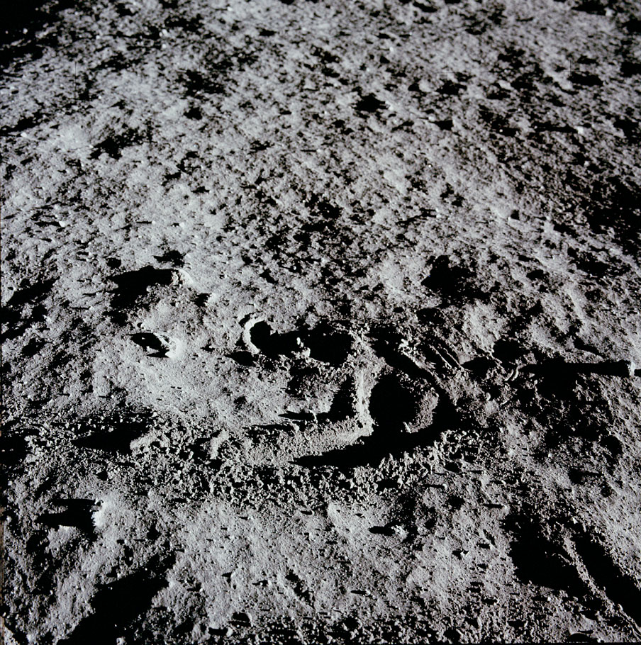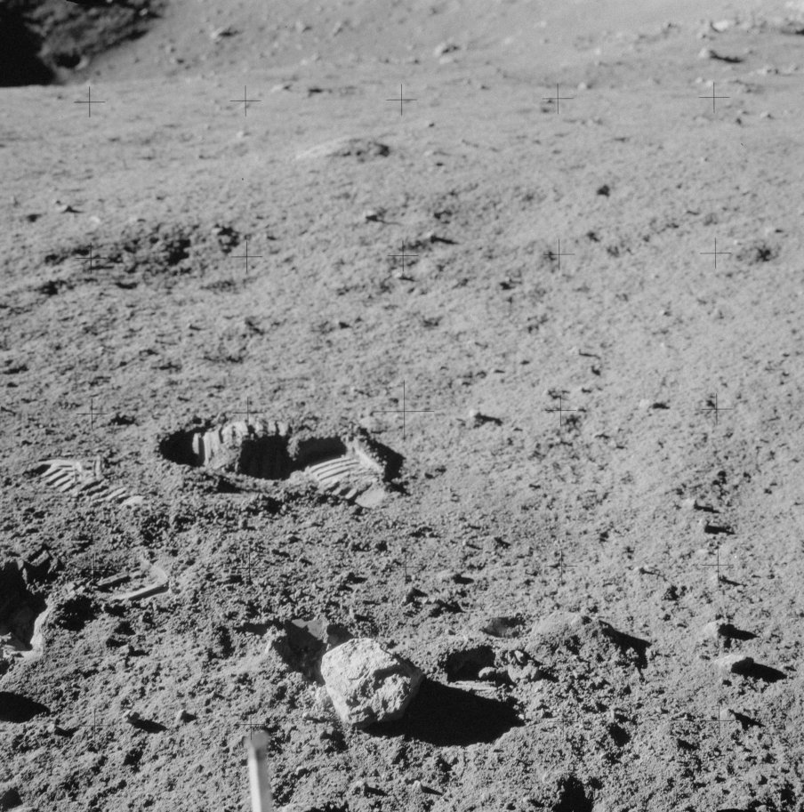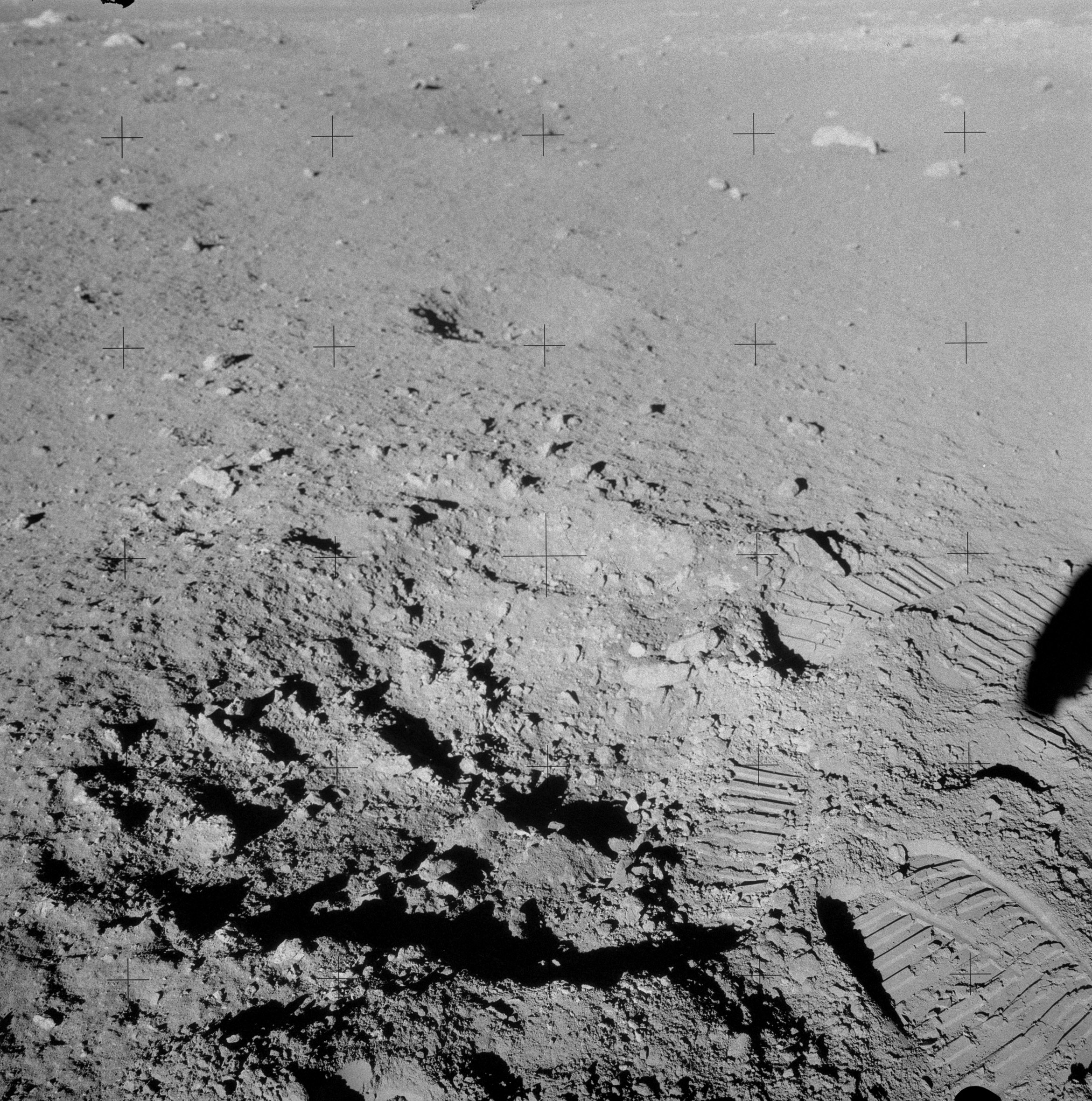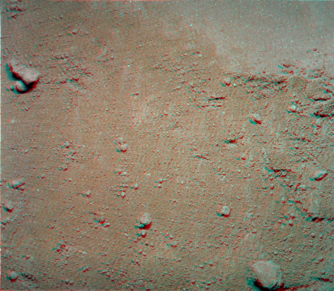 Impression left in the soil by a lunar boot. Red-blue anaglyph created by Erwin D'Hoore.AS12-57-8448 ( 1.9Mb )