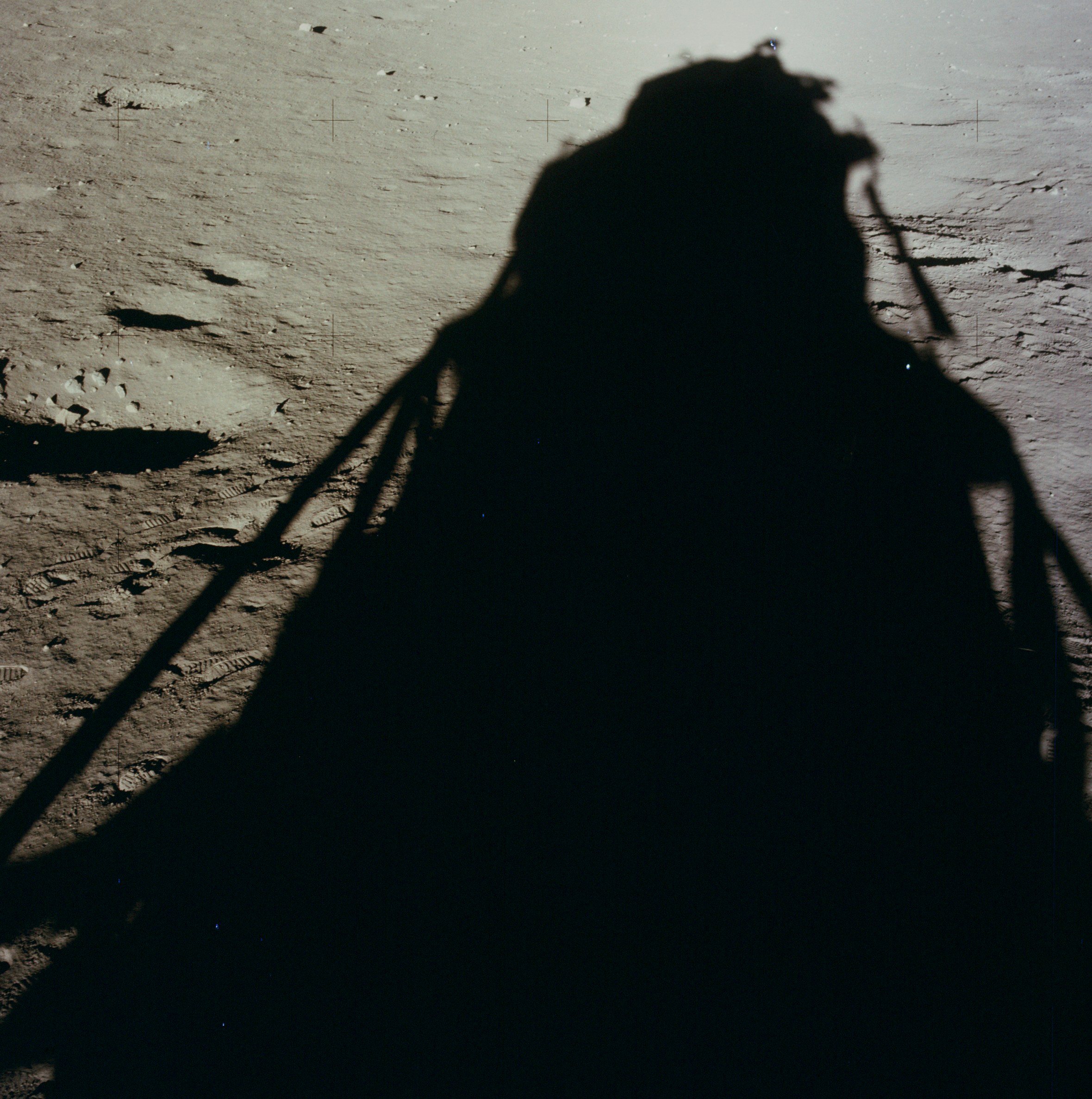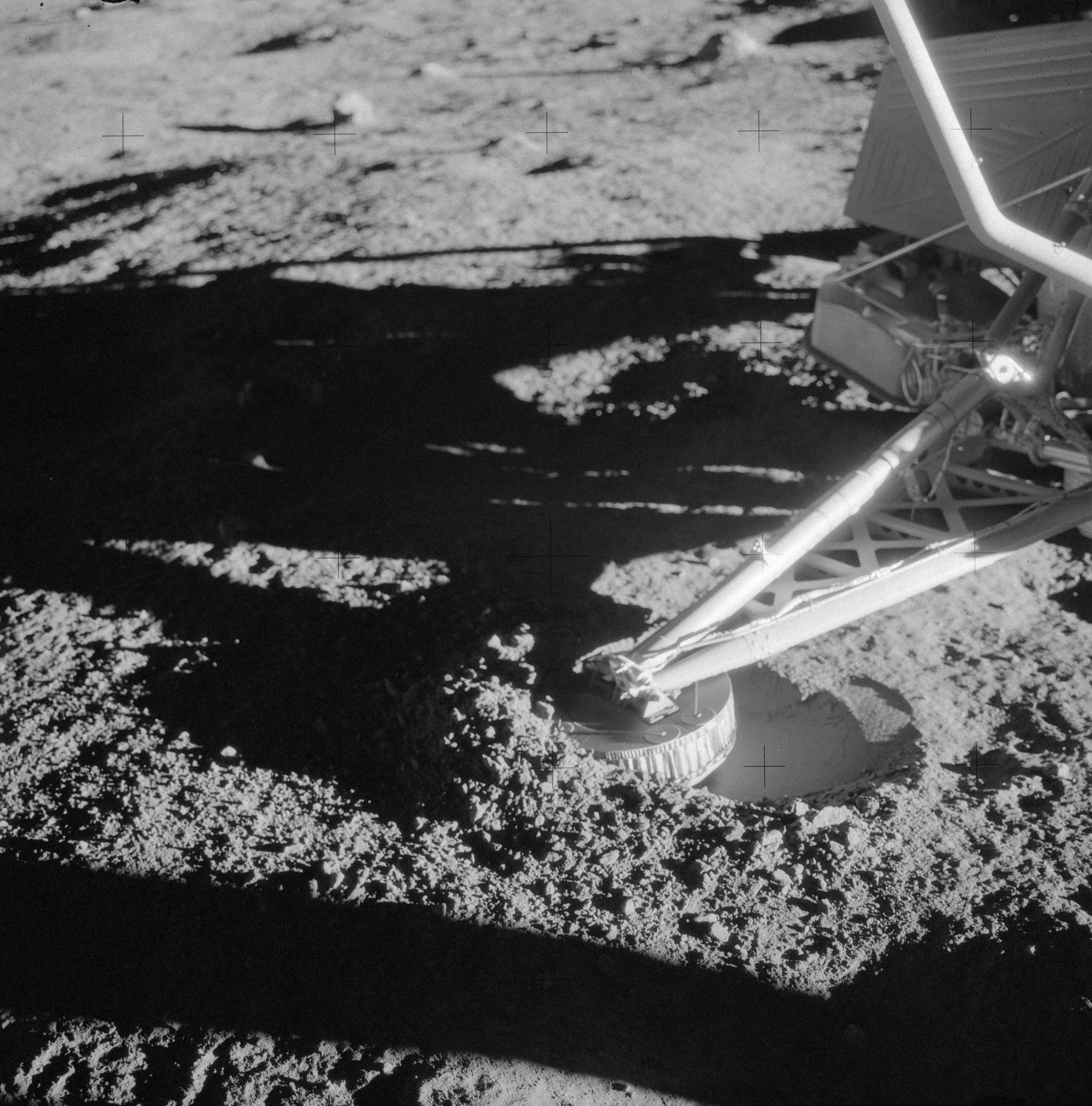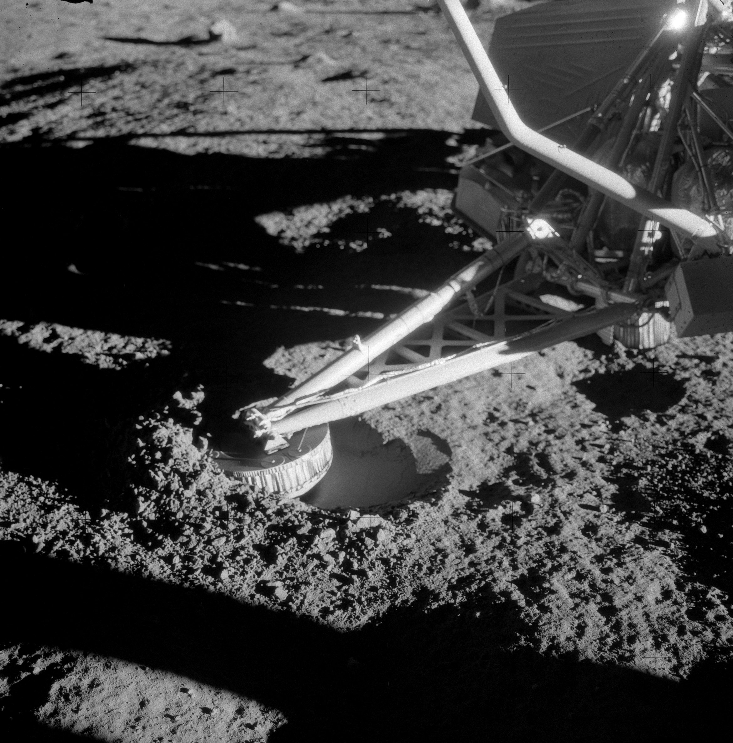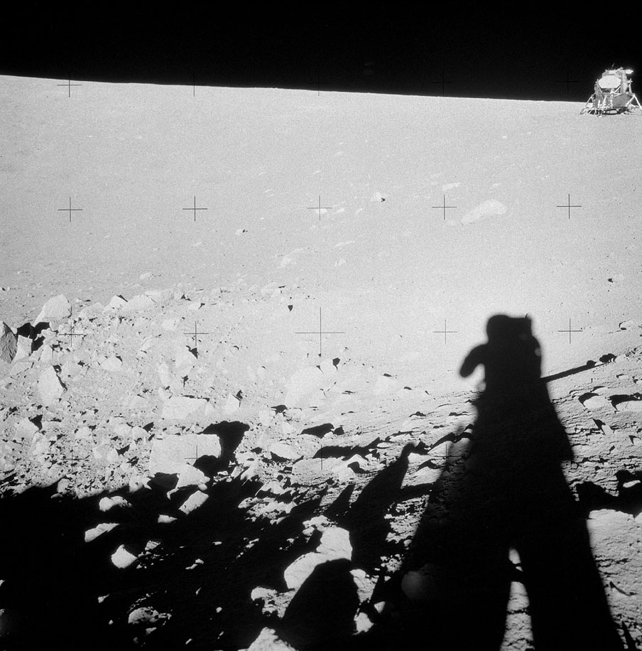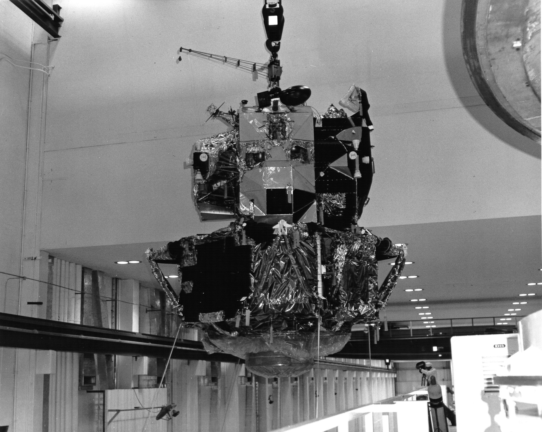 The Apollo 12 Lunar Module, in lunar landing configuration, is photographed in lunar orbit from the Command and Service Modules. Herschel Crater is just to the right of the LM. 19 November 1969. See, also, a labeled version ( 3.4 Mb ) by René Cantin.AS12-51-7507 ( 122k or 635k )