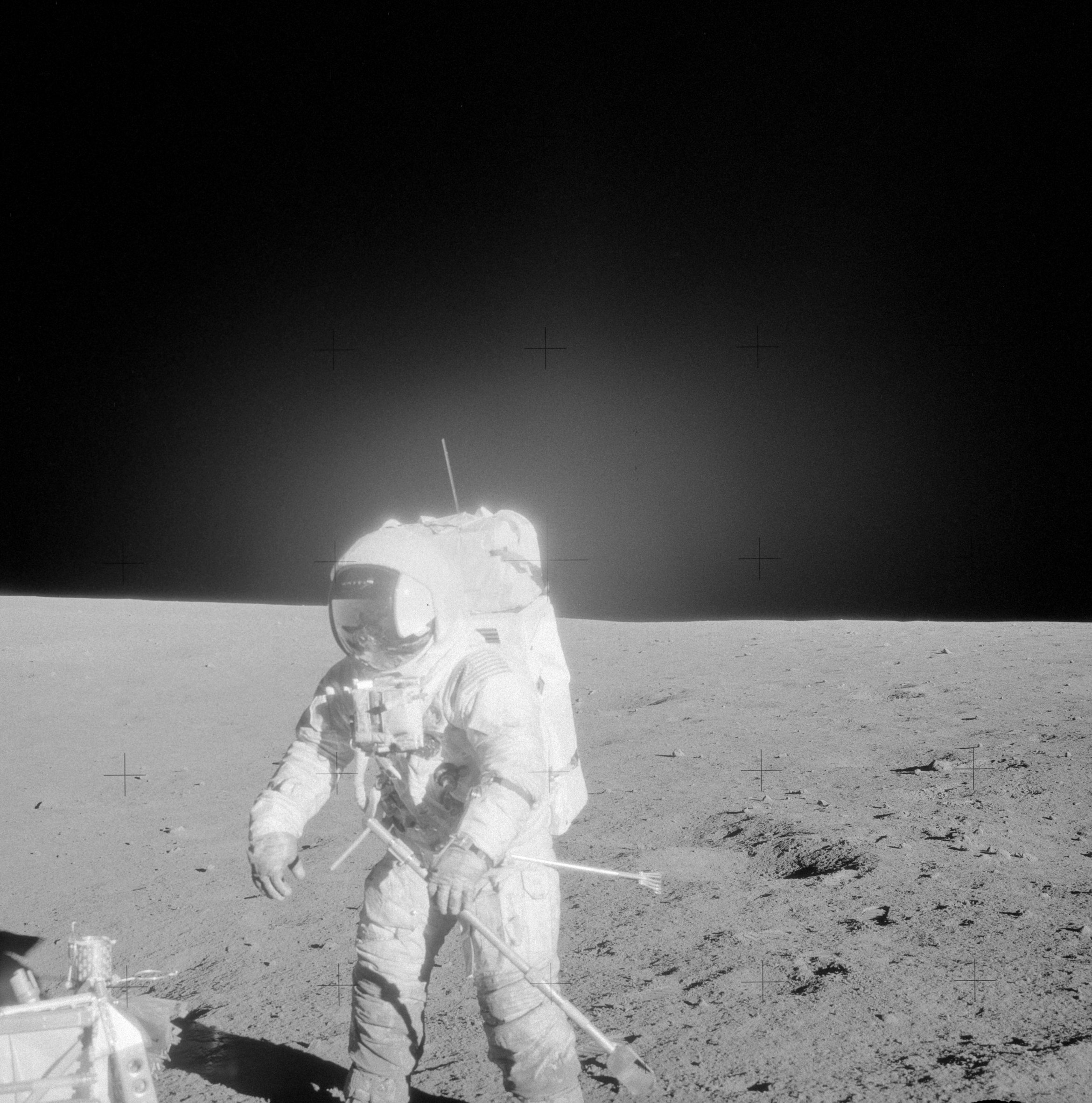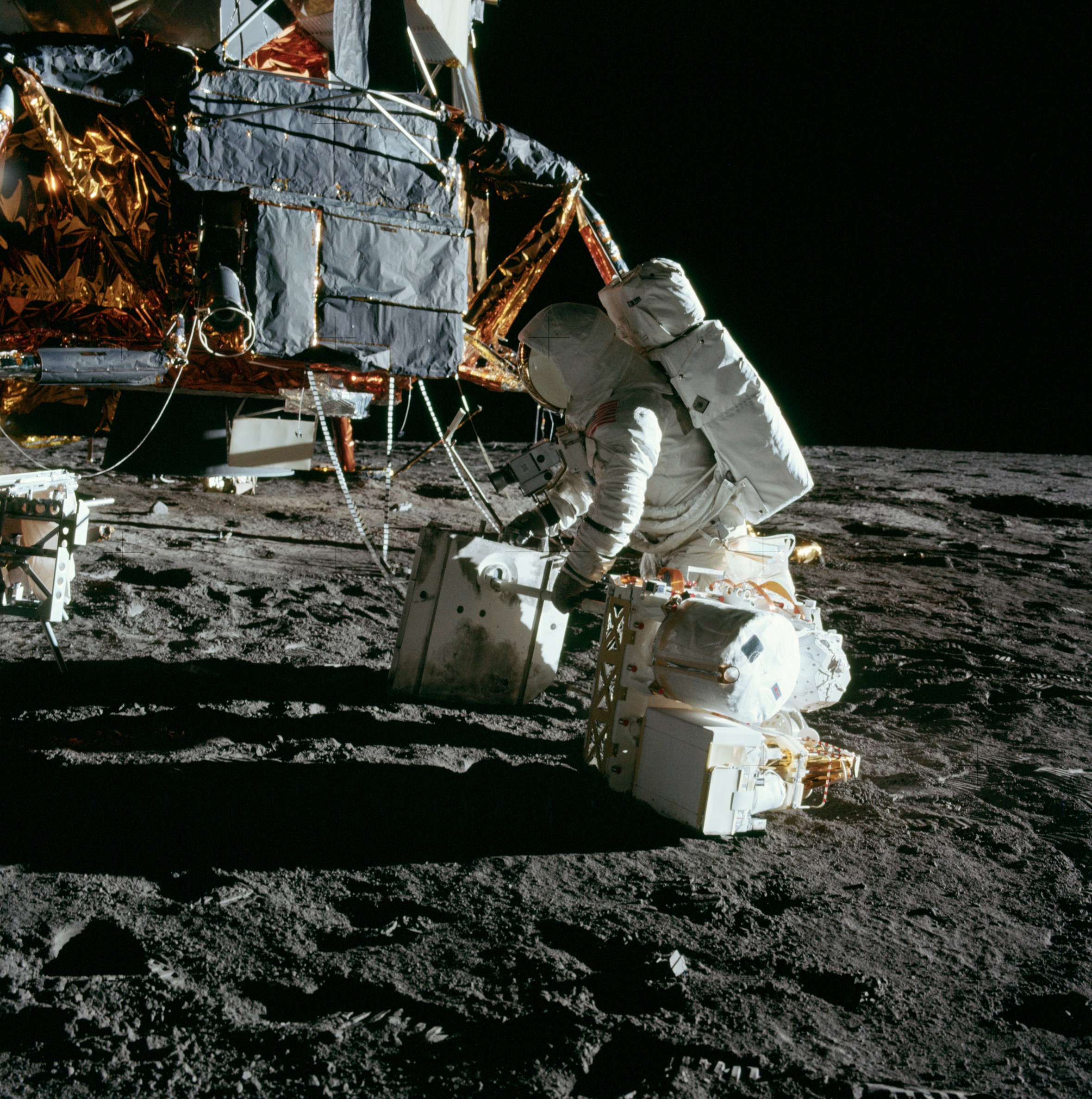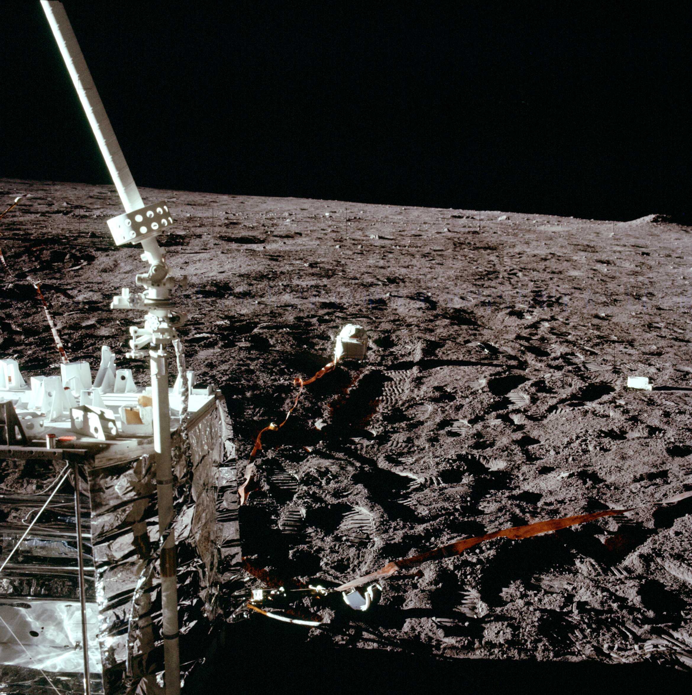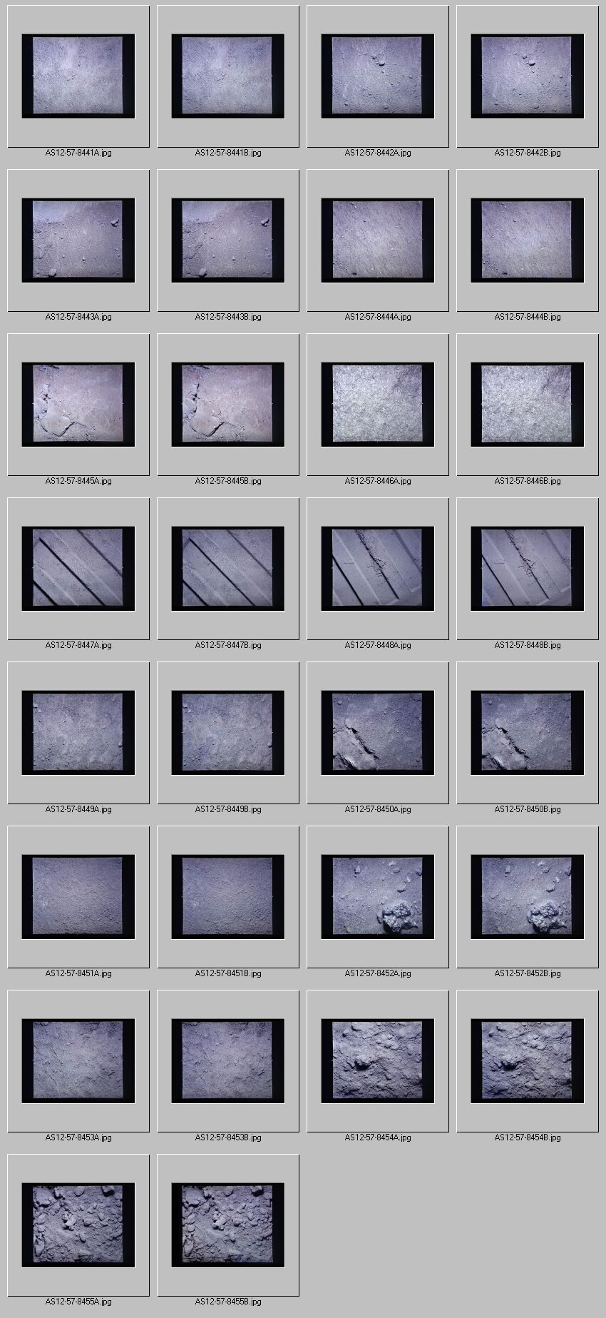 This Apollo 12 Image Library contains all of the pictures taken on the lunar surface by the astronauts together with pictures from pre-flight training and pictures of equipment and the flight hardware. High-resolution version of many of the lunar surface images are included. A source for both thumbnail and low -resolution versions of the lunar surface images is a website compiled by Paul Spudis and colleagues at the Lunar and Planetary Institute in Houston.