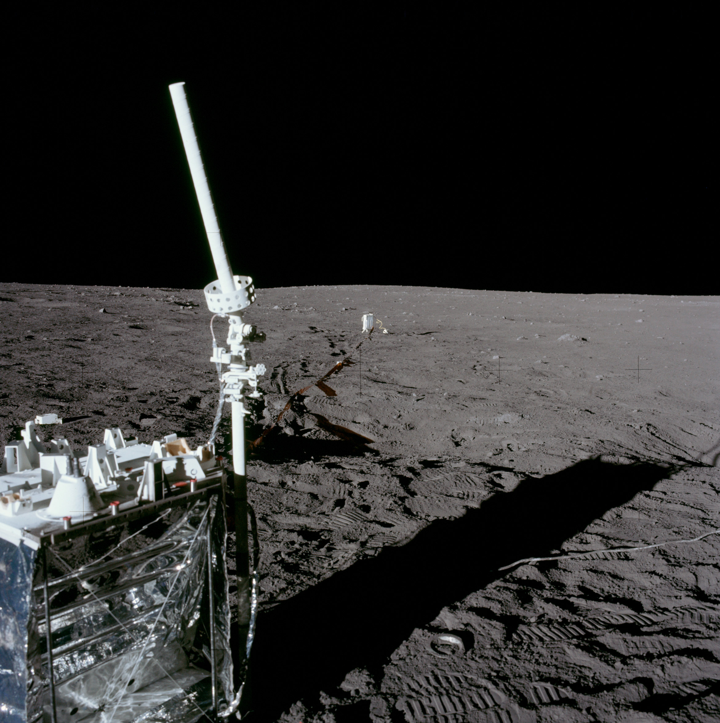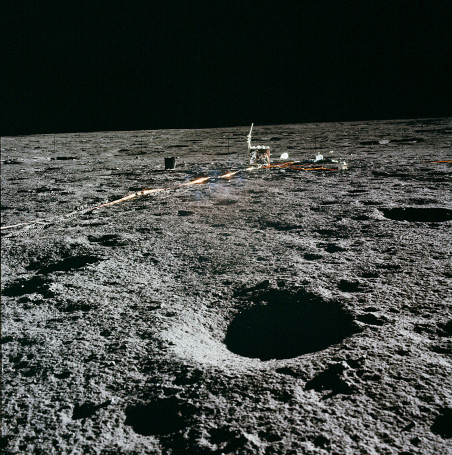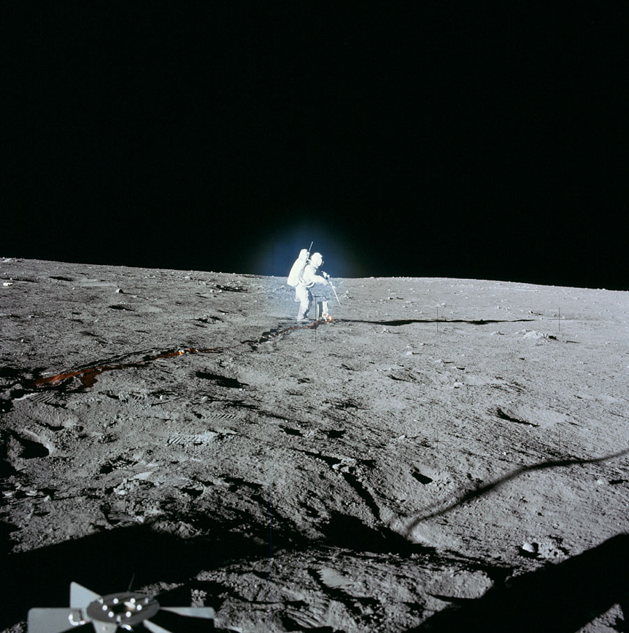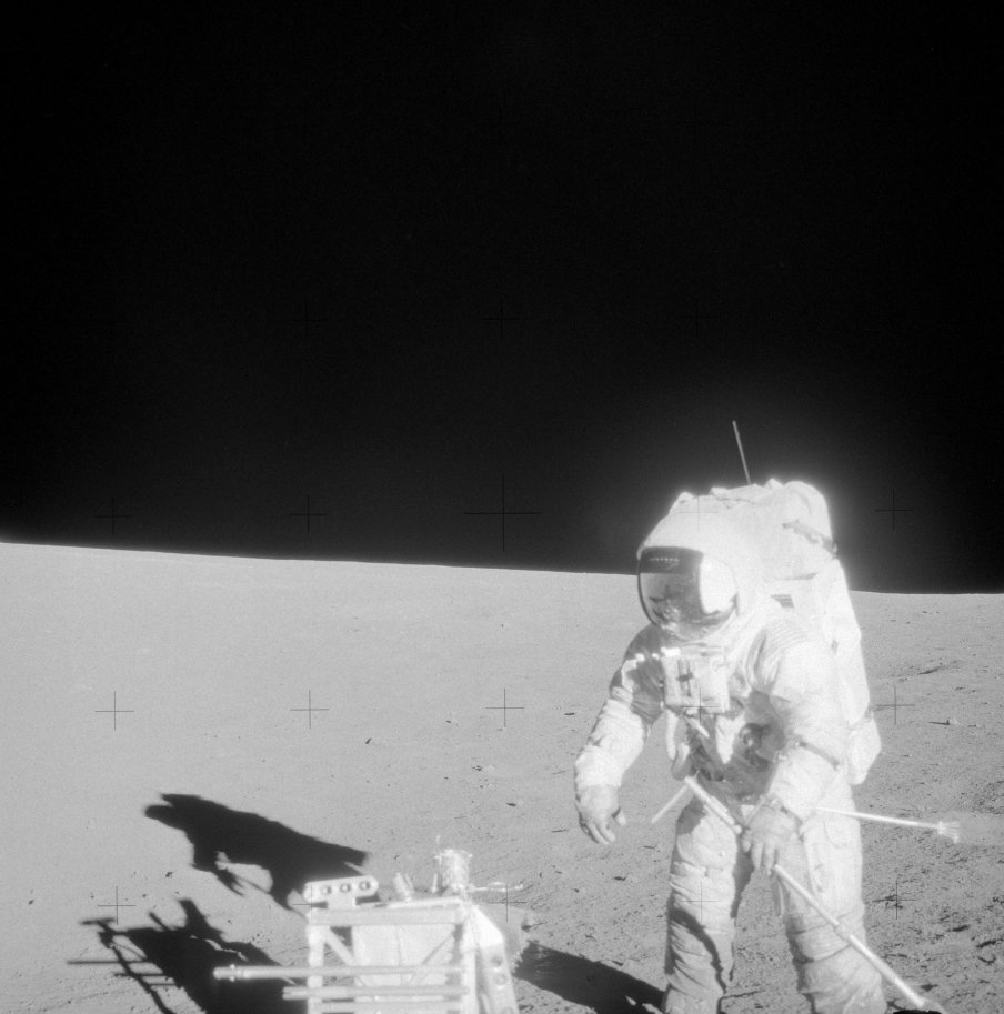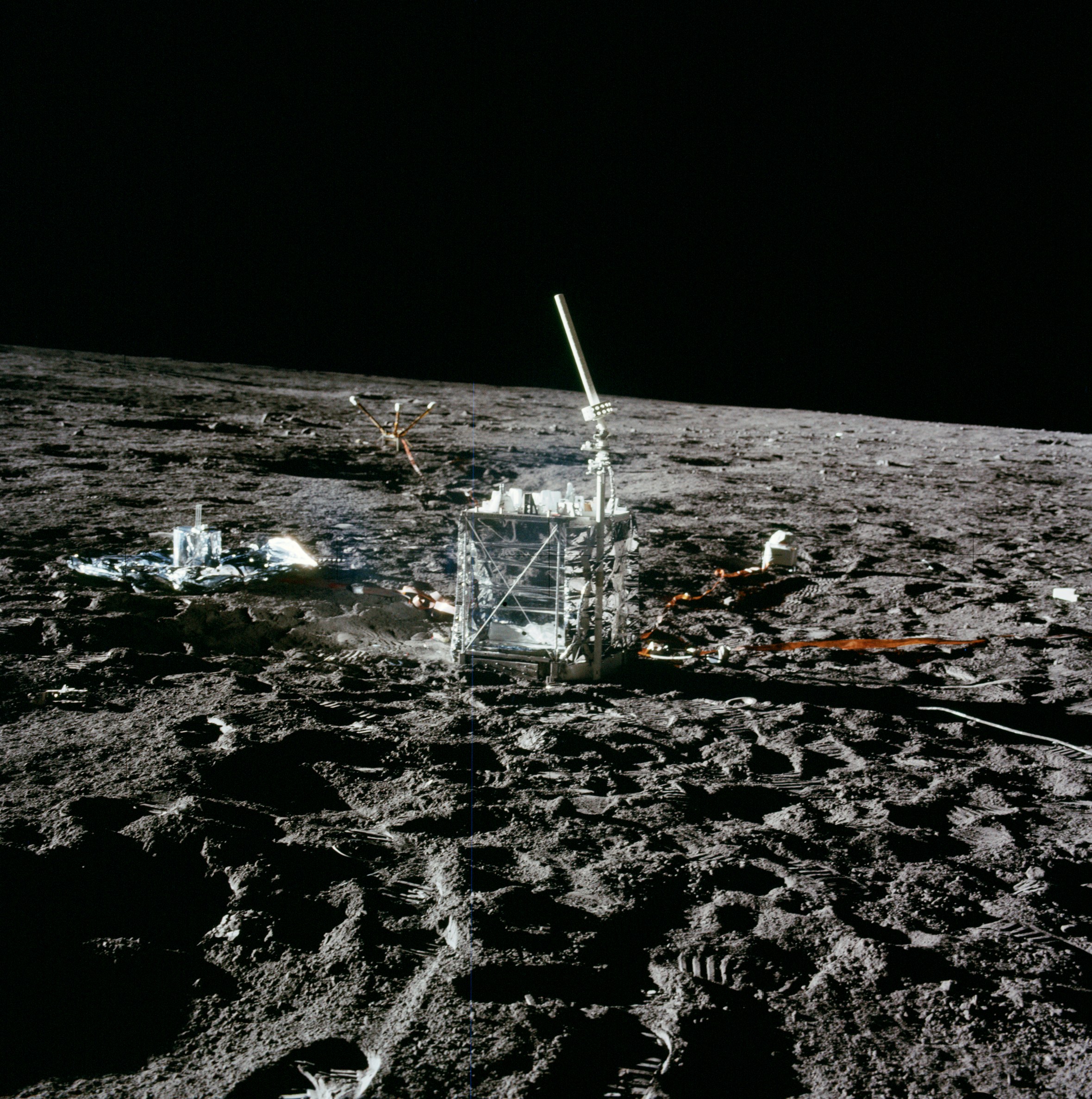 This Apollo 12 Image Library contains all of the pictures taken on the lunar surface by the astronauts together with pictures from pre-flight training and pictures of equipment and the flight hardware. High-resolution version of many of the lunar surface images are included. A source for both thumbnail and low -resolution versions of the lunar surface images is a website compiled by Paul Spudis and colleagues at the Lunar and Planetary Institute in Houston.