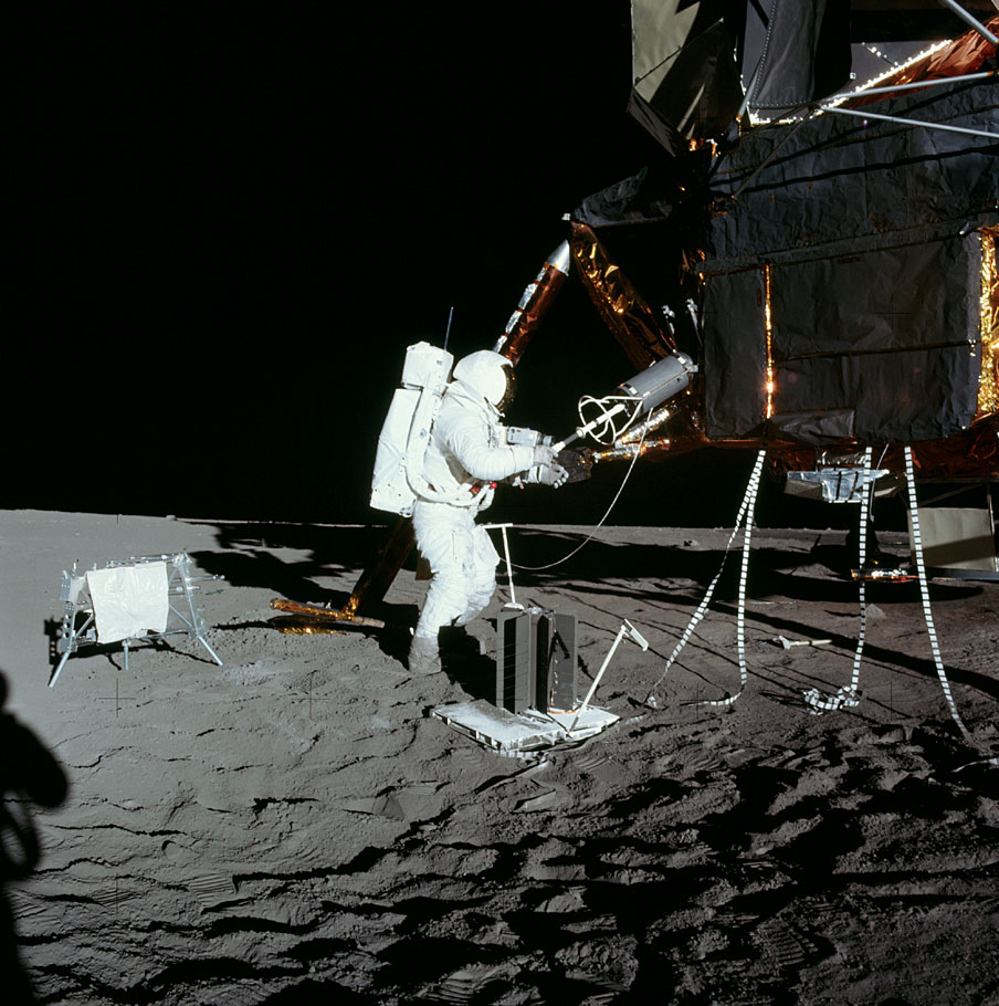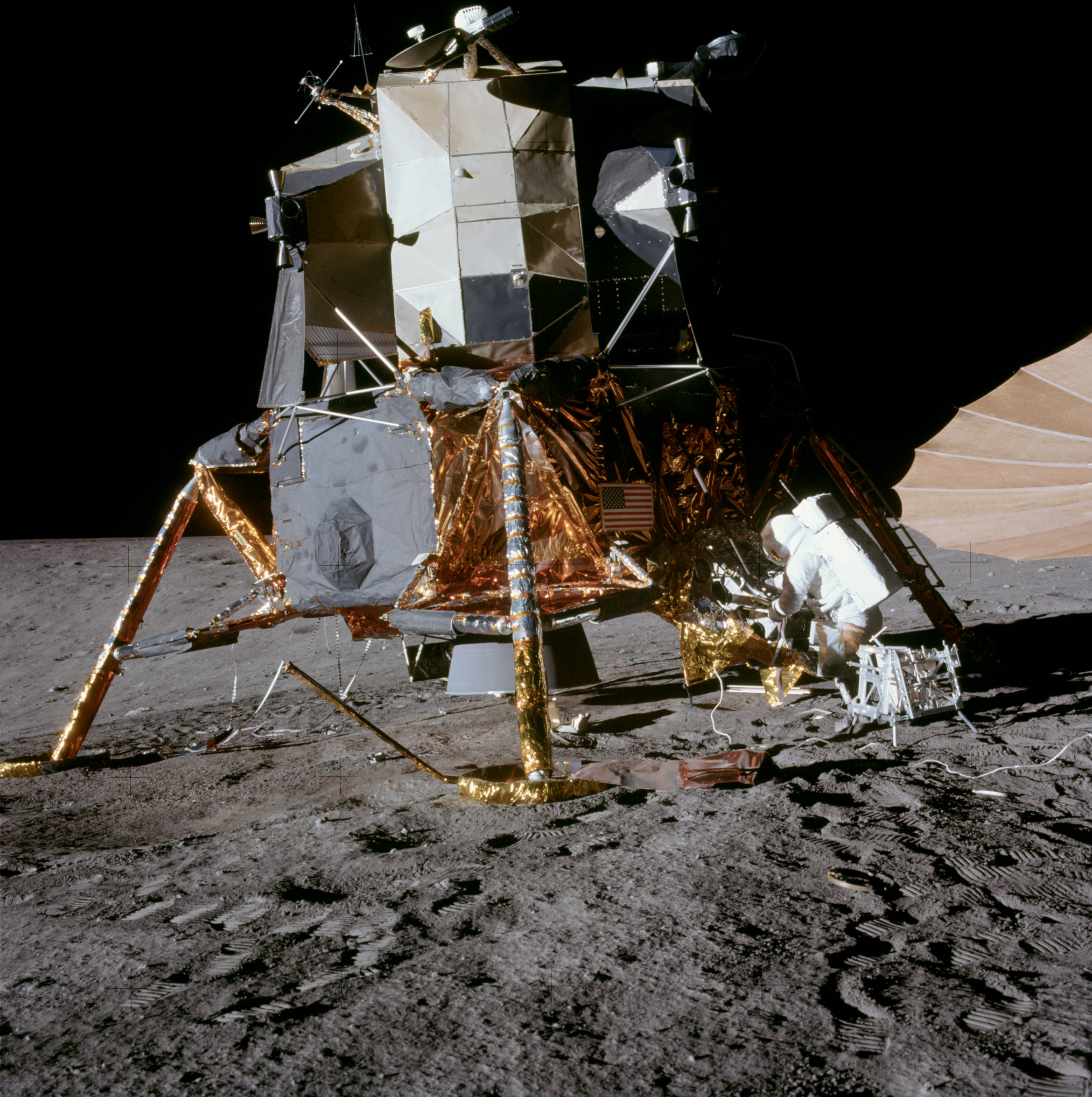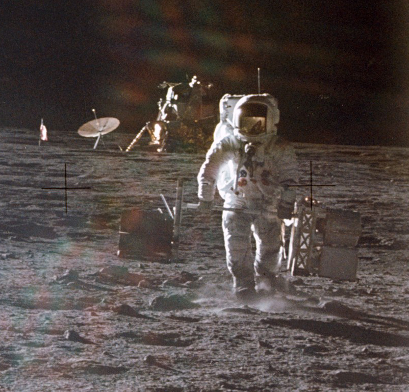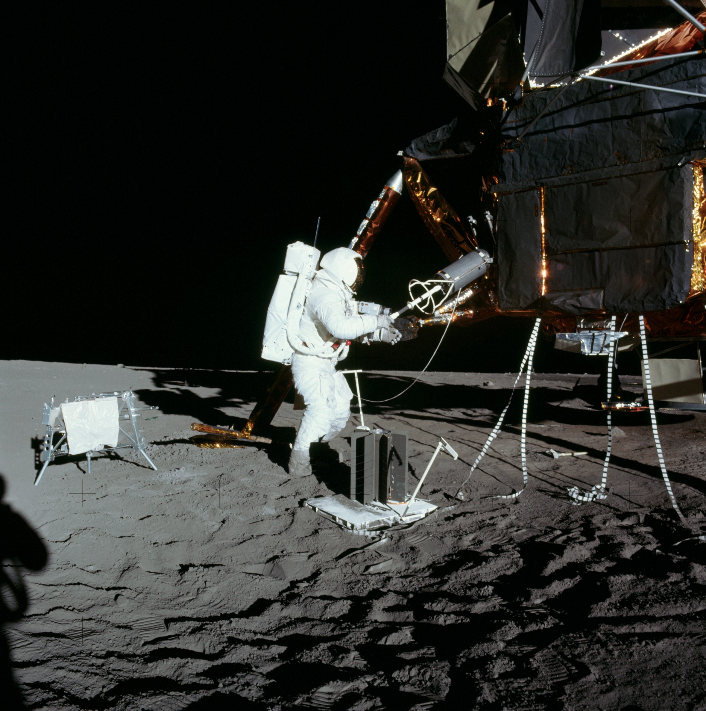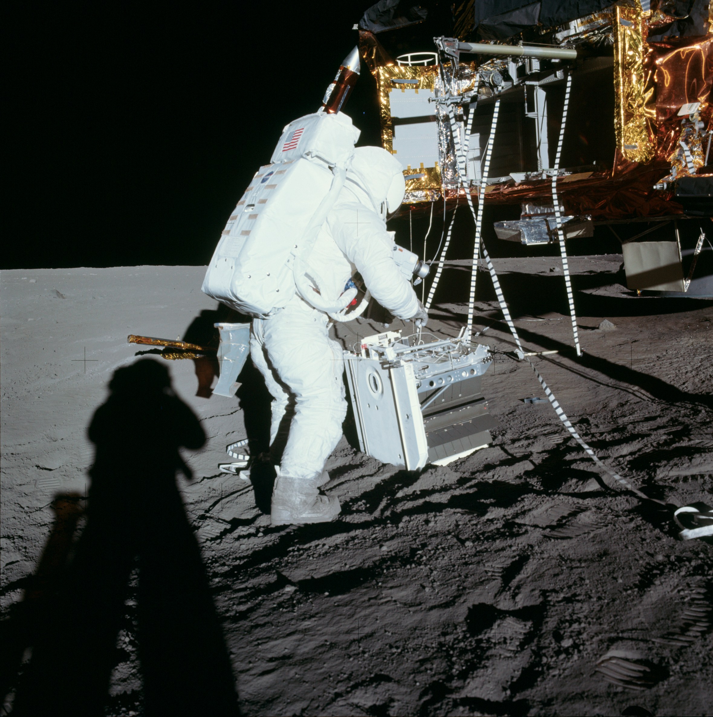 This Apollo 12 Image Library contains all of the pictures taken on the lunar surface by the astronauts together with pictures from pre-flight training and pictures of equipment and the flight hardware. High-resolution version of many of the lunar surface images are included. A source for both thumbnail and low -resolution versions of the lunar surface images is a website compiled by Paul Spudis and colleagues at the Lunar and Planetary Institute in Houston.