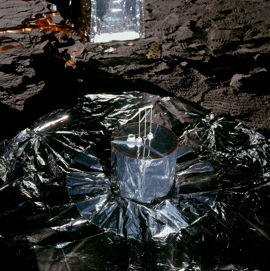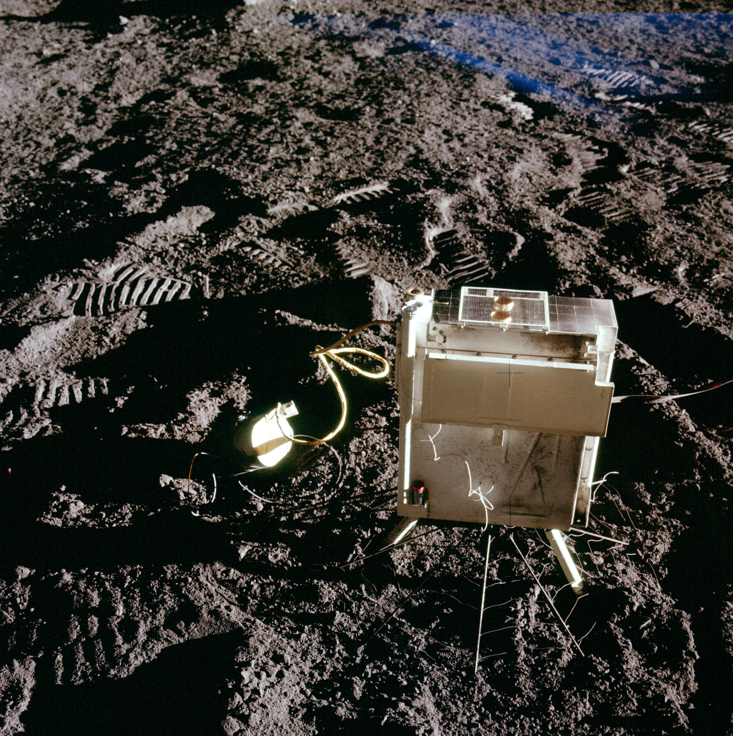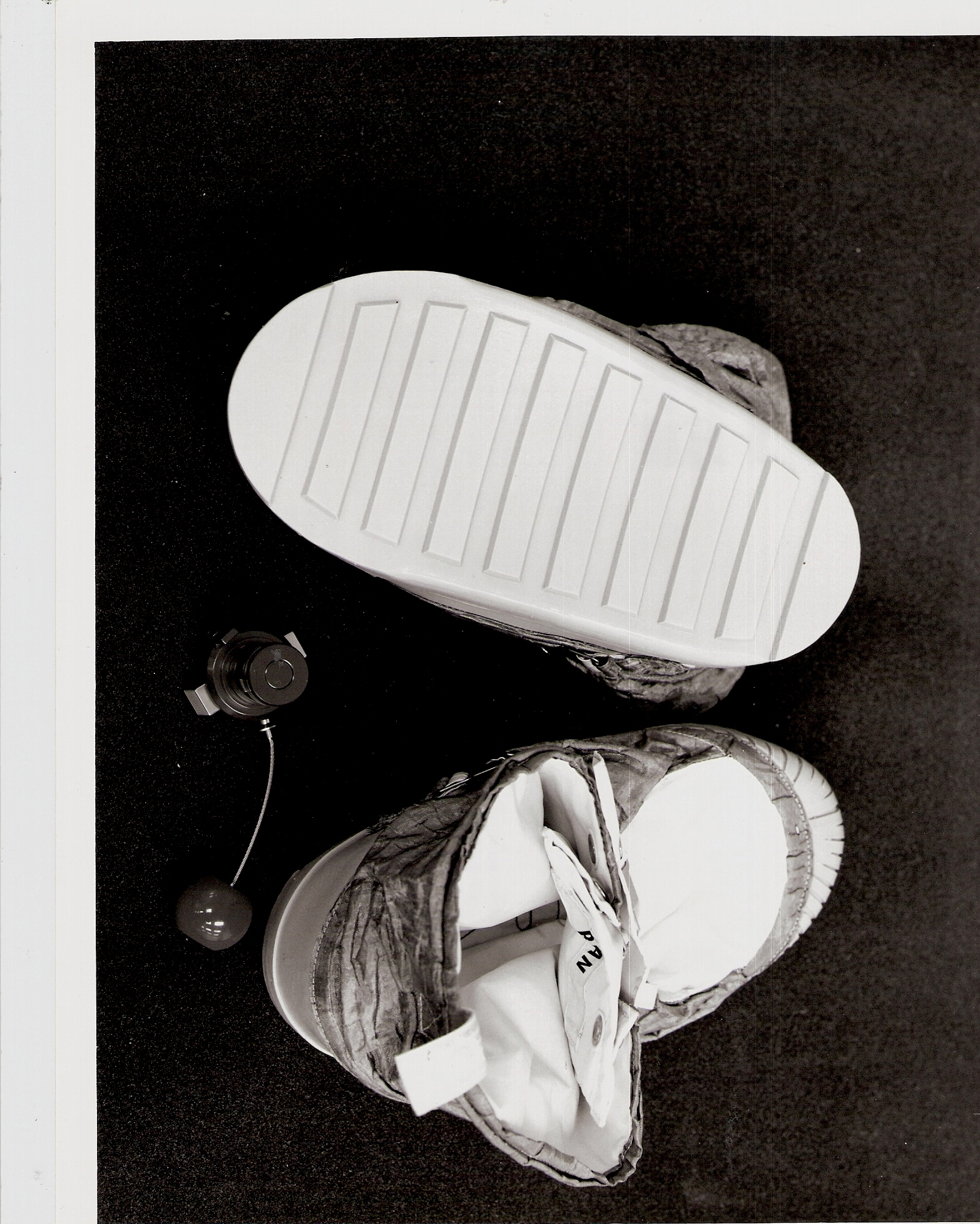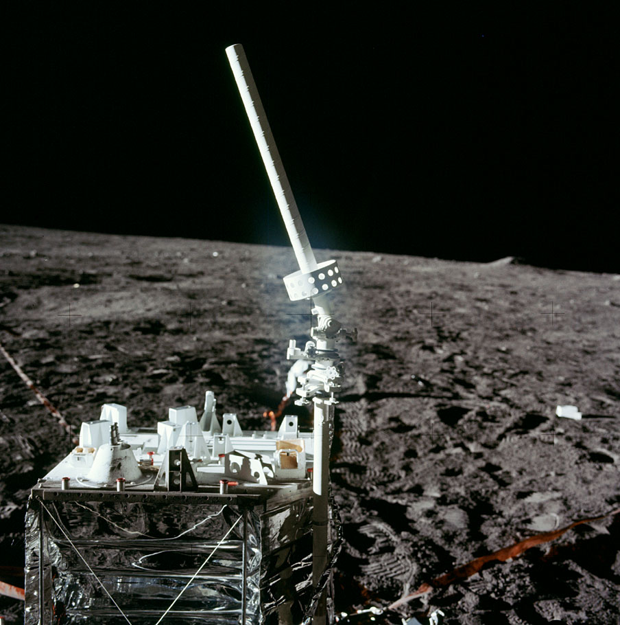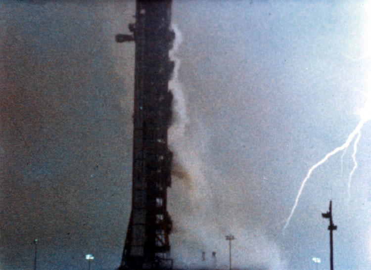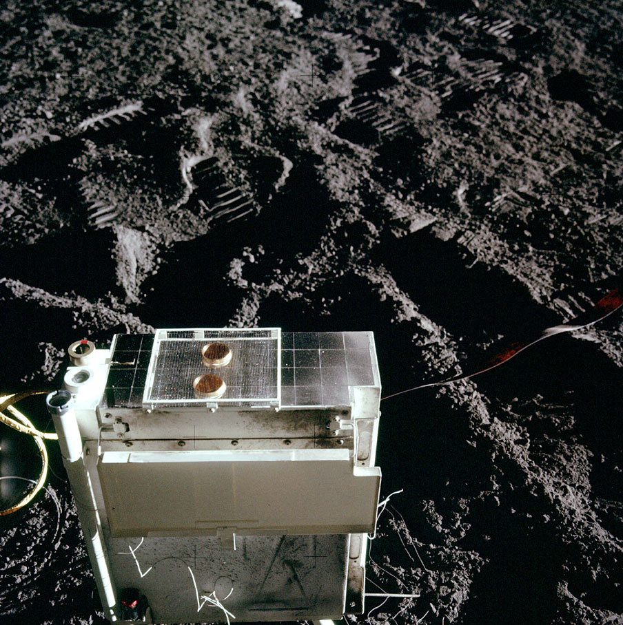Close-up view of a replica of the plaque which the Apollo 12 astronauts left on the Moon in commemoration of their flight. The plaque was attached to the ladder on a landing gear strut of the Descent Stage of the Apollo 12 Lunar Module, Intrepid.S69-54148 ( 48k )This photo shows Pete Conrad and Al Bean practicing sampling procedures in the Flight Crew Training Building at the Kennedy Space Center. The object in the foreground is a gnomon. The free-swinging vertical element provides a local vertical and a length scale. The flight gnomon had a color/gray-scale on one leg, which the crew oriented toward the Sun. The Hand Tool Carrier (HTC) is between the astronauts. Both Pete and Al are wearing a 70-mm Hasselblad camera mounted on their Remote Control Units (RCUs). On the Moon, one of them would take a "before" documentation photo from the east (up-Sun) and the other would take a "cross-Sun" stereopair from the north or south, stepping sideways between frames. Pete has a pair of long-handled tongs in his left hand and will use them to collect a rock.S69-55362 ( 46k )In this photo, Al is practicing driving a core tube into the lunar surface. The core tube is mounted on the bottom of a re-inforced Extension Handle so that Al can hit the top of the extension handle and drive the core tube all the way into the ground without having to bend over very far. Note that he is hitting the extension handle with the flat side of the hammer. The pressurized suit makes it difficult to deliver an accurate blow and, by using the flat of the hammer, he increases his chances of making contact. Each of the astronauts has two visors in his Lunar Extravehicular Visor Assembly (LEVA) that covers the bubble helmet. The inner visor reduces the light level reaching the astronaut's eyes while the outer visor, which is electroplated with gold, provides UV protection. We can see the edges of both of Pete's visors. Note, also, the cuff checklist on Pete's left wrist. There is a LM mock-up in the background. We are looking at the side of the spacecraft and, behind Al, we can see the open area from which the MESA (hidden from view) has been deployed.S69-55662 ( 74k )During a geology training exercise at Cinder Lake crater field near Sunset Crater, Arizona, Pete Conrad examines the stratigraphy in a crater dug by the USGS with an explosive charge in thick blanket of volcanic ash. 10 October 1969S69-56058 ( 28k )Astronaut Pete Conrad sits in the cockpit of a Lunar Landing Training Vehicle (LLTV) during a lunar simulation flight at Ellington Air Force Base. The LLTV is used to train Apollo crews in lunar landing techniques.S69-56059 ( 0.4 Mb or 1.5 Mb )Astronaut Al Bean participates in lunar surface simulation training in Bldg 29 at the Manned Spacecraft Center. He is strapped into a device called the POGO which supports 5/6th of his weight. The POGO assembly is suspended from a centrifuge arm so that Bean can run around the outer edge of the centrifuge chamber on a simulated lunar surface. The astronauts who used the facility in this way described it as a useful simulation. 24-25 October 1969. Scan courtesy Susan Erskine at NASA Johnson.AS12-51-7478 ( 33k )View of the lunar surface from low orbit.S69-59547 ( 28k )The seismometer reading from the impact made by the LM Ascent Stage when it struck the lunar surface. The impact was registered by the Passive Seismic Experiment Package (PSEP) which was deployed on the Moon by the Apollo 12 astronauts. The LM's Ascent Stage was jettisoned and sent toward impact on the Moon after astronauts Pete Conrad and Al Bean returned to lunar orbit and rejoined astronaut Dick Gordon, in the Command/Service Modules.AS12-57-8448 ( 76k or 216k )Apollo 12 stereo view showing a boot imprint. The exposure was made with an Apollo 35mm stereo close-up camera during extravehicular activity of the Apollo 12 lunar landing mission. The camera was developed to get the highest possible resolution of a small area. Scan by Kipp Teague. Ulli Lotzmann has produced red(left)-blue(right) and green(left)-red(right) stereo-images.AS12-57-8452 ( 34k )Apollo 12 stereo views showing a three-inch square of the lunar surface. Ulli Lotzmann has produced red(left)-blue(right) and green(left)-red(right) stereo-images.AS12-57-8455 ( 38k )Apollo 12 stereo views showing a three-inch square of the lunar surface. Ulli Lotzmann has produced red(left)-blue(right) and green(left)-red(right) stereo-images.Apollo 12 Rock box ( 84k )One of the Apollo 12 Sample Return Containers, probably 1008, is on display at the Smithsonian's National Air and space Museum in Washington D.C. Photo by Ulrich Lotzmann.