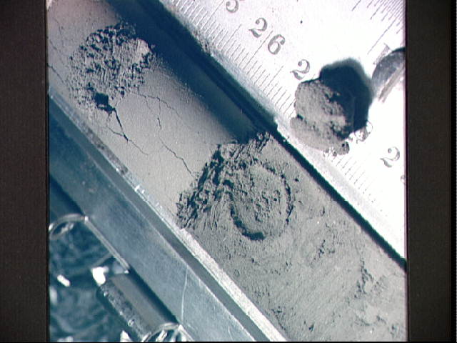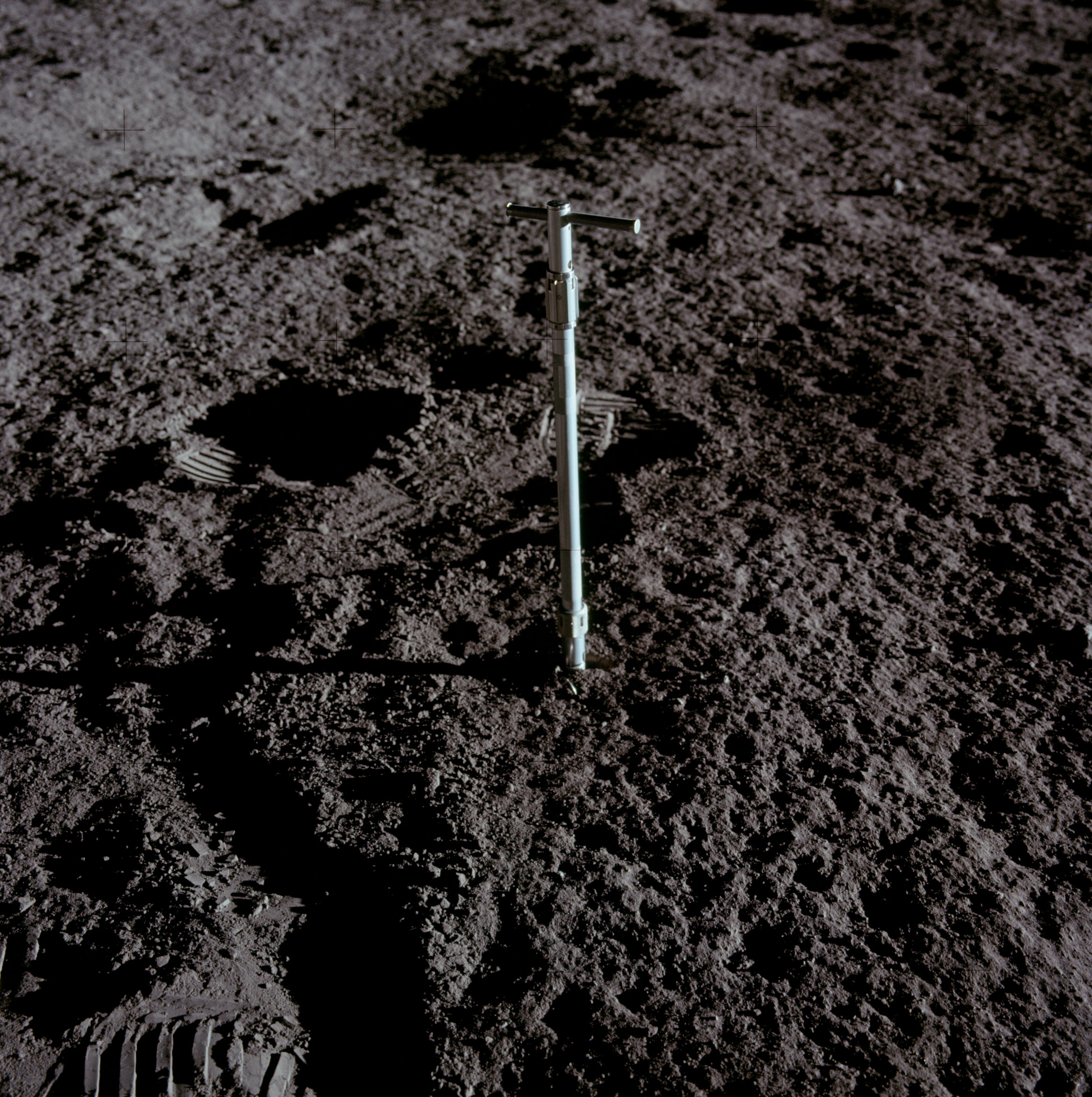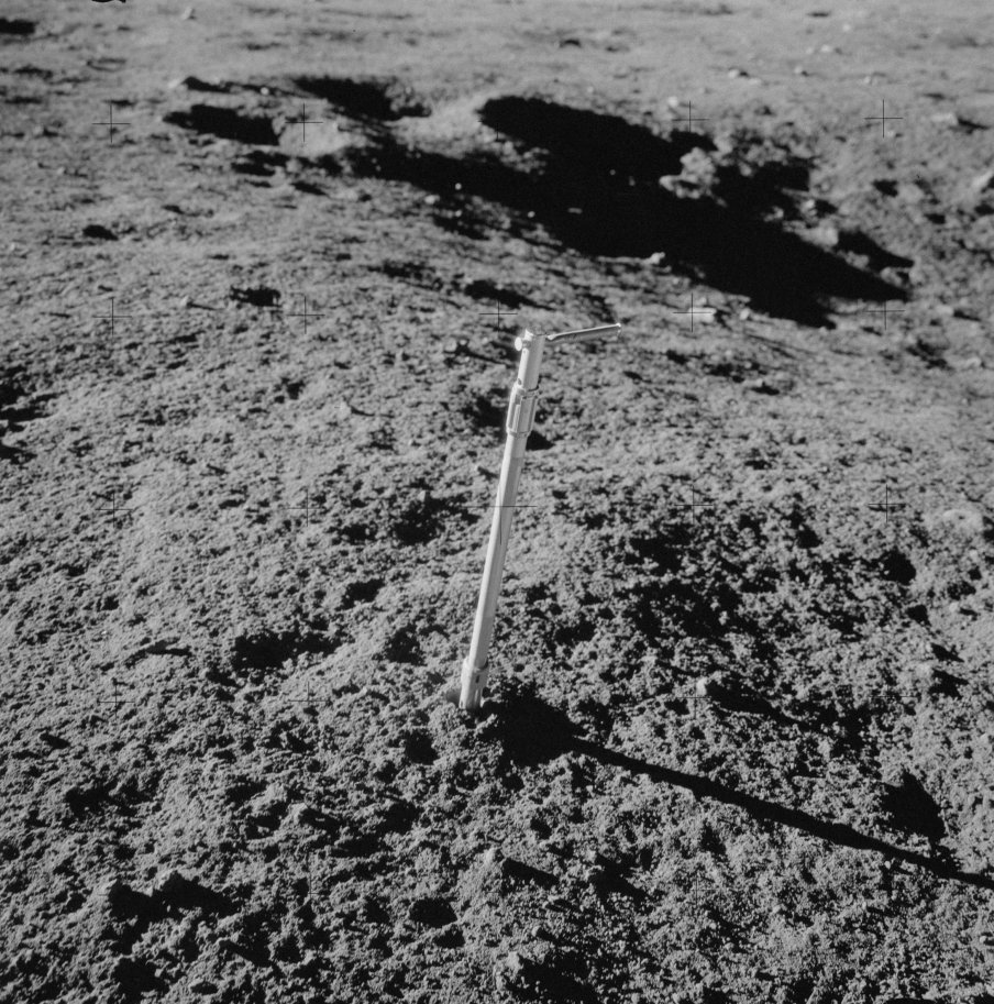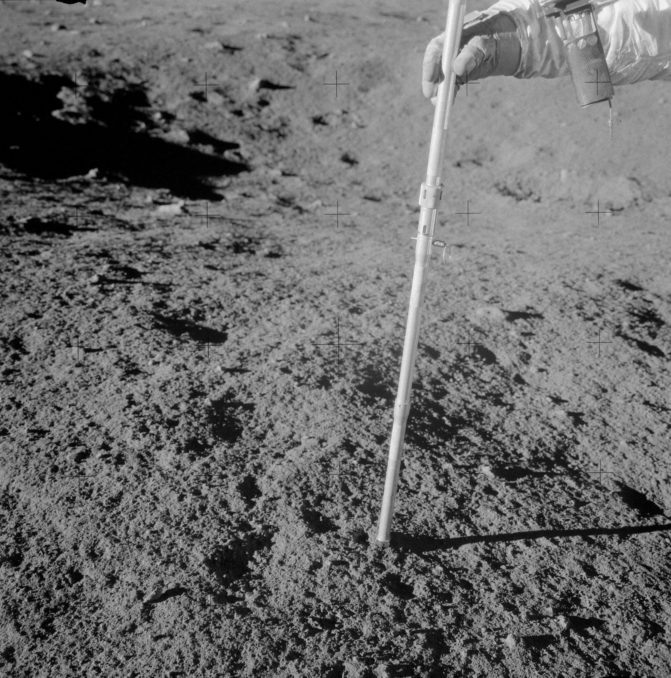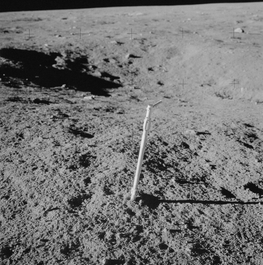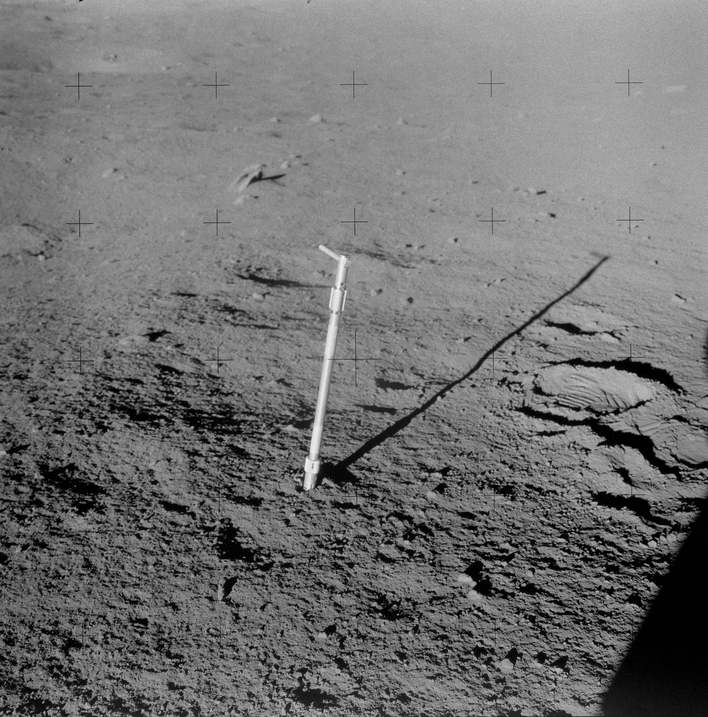A close-up view of Apollo 12 lunar sample no. 12025, called Core Sample 1, collected on the lunar surface, about 225 meters below the point where the Apollo 12 LM touched down. This core sample and others collected on the Apollo 12 mission differ from those collected by the Apollo 11 crewmen in the Sea of Tranquility in that the Apollo 12 core samples have easily recognizable stratigraphy and two coherent crust-like layers. This sample has dominantly fine-grained texture.Sample 12052, S70-44633 ( 44k)
