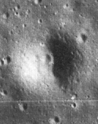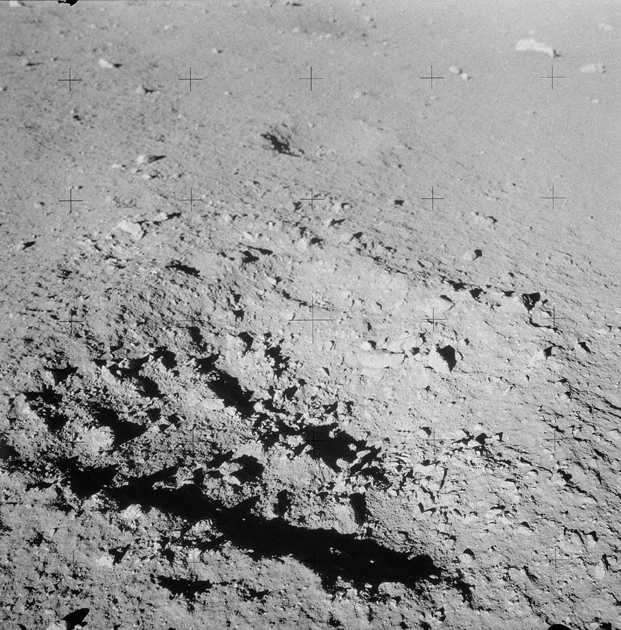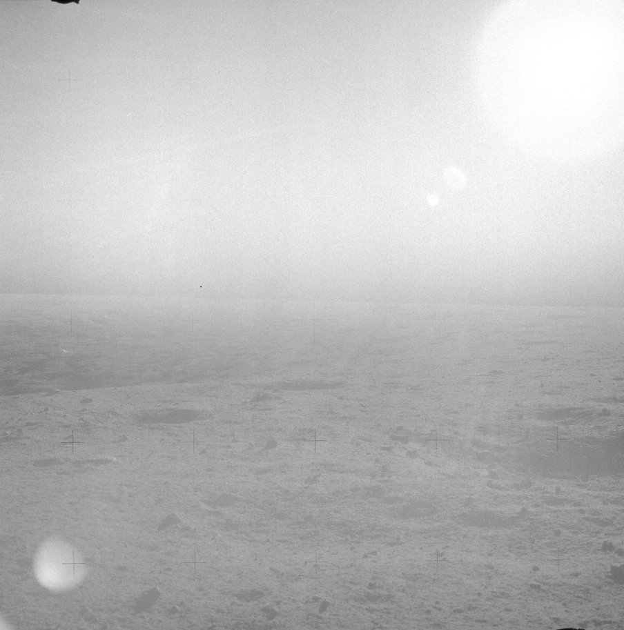 Long. 3 S; Lat. 18 W. Fra Mauro landing site viewed from lunar orbit. Scan courtesy Jody Russell, NASA Johnson.