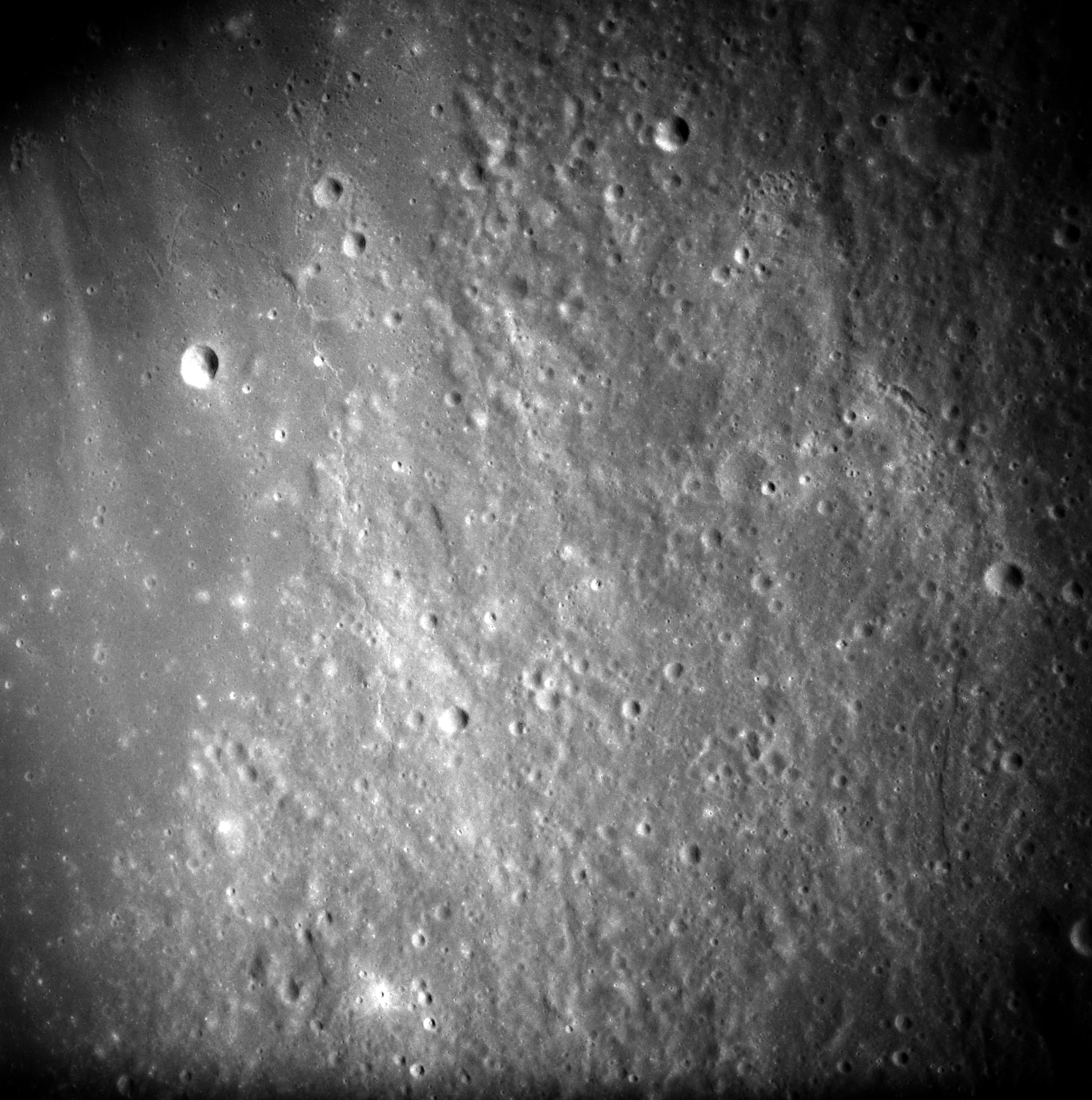 The raw image is M124728623L. Deconvolved 0.5 m/pixel (10 Mb TIF); deconvolved 0.5 m/pixel (2.8 Mb TIF) and deconvolved/gamma-corrected 0.5 m (3.3 Mb TIF) versions by GoneToPlaid.22 June 2010 00:40:00 UTC; Solar El/Az 8.0/89.2; LRO altitude 42.5 km; resolution 0.43 m/pixel (width) and 0.55 m/pixel (height)