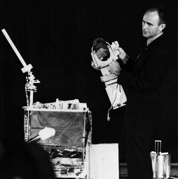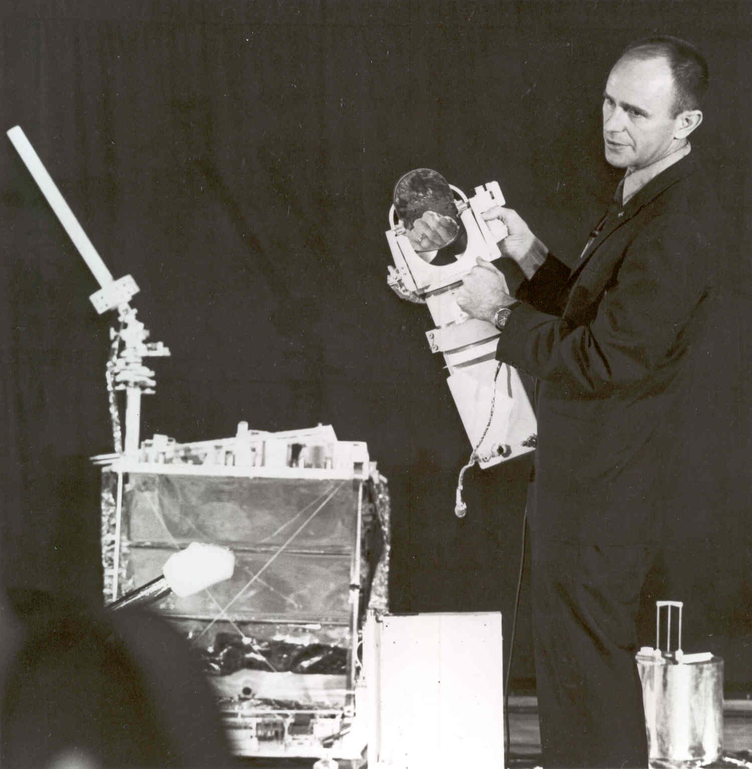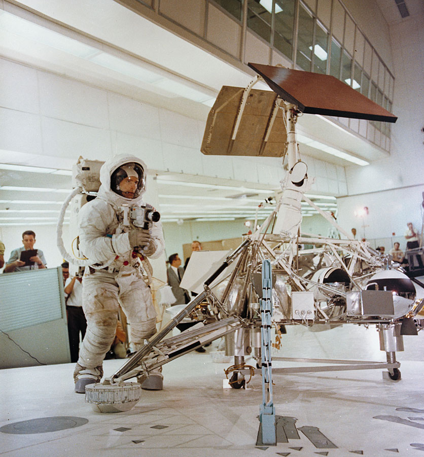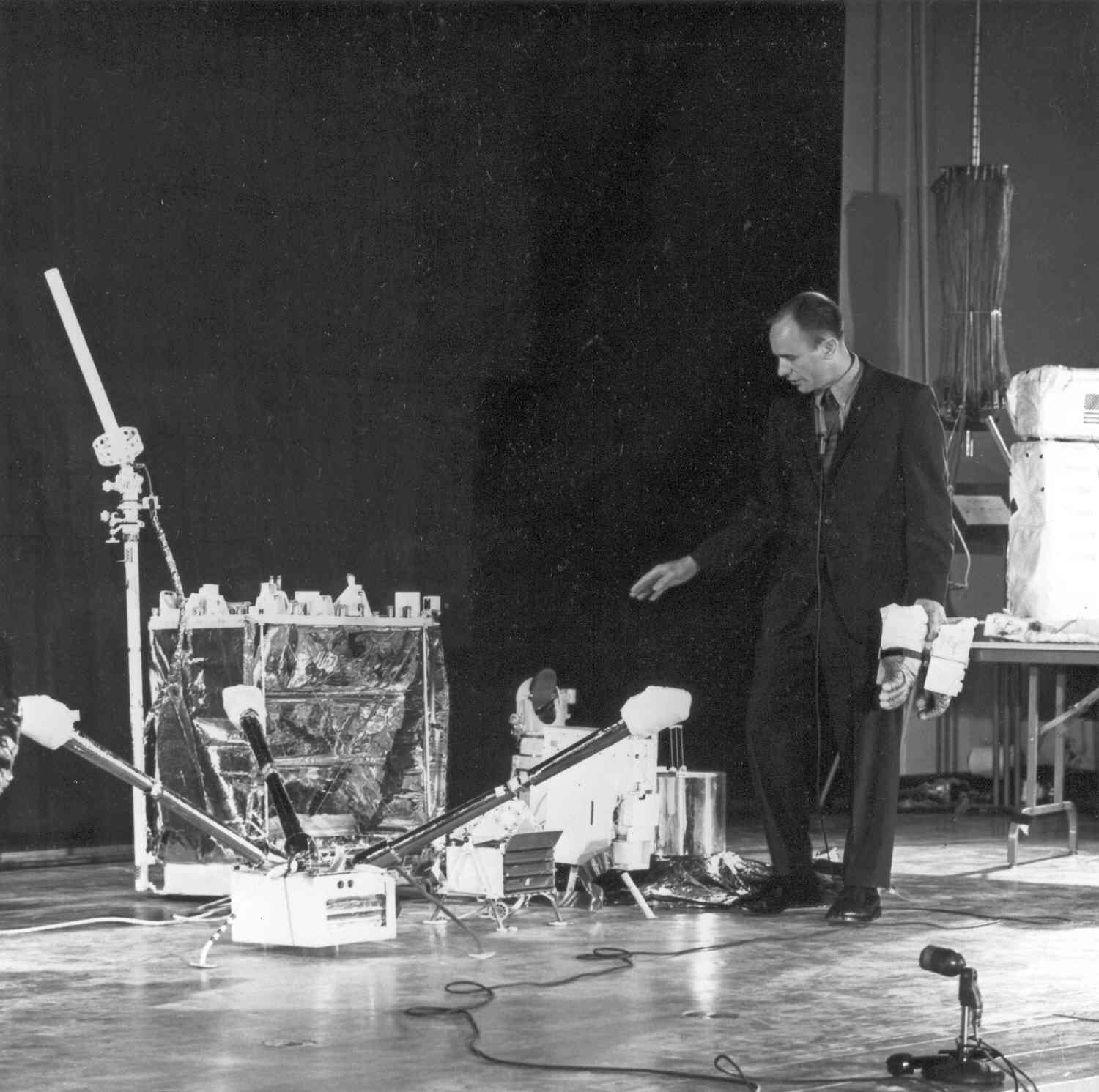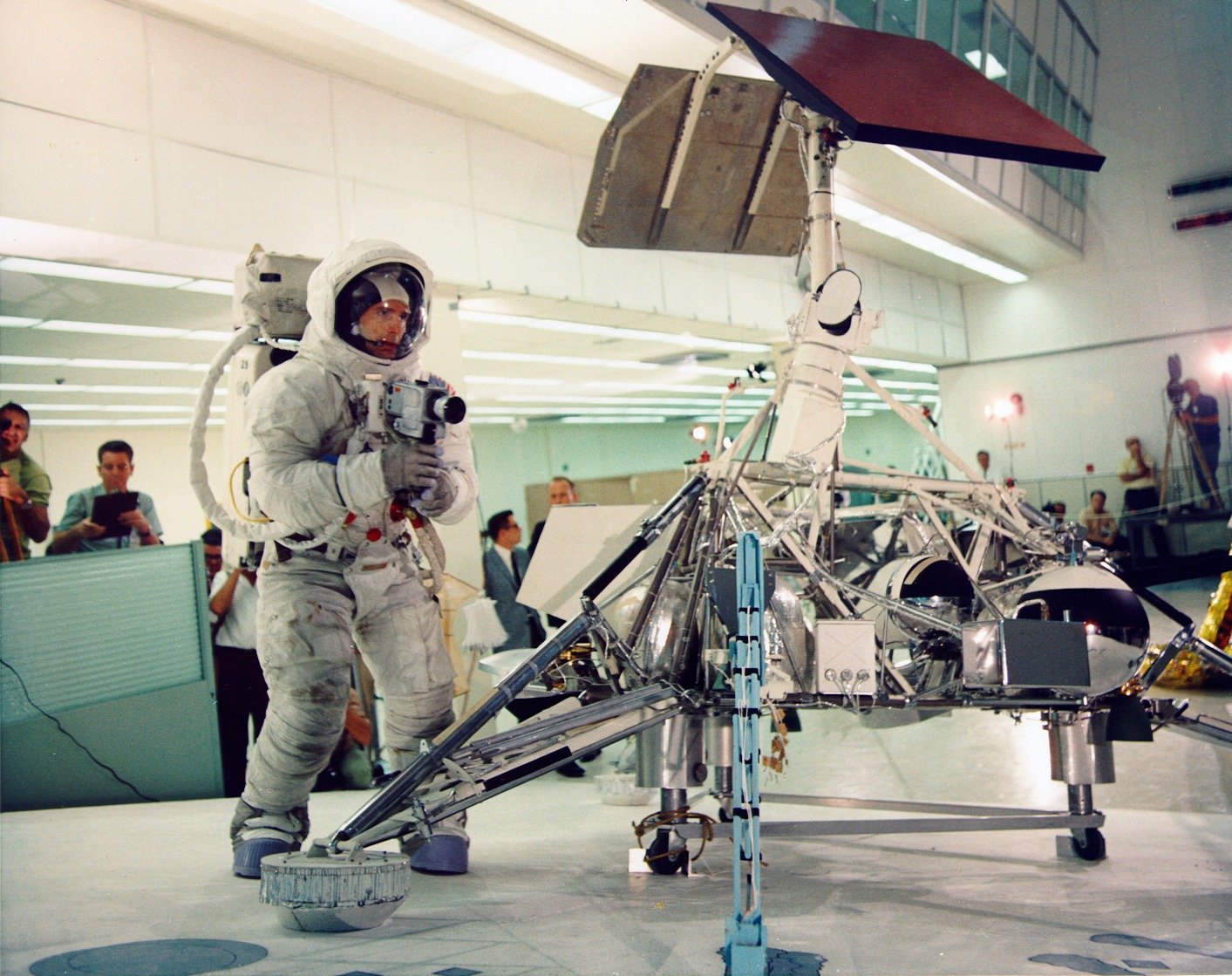 Inspection of the Surveryor 3 camera at Hughes Aircraft Company. April 1970. Scan by J.L. Pickering."Dixie Cup" Sample bags and dispenser ( 451k )