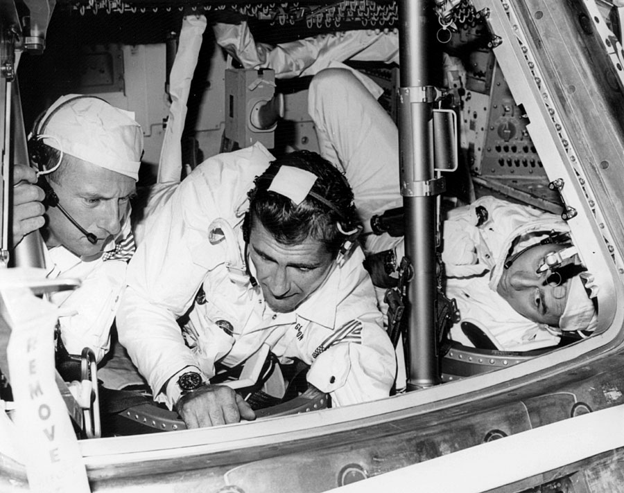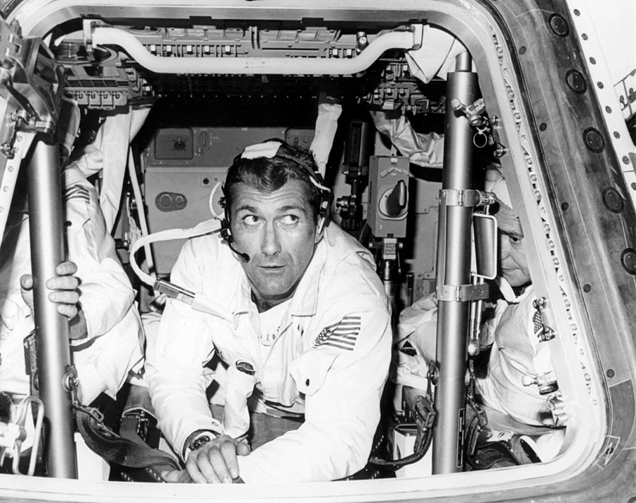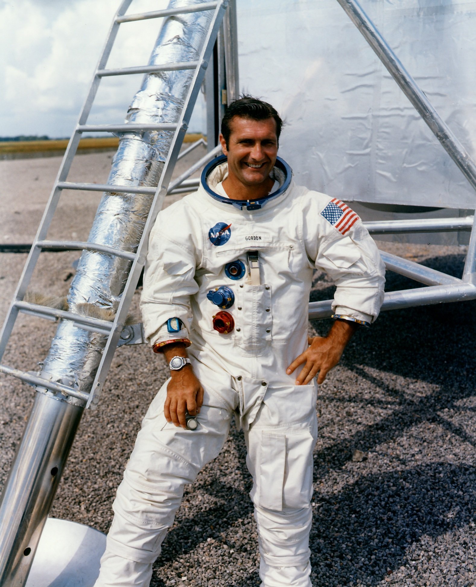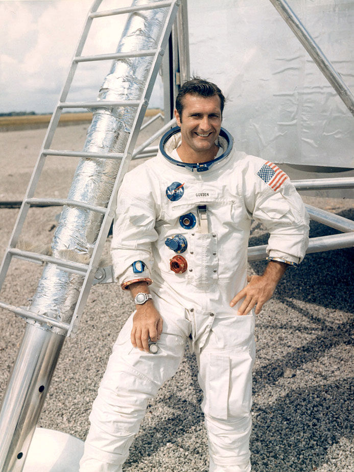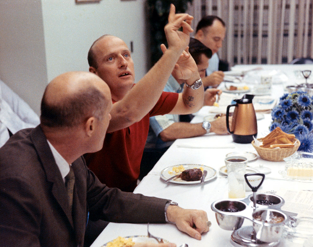 Dick Gordon during a debriefing in the quarantine van aboard the Hornet. 26 November 1969. Scan by Ed Hengeveld.69-H-1764 ( 127k or 1073k )