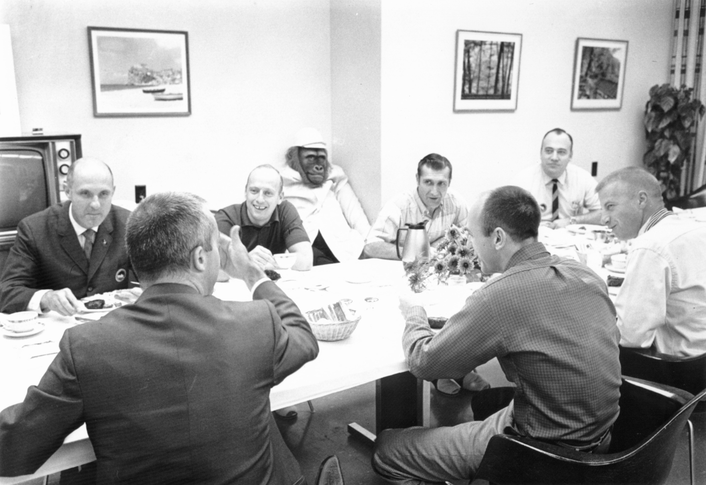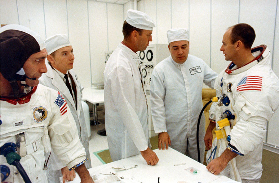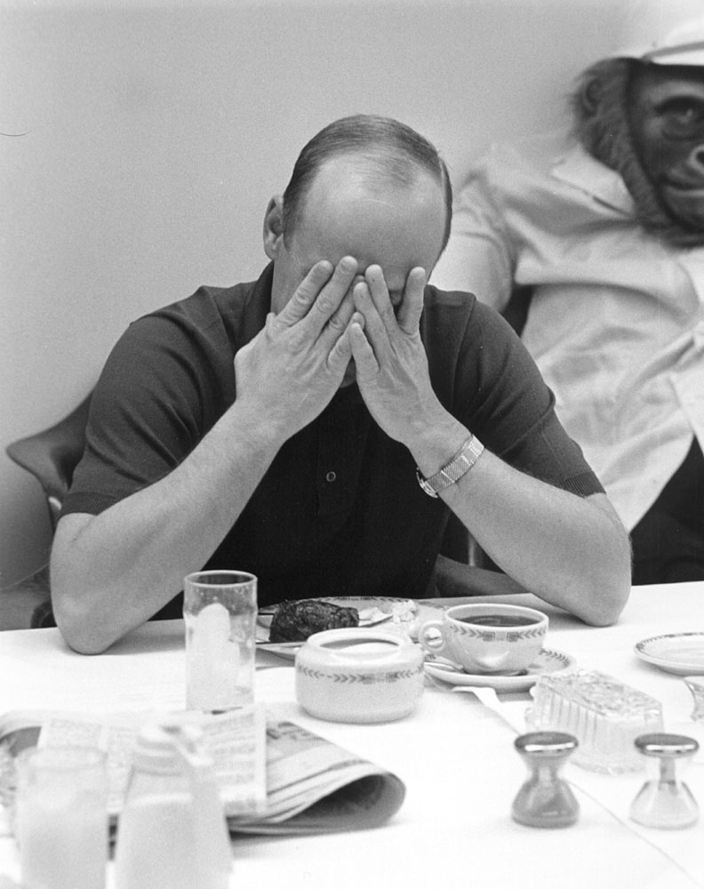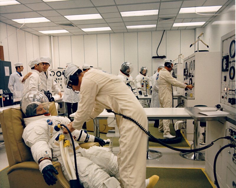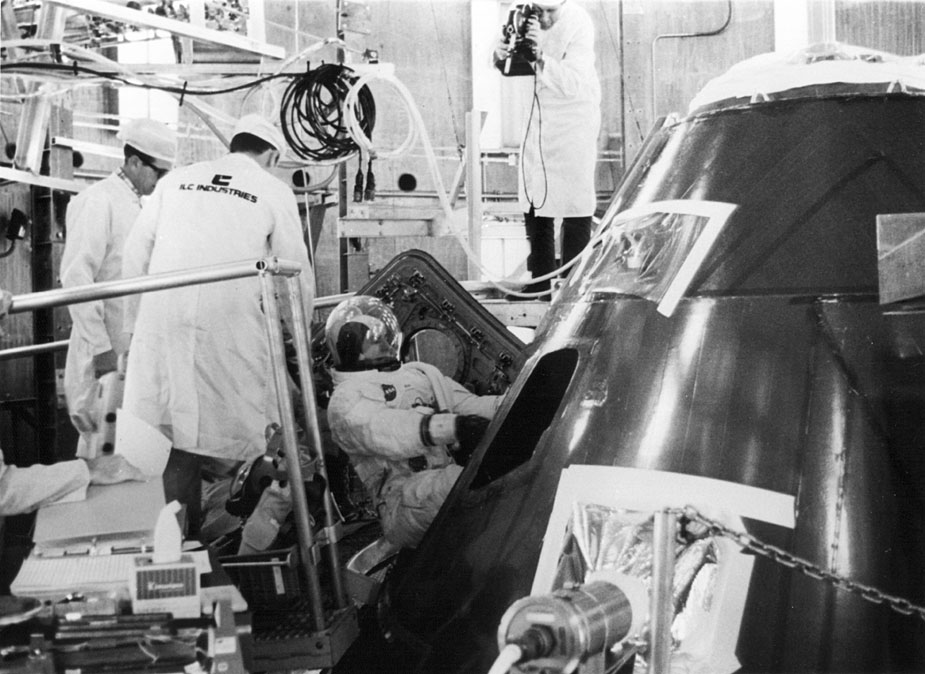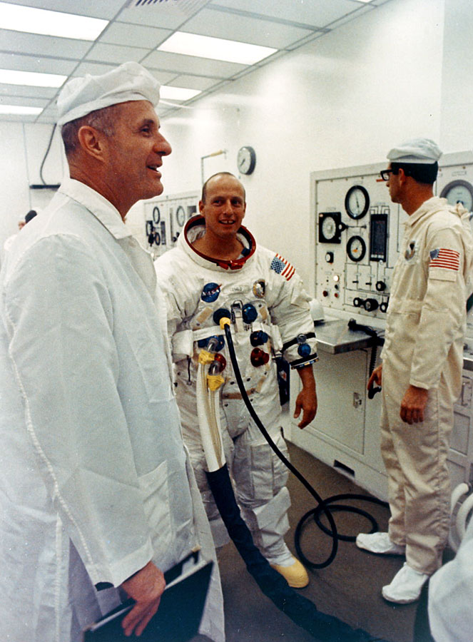 Dick Gordon during a debriefing in the quarantine van aboard the Hornet. 26 November 1969. Scan by Ed Hengeveld.69-H-1764 ( 127k or 1073k )