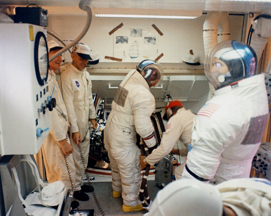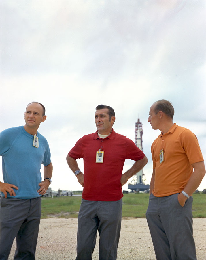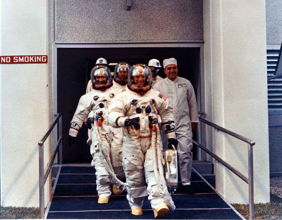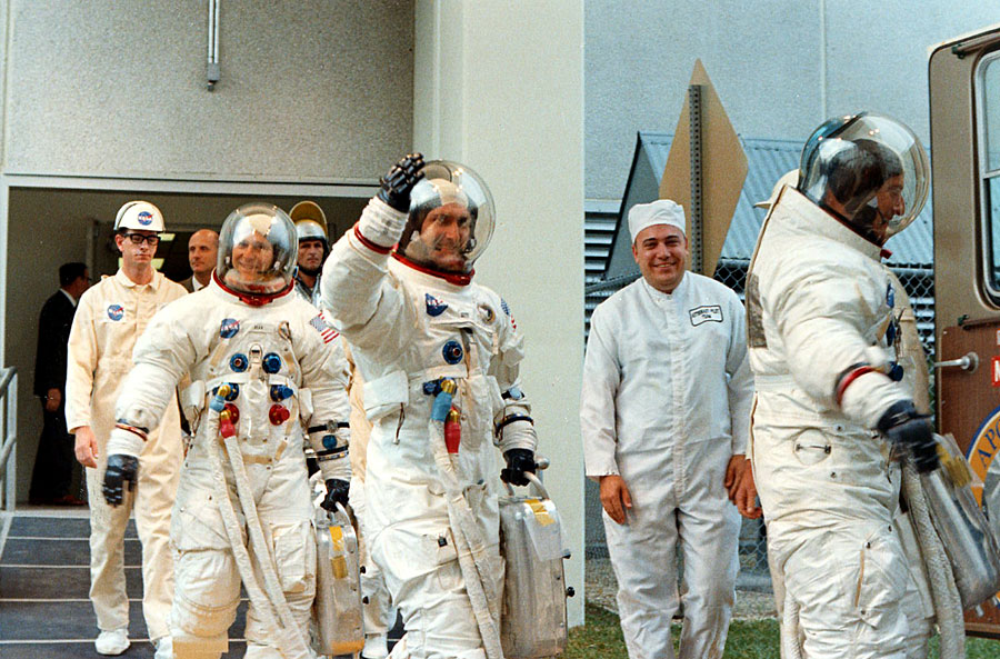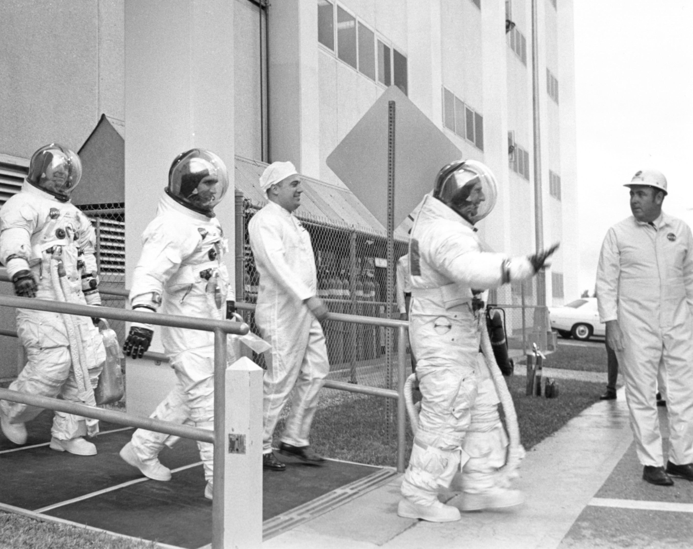 Apollo 12 crew walks to the quarantine van. 24 November 1969. Scan by Ed Hengeveld.69-H-1885 ( 128k or 984k )