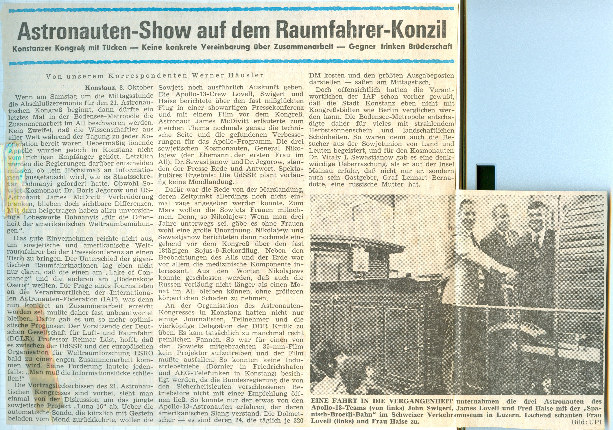 This article was published in the Augsburger Allgemeine of 9 Ocgtober 1970 and is used with permission. Scan by Klaus Zeitner, who also provided a translation into English.S71-52266 ( 100k or 566k )