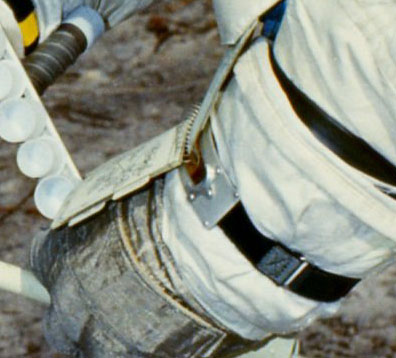 16-mm camera and magazine in the purse. Scan by Ulli Lotzmann.AS13-60-8591 ( 161k )