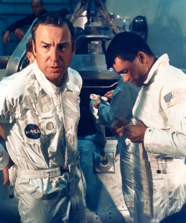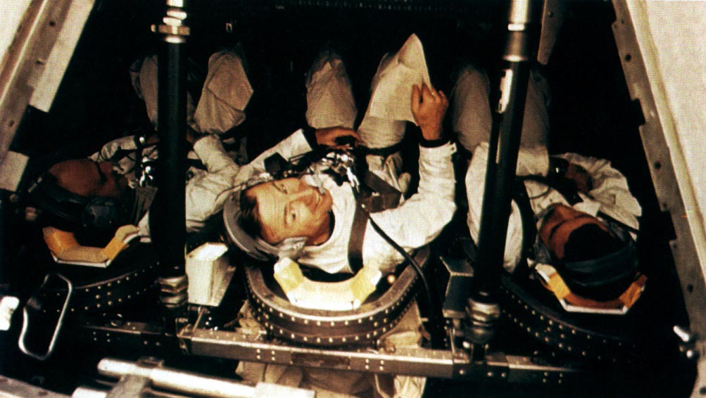 Lovell asleep in the LM, wearing his EVA boots. Scan by Ulli Lotzmann.S70-35013 ( 137k or 954k )