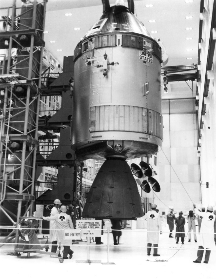 Apollo 13 CSM in Assembly and Test. Scan by Ed Hengeveld.KSC-69P-683 ( 158k )