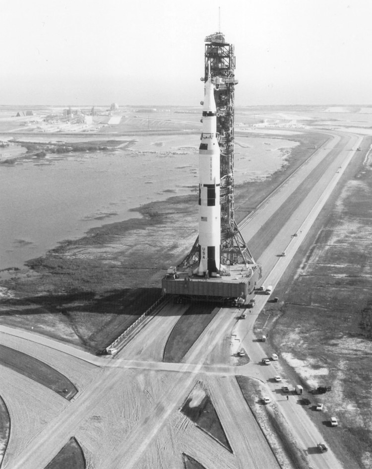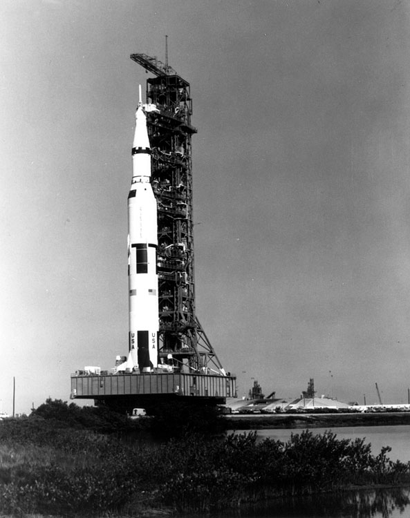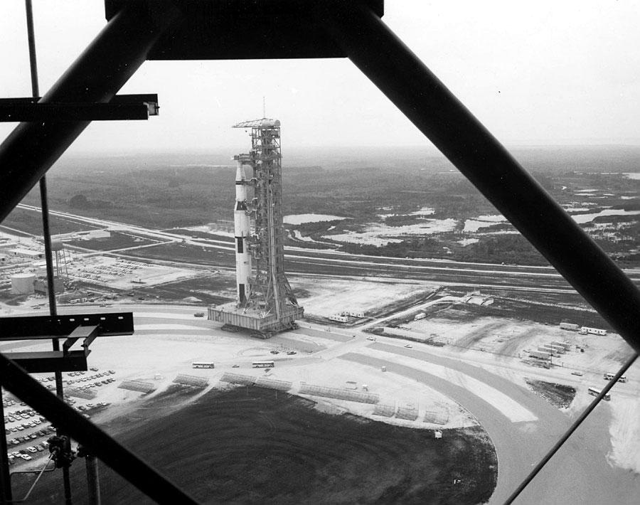 Apollo 13 Saturn V during rollout. 16 December 1969. Scan by Kipp Teague.KSC-69PC-826 ( 109k or 375k )