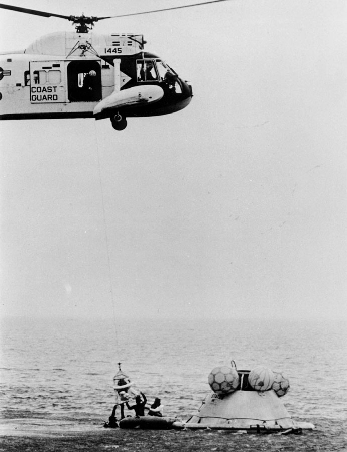 Apollo 13 splashdown. 17 April 1970. Scan by Ed Hengeveld.