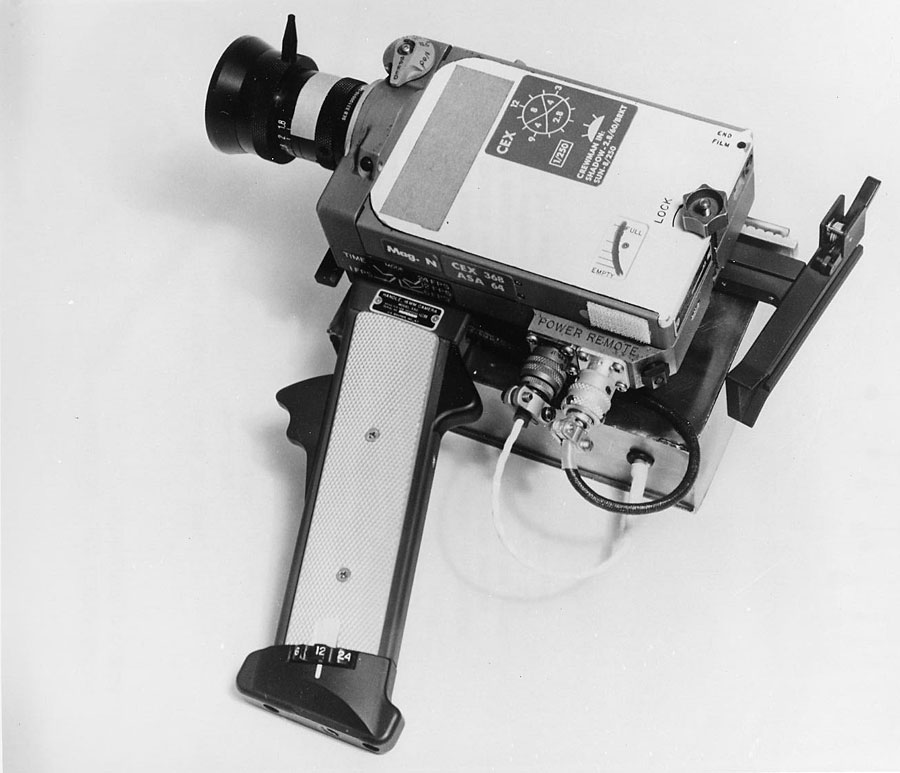 Benchtop photo of the 16-mm Data Acquisition Camera (DAC). The attached battery pack is underneath the camera in this shot. Scan by J.L. Pickering.70-HC-81 ( 172k or 1079k )