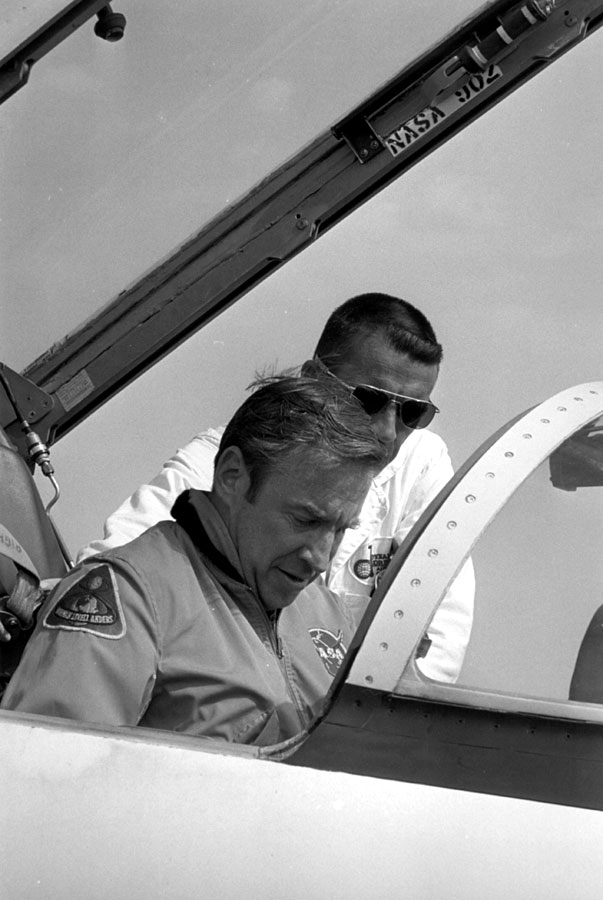 Jim Lovell (left) and Fred Haise during training. 17 January 1970. Scan by Ed Hengeveld.S70-31143 ( 93k )