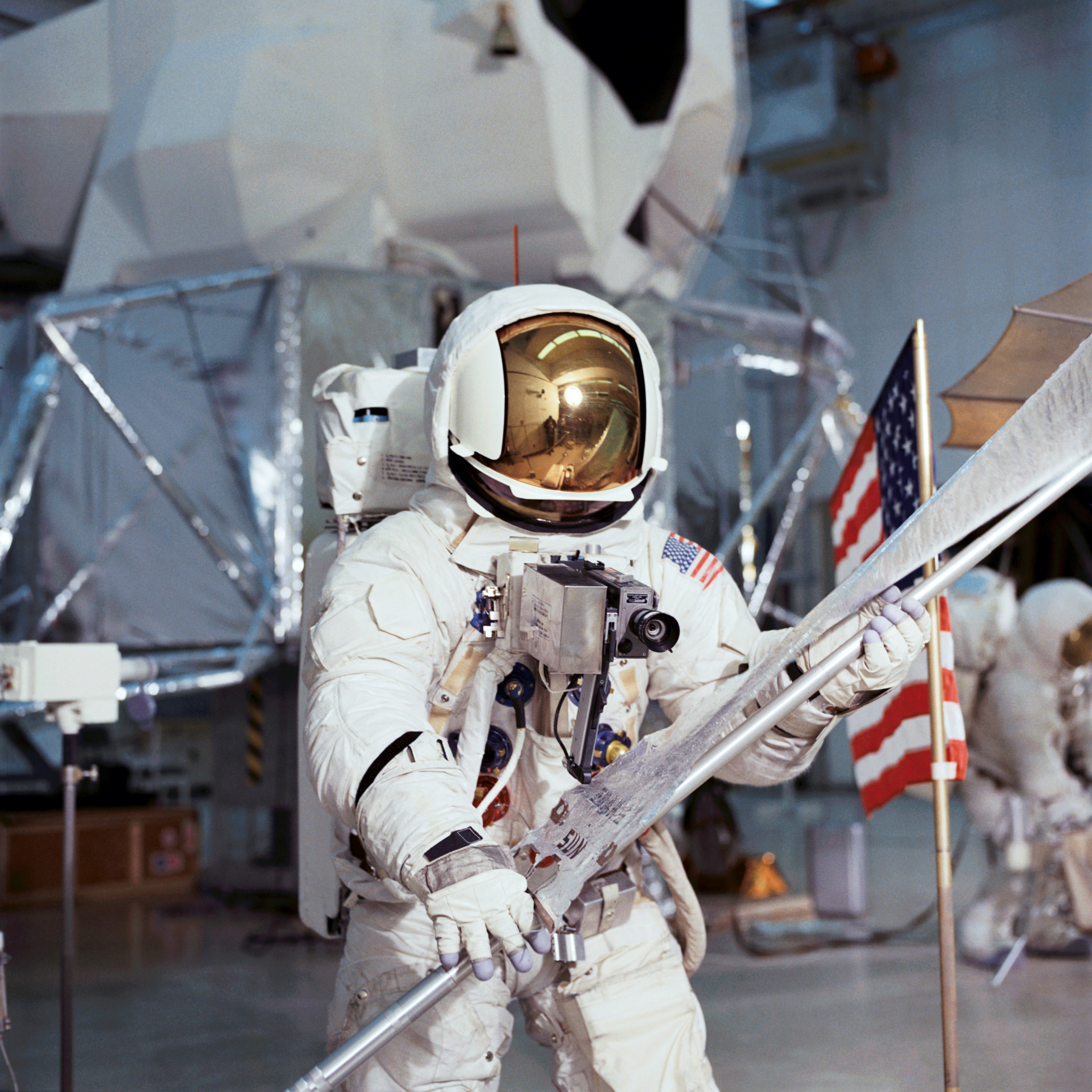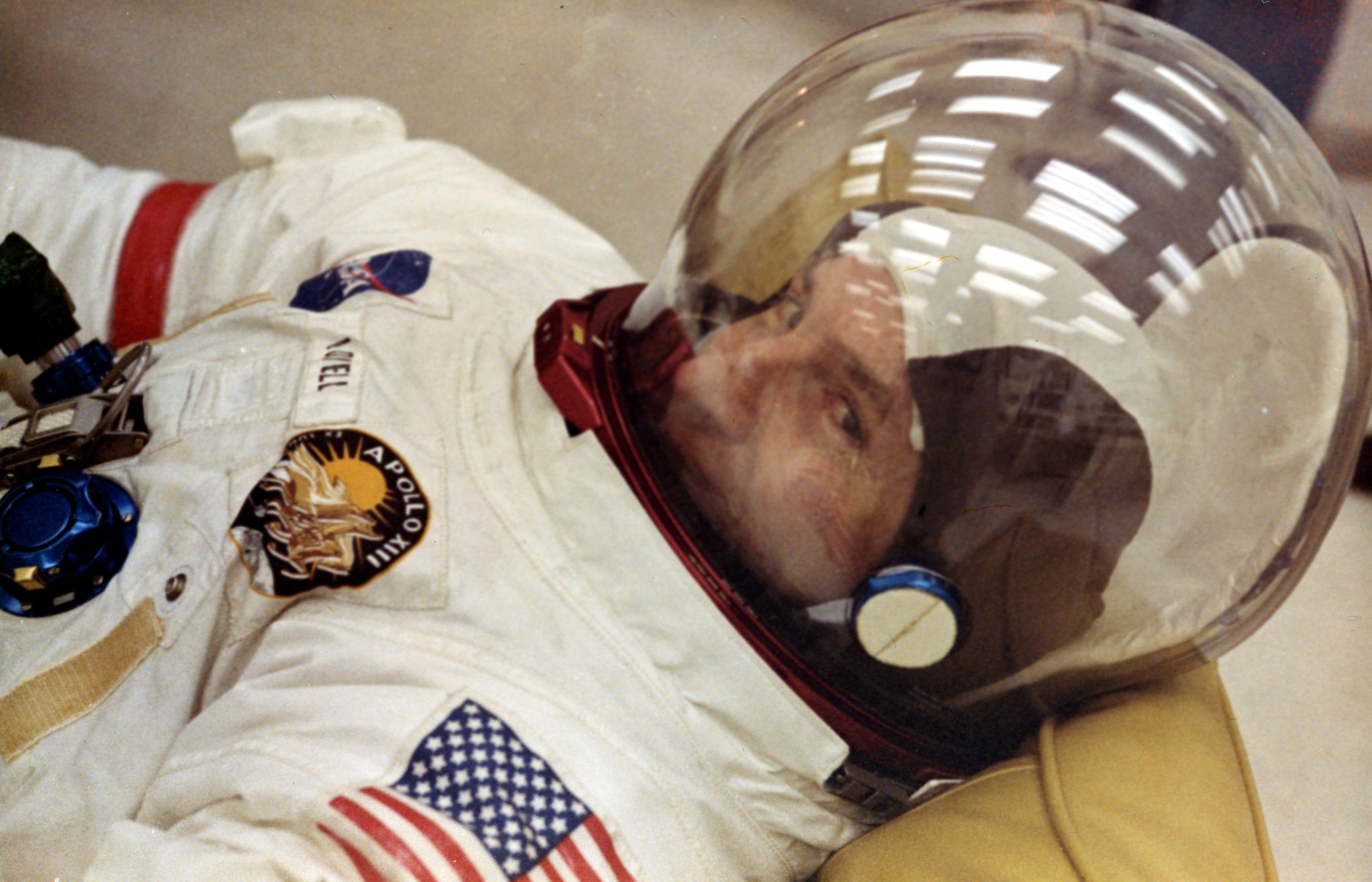 Jim Lovell practices flag deployment. 4 February 1970. Scan by J.L. Pickering.S70-27034 ( 3.3 Mb )