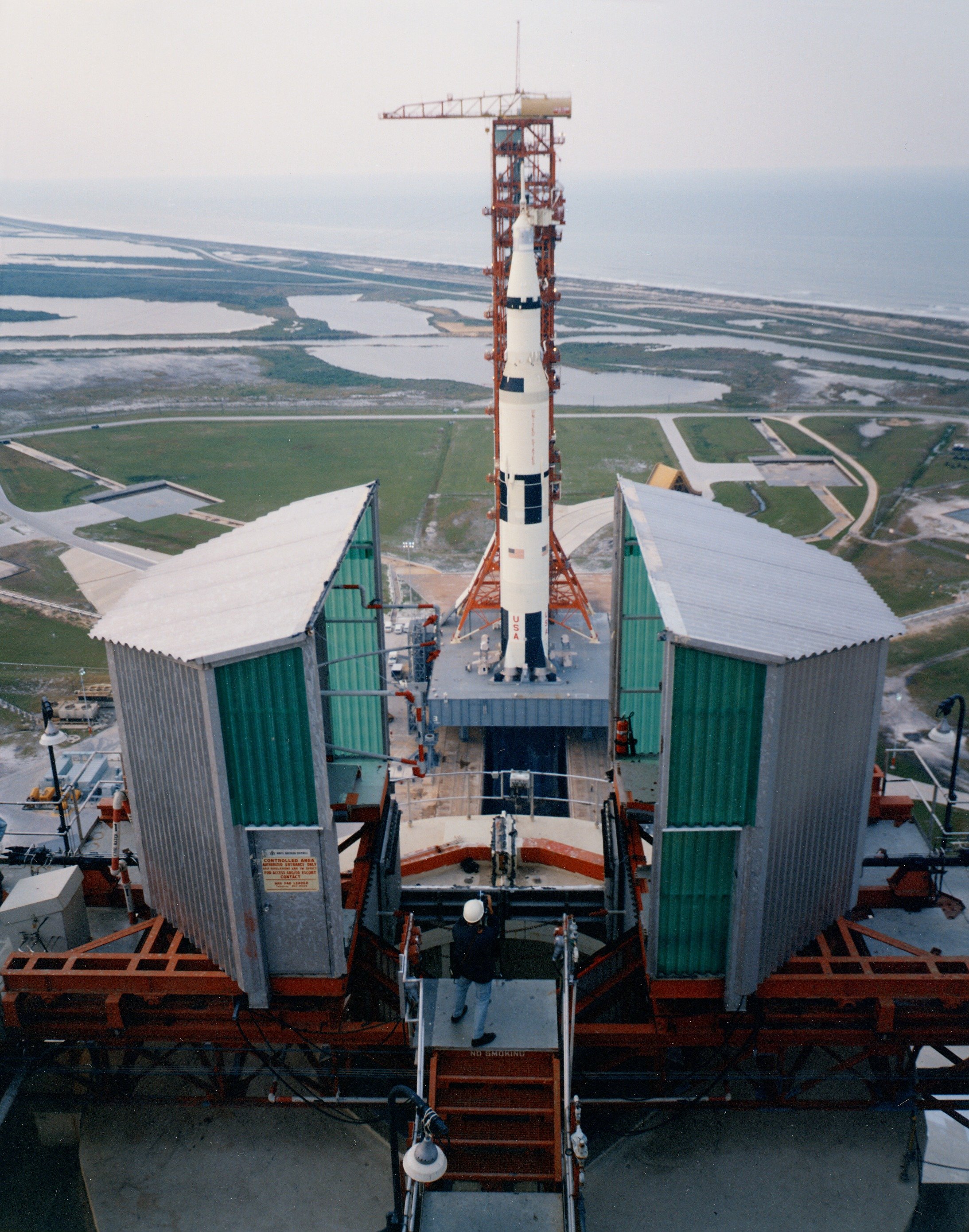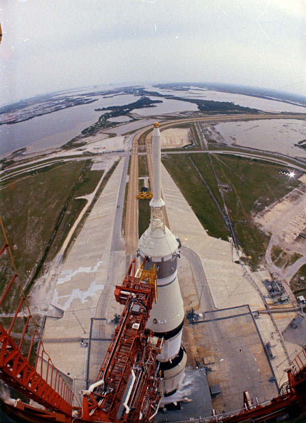 View of Apollo 13 from the Mobile Service Structure. Photo dated 31 March 1970. Scan by Ed Hengeveld.KSC-70C-1491 ( 93k or 871k )