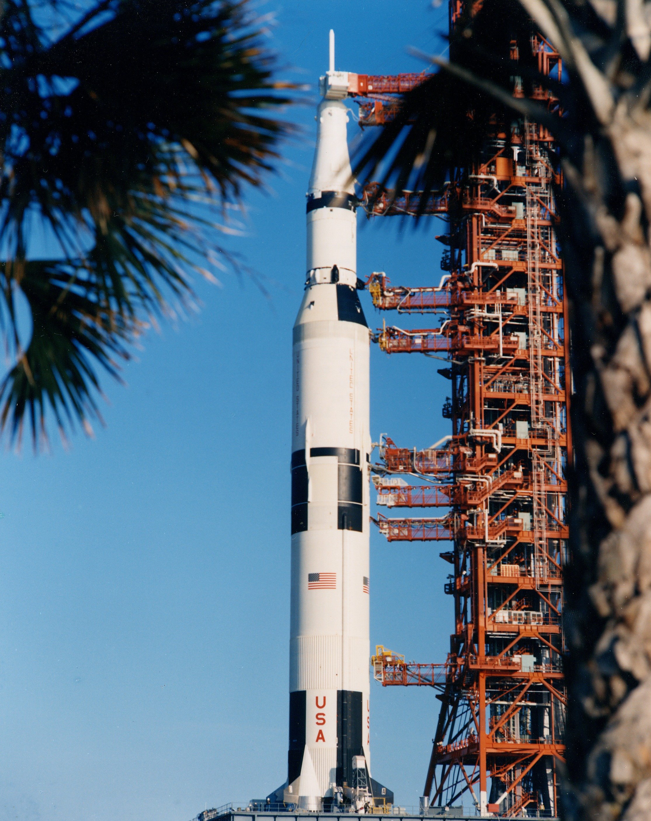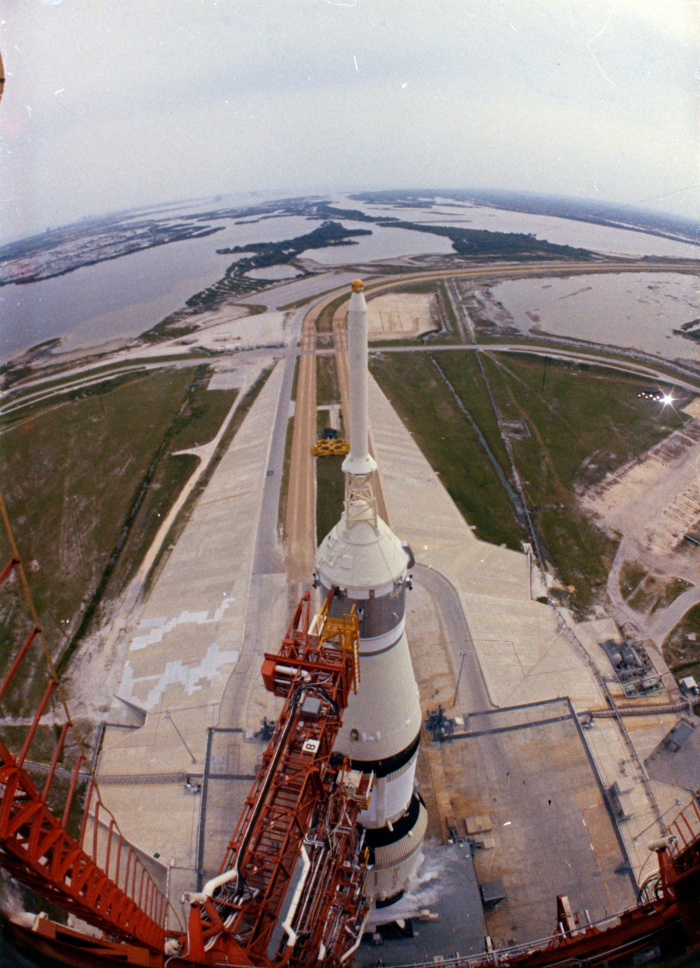 Apollo 13 Saturn V on pad 39A after rollout. Photo dated 16 December 1969. Scan by Kipp Teague.S70-32990 ( 148k or 277k )