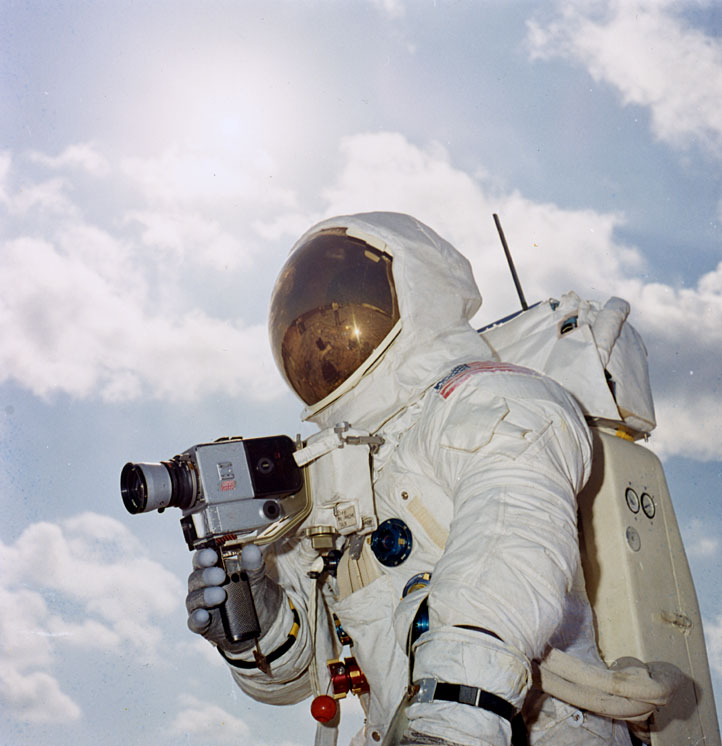 Fred Haise practices use of the Apollo Lunar Surface Close-up Camera, also known as the Gold Camera. 28 January 1970. Scan by J.L. Pickering.KSC-70PC-16 (11 Mb or 0.25 Mb)