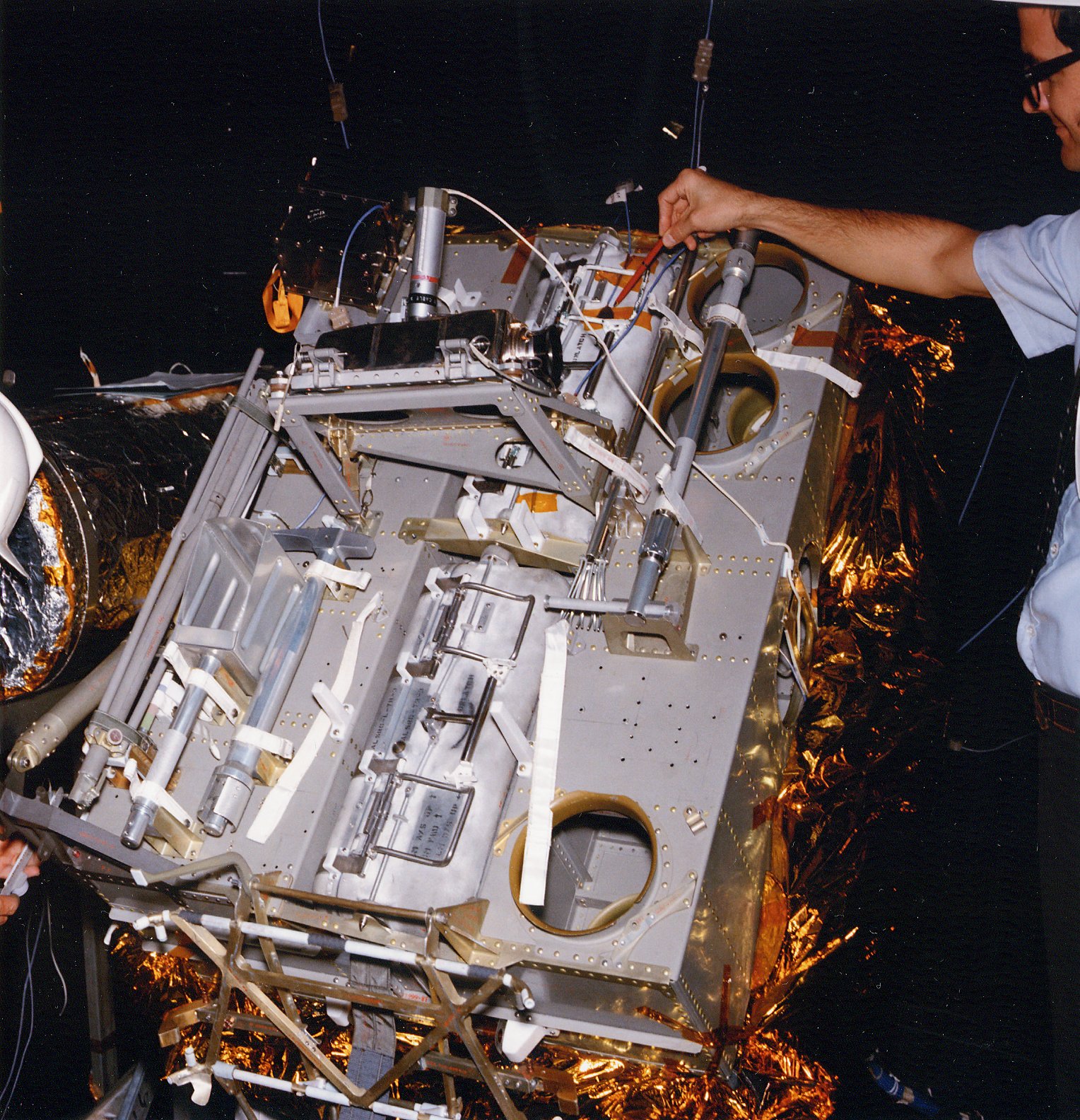 Apollo 13 Training MESA. Underside and righthand face. 1969. Scan by Kipp Teague.S69-57065 ( 279k or 601k )