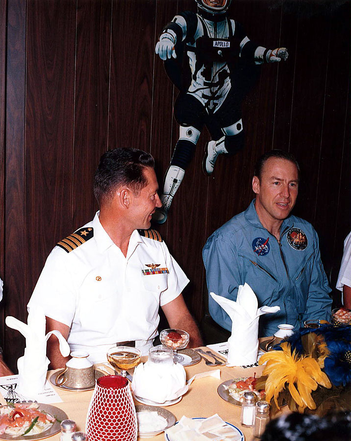 Jim Lovell and Jack Swigert at dinner on the Iwo Jima. 17 April 1970. Scan by J.L. Pickering.S70-16007 ( 297k )