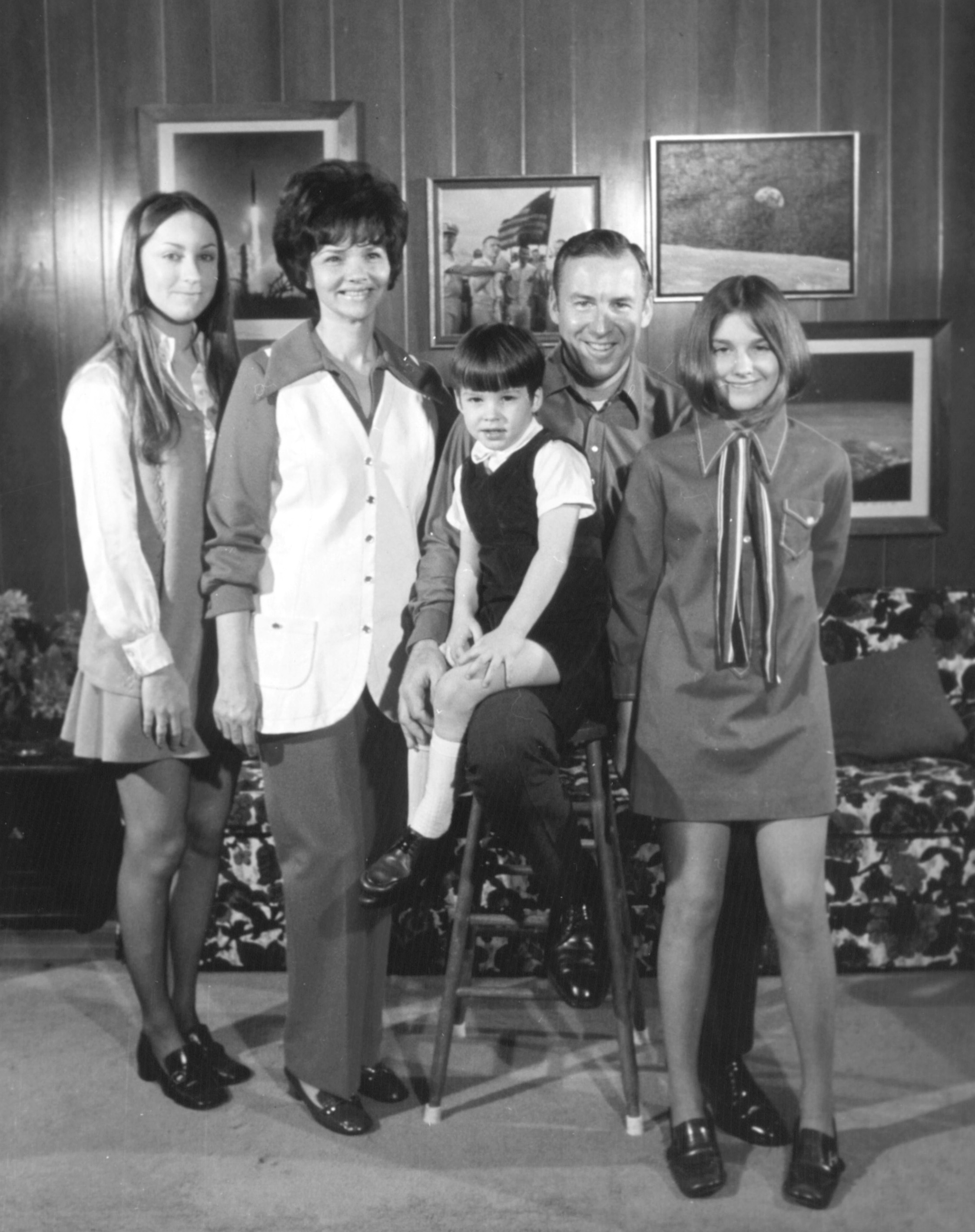 The Lovell Family: Barbara (born 13 October 1953), Marilyn, Jeffrey (born 14 January 1966), Jim, and Susan ( born 14 July 1958). Son Jay (born 15 February 1955) was a student at St. John's Military Academy in Wisconsin and wasn't present for the photo session. March 1970. Scan by Ed Hengeveld.S70-30534 ( 72k )