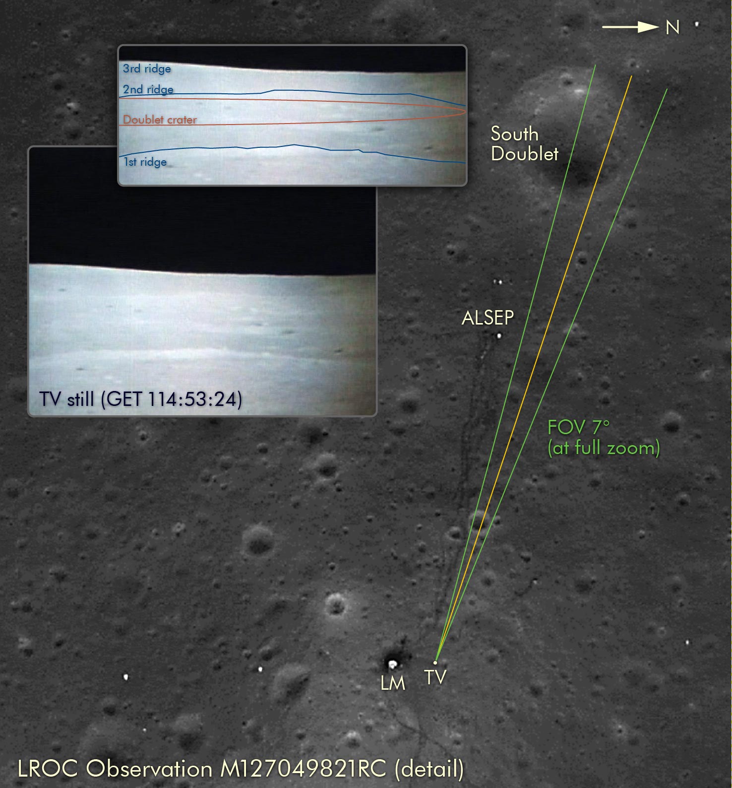 [Ed has the TV centered on Turtle Rock again.]114:55:31 Mitchell: Okay. There's the south quadruplet crater, and then there's the next one and the next one and the largest one.