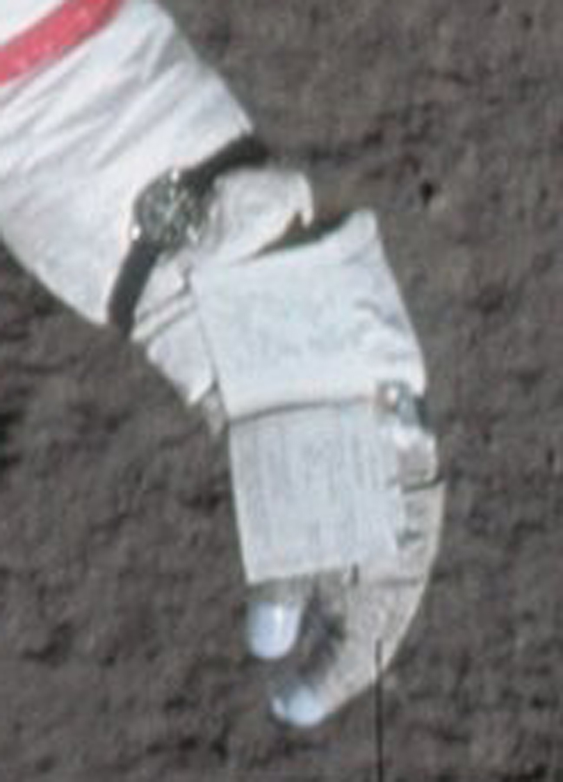 [Another factor that may be contributing to the problem is that, in response to the depressurization, the suits are quite hard and stiff. Once the suit pressure decays to the 3.85 psi operating pressure and they get outside, reaching the control will be easier. On Apollo 17, Jack Schmitt could not reach his control in the cabin, but had no problems out on the surface.]